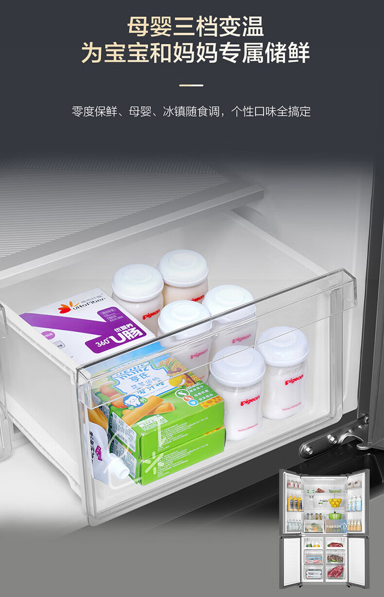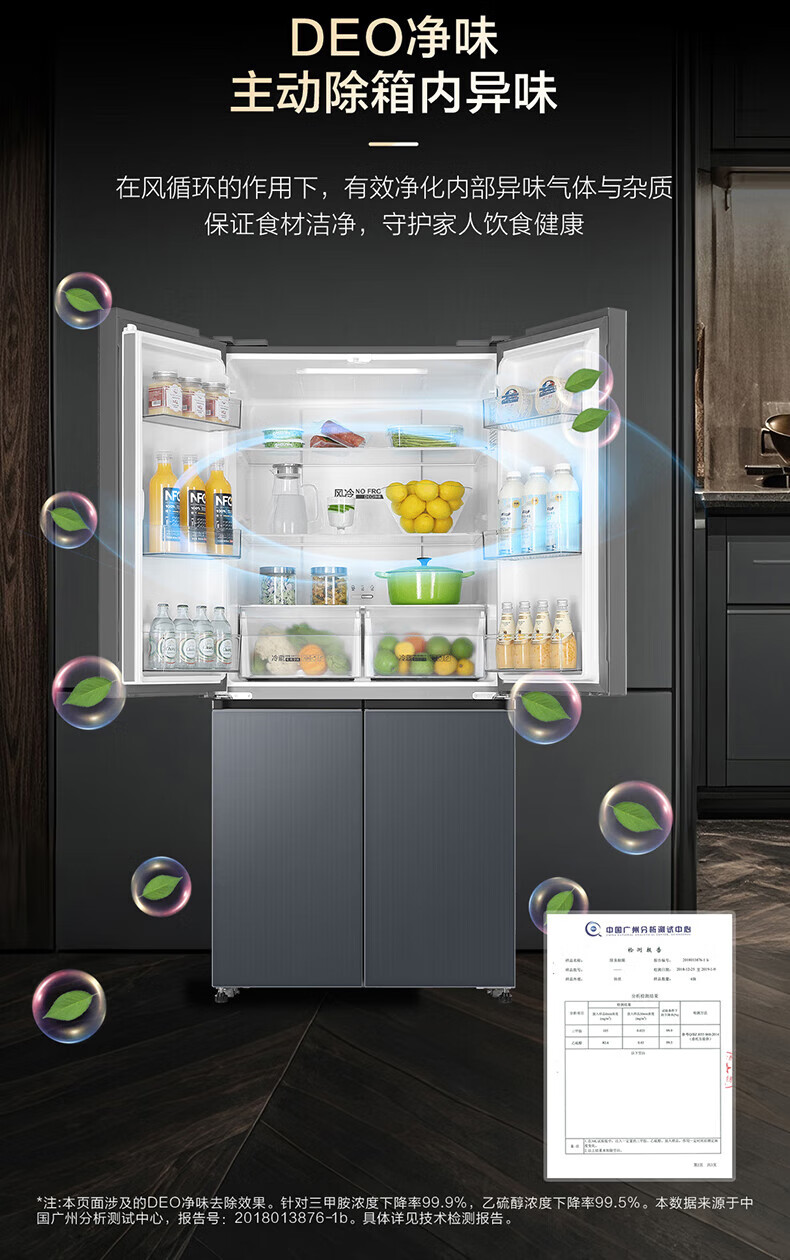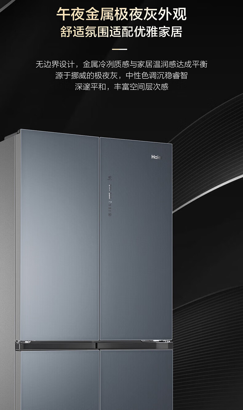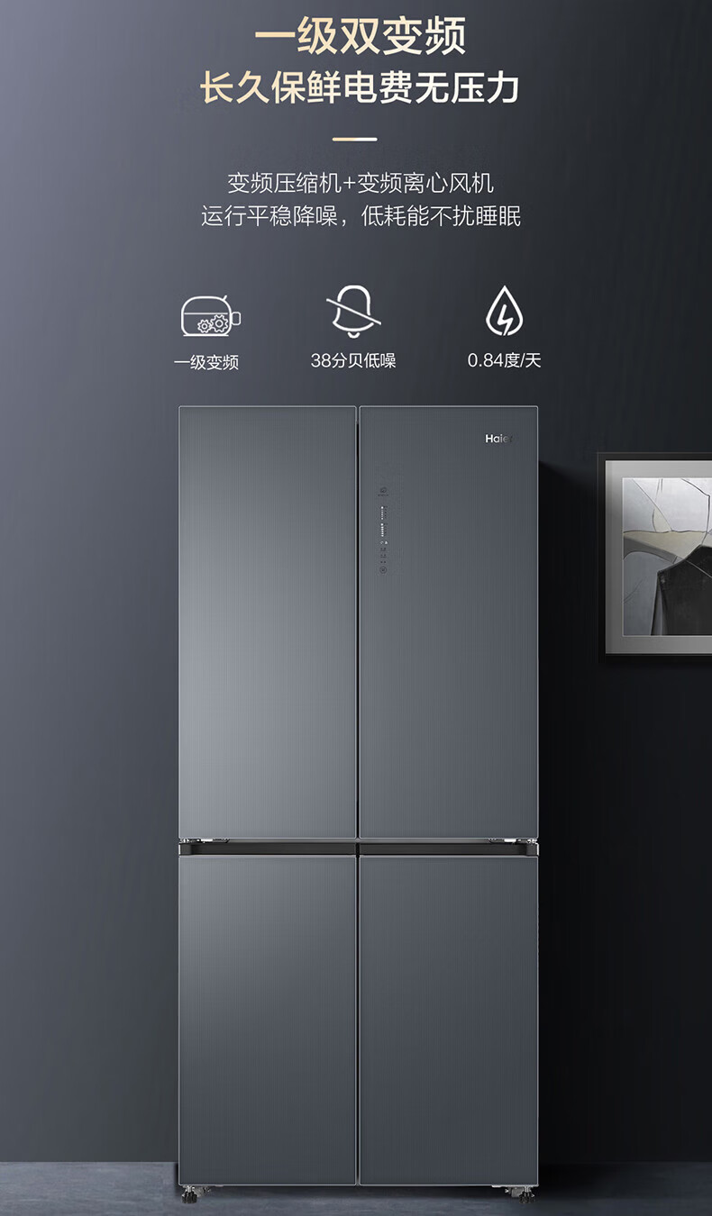 海尔冰箱477升十字对开门一级能效双变频风冷无霜净味保鲜节能省电家用大容量冰箱 BCD-477WGHTDEDGM