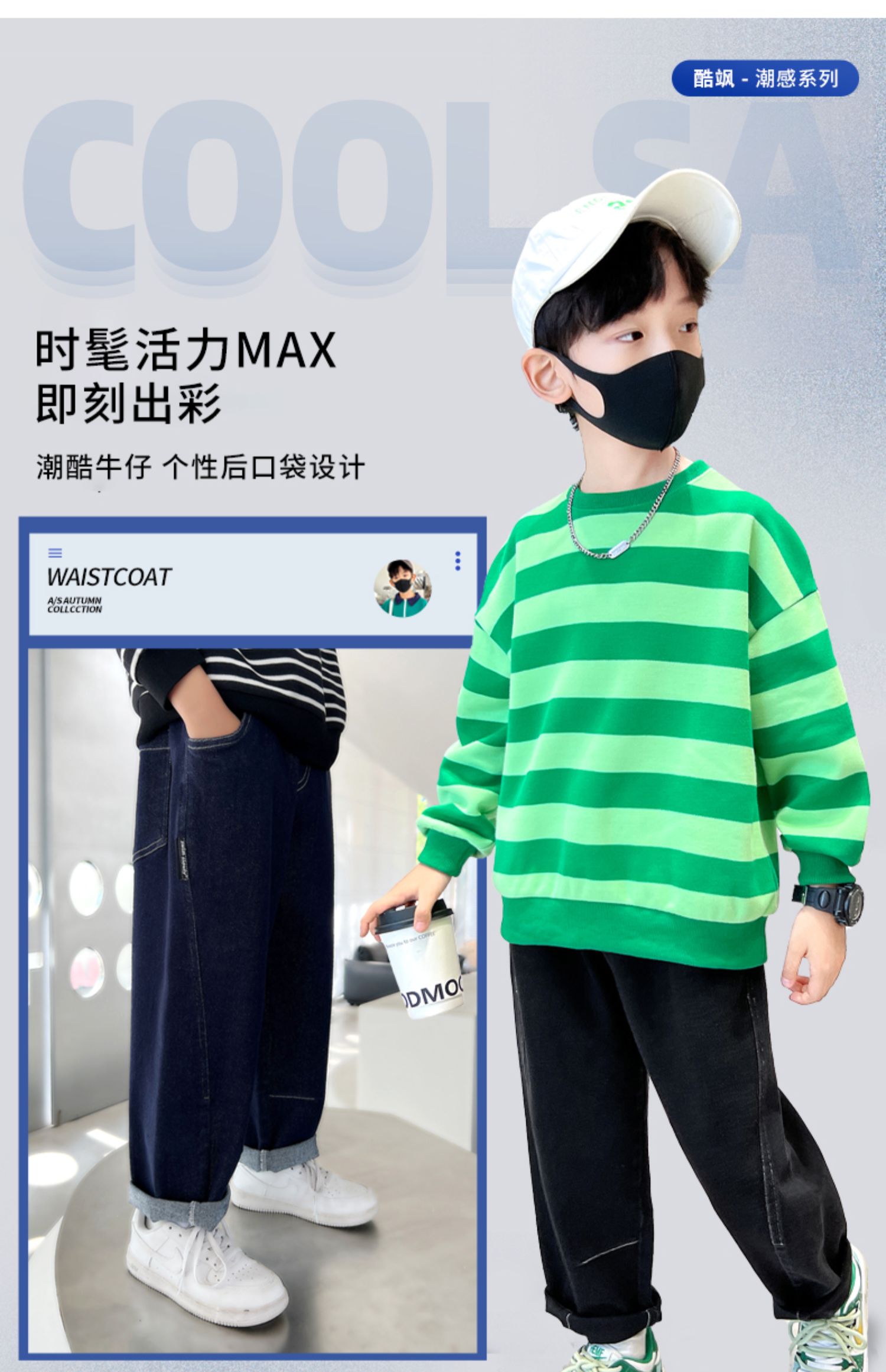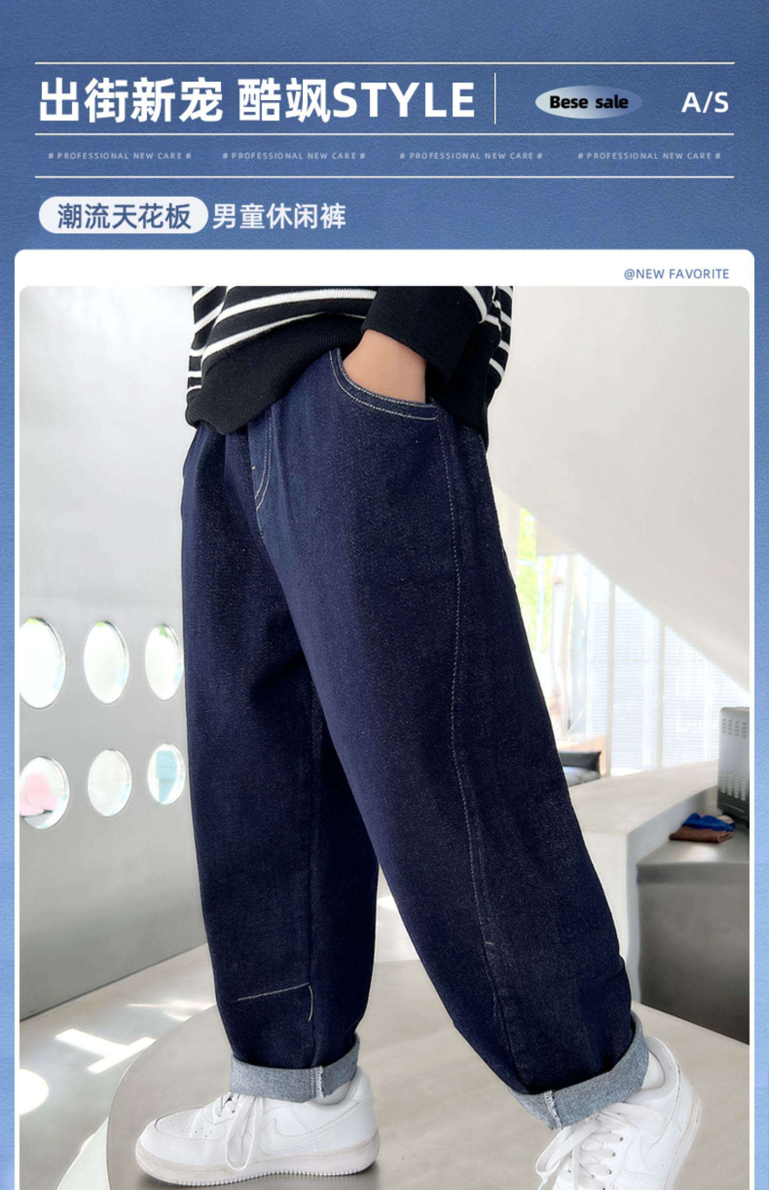 男童春秋装直筒宽松牛仔裤新款儿童装男孩早秋季帅气薄款裤子