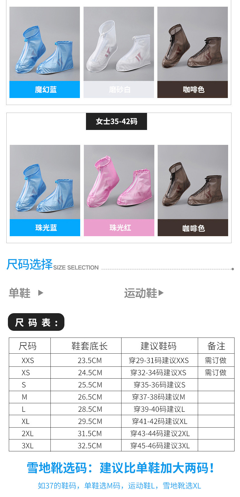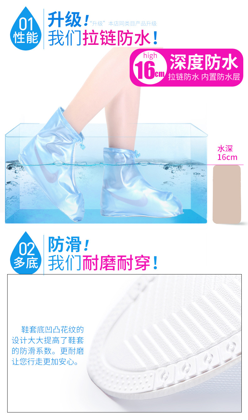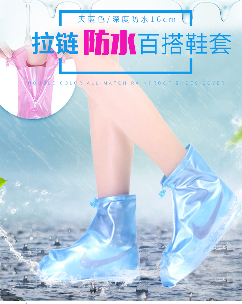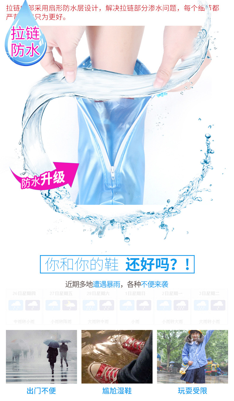 【拉链 + 抽绳双重密封❗️防水不渗水】防雨鞋套防水防滑男女雨雪天户外旅游徒步雨靴套加厚耐磨雨靴鞋套。rh