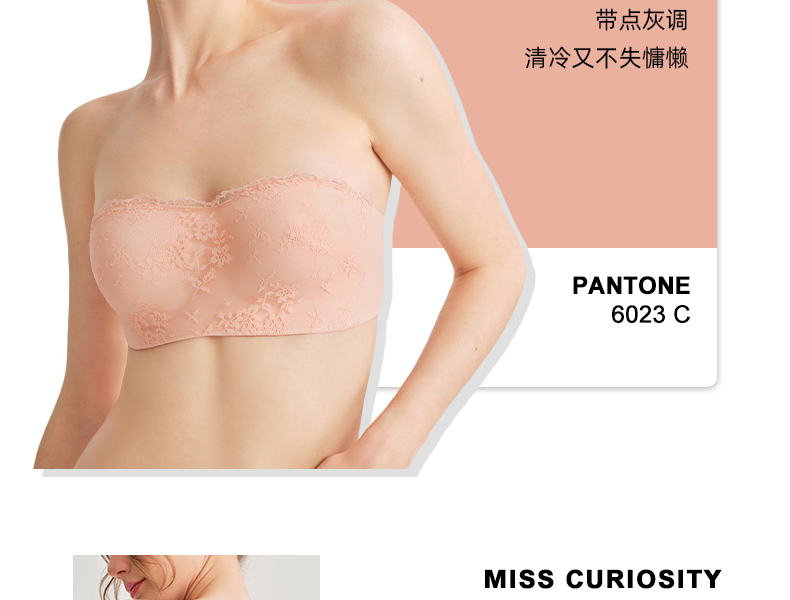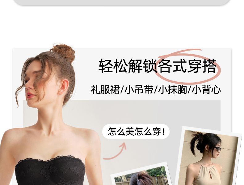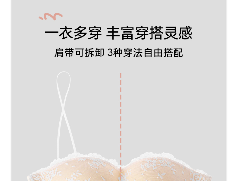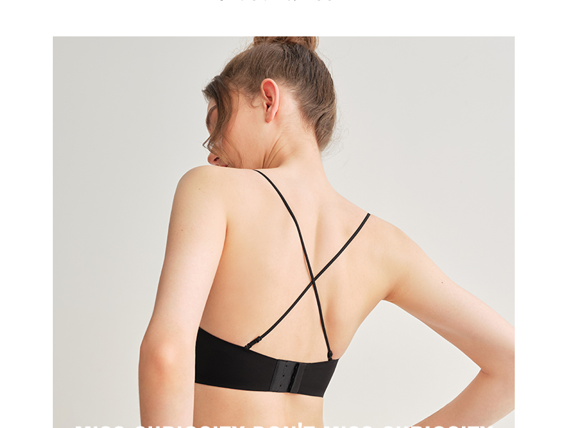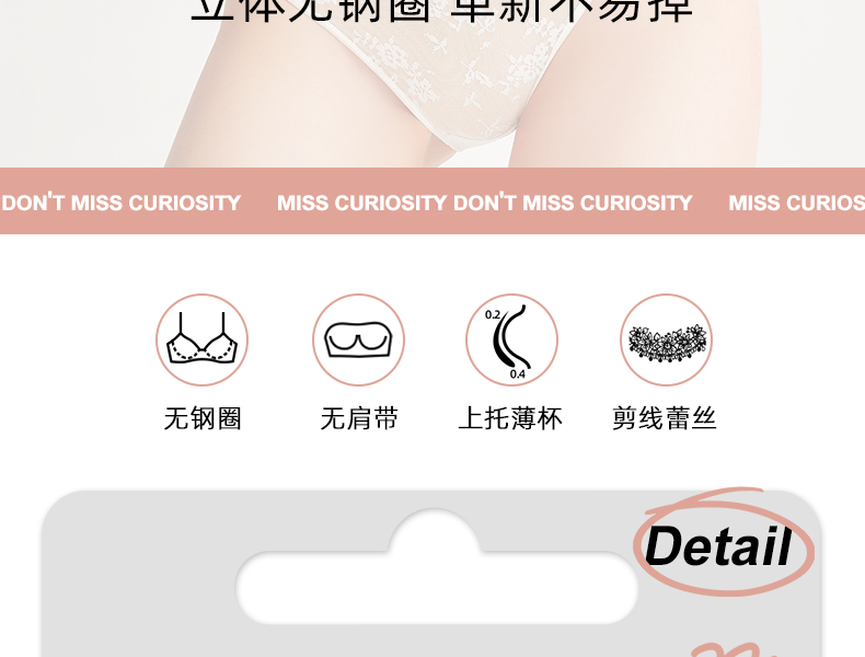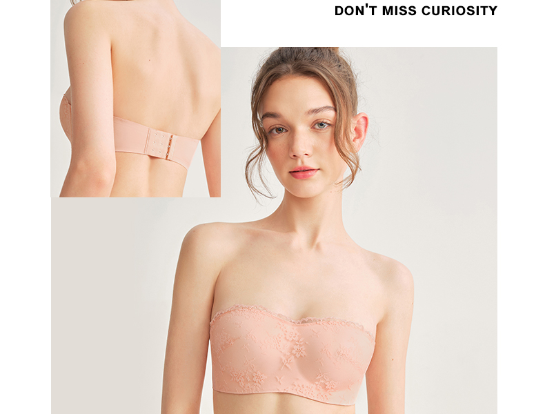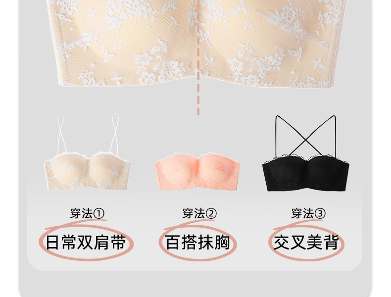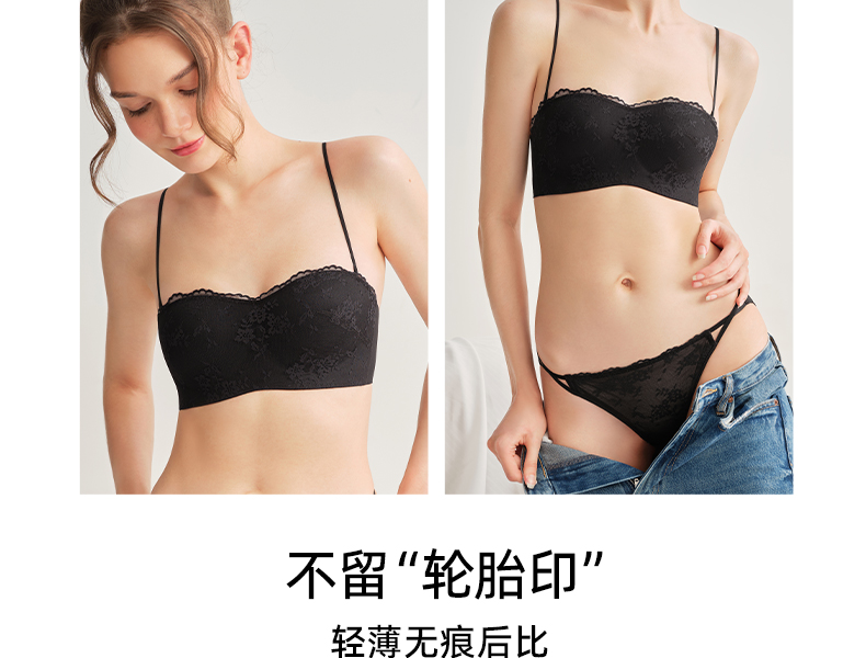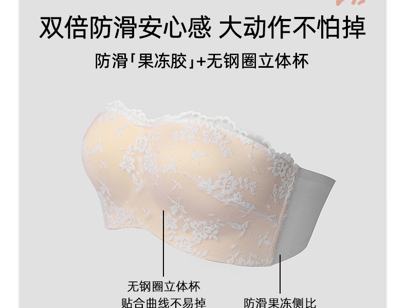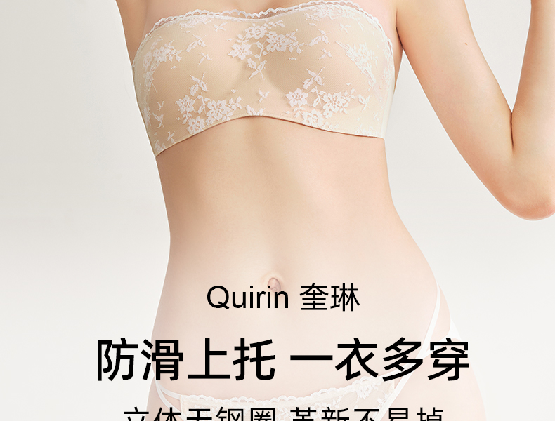 好奇蜜斯防走光抹胸夏薄显胸小无肩带内衣女无钢圈舒适文胸罩套装 奎琳
