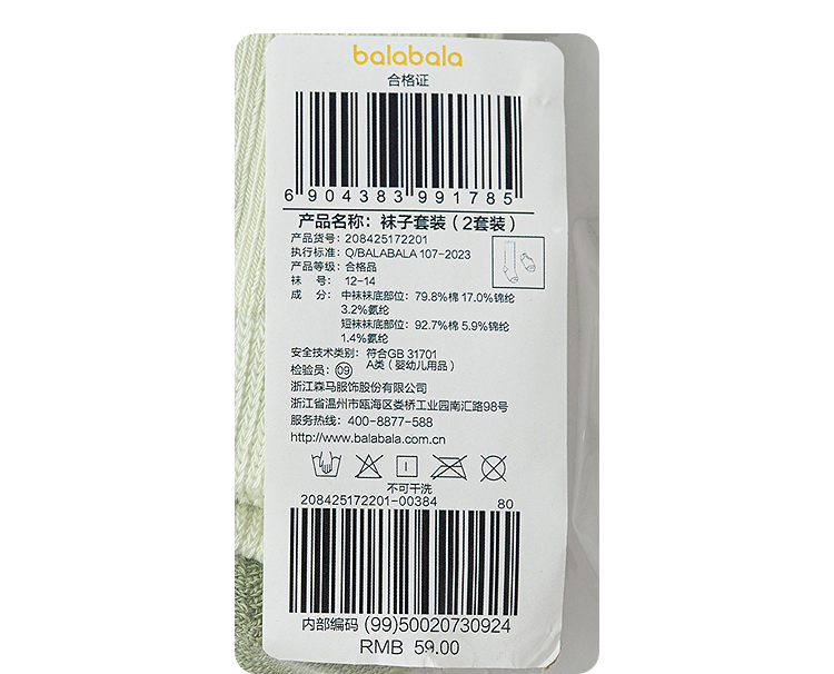 巴拉巴拉balaOne宝宝袜子冬保暖袜婴幼儿中筒袜防着凉提花两件套