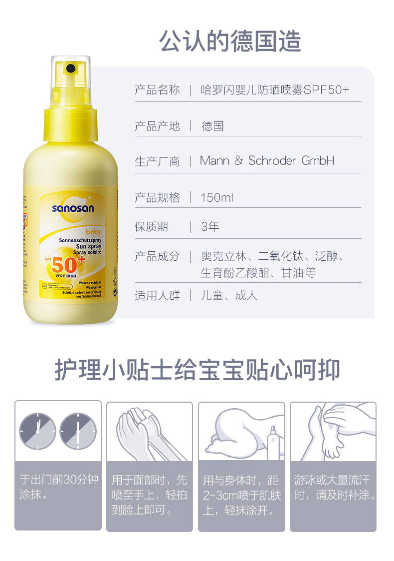 【中欧班列精选】dx 哈罗闪婴儿防晒喷雾 儿童宝宝德国防水防晒霜乳液 150ml