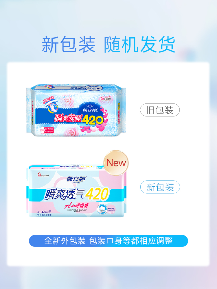佩安婷瞬爽安睡特长夜用舒棉卫生巾420mm4片装