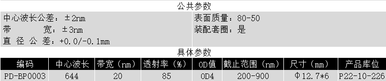 BP644/20K OD4@200-900 T>85% Φ12.7*6 带通滤光片 (带套圈)