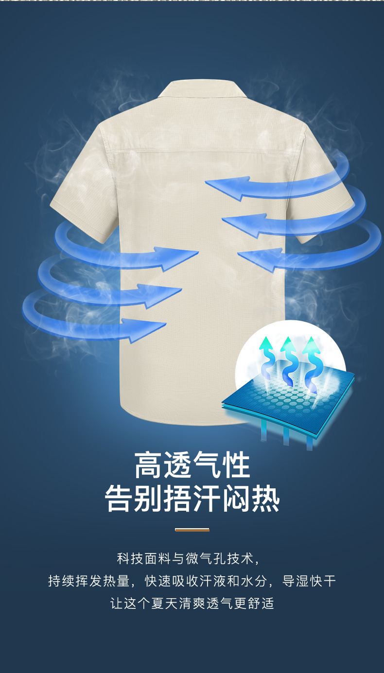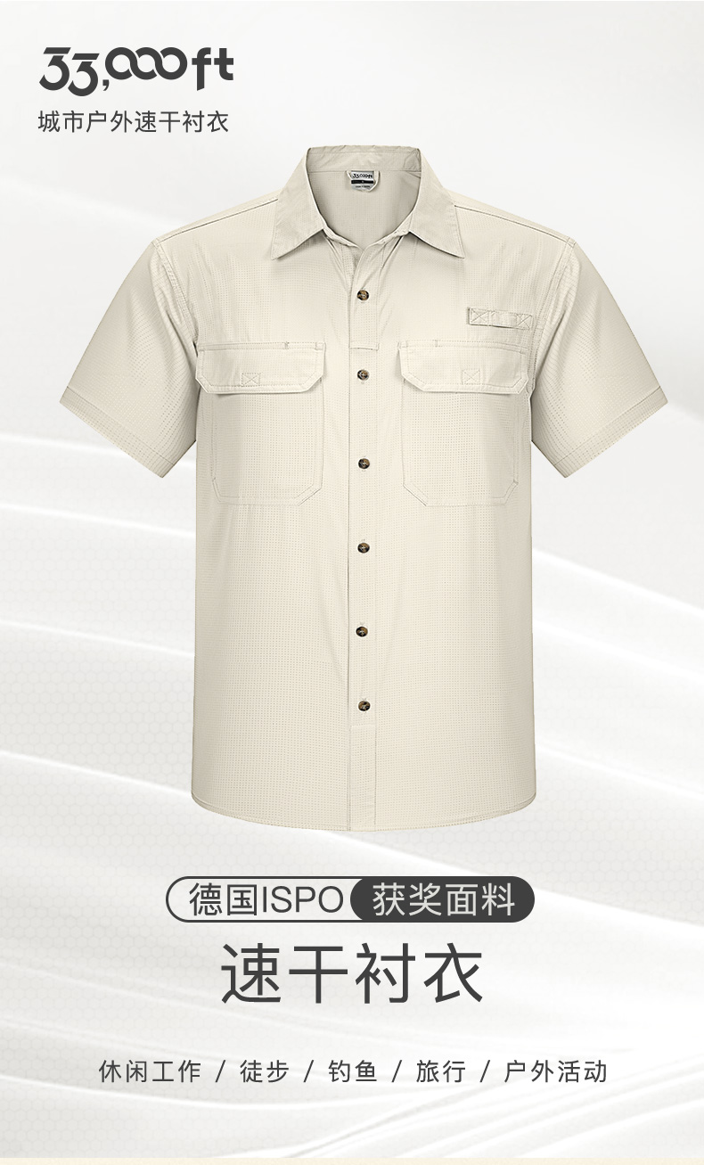 【ISPO获奖】33000ft北欧户外速干衬衫短袖衬衣男轻透气防水钓鱼衬衫大码宽松