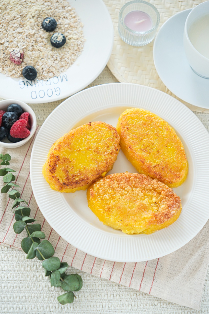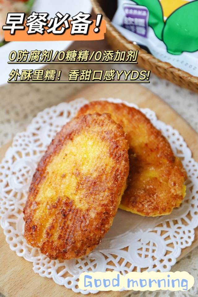 如果再放一点点油,用平底锅煎几分钟,就能得到一份外酥里糯的玉米糍粑啦~