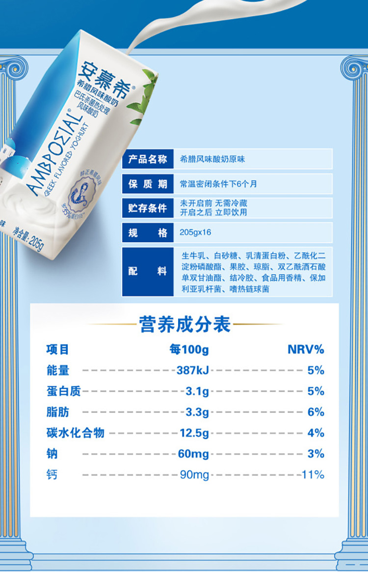 伊利 安慕希希腊风味常温酸奶原味205g*16盒