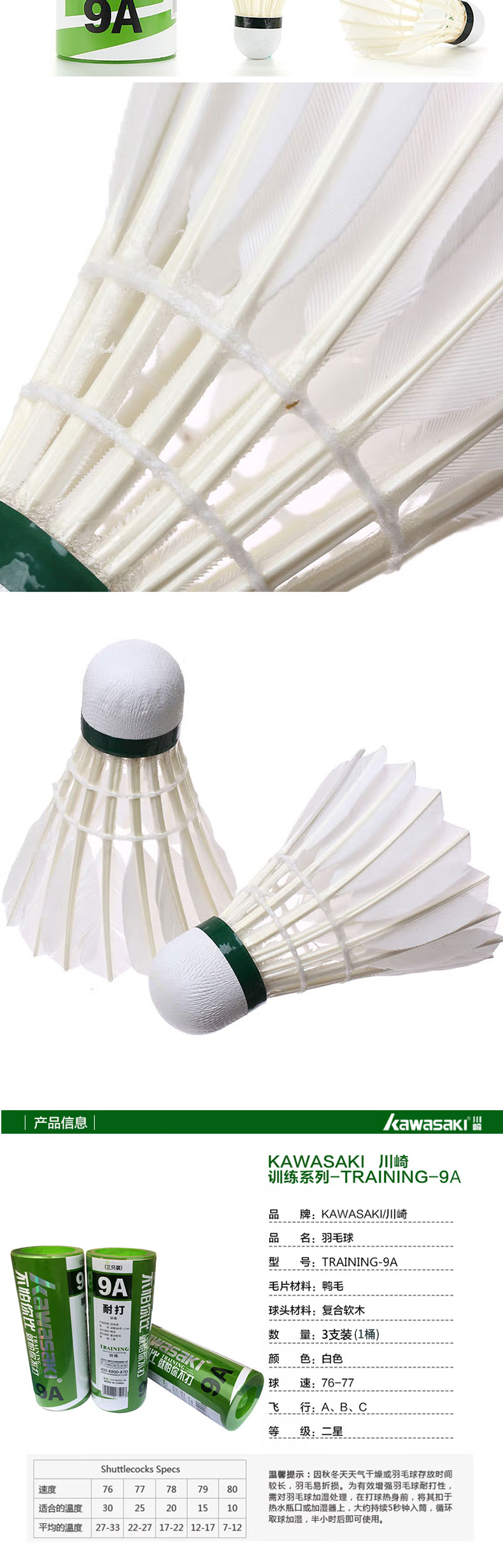 川崎 羽毛球号训练9A号3个