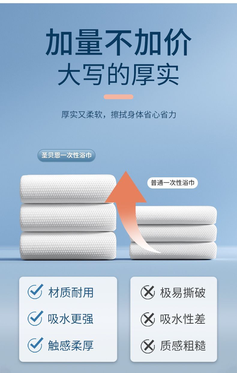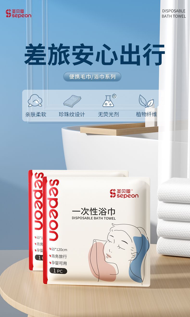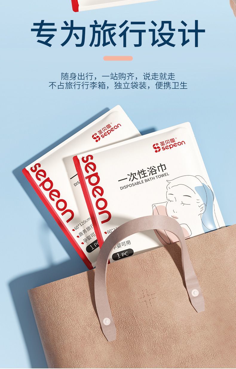 【旅行轻装必备】贝圣恩一次性浴巾 | 独立灭菌包装 加大加厚纯棉 出差/游泳/母婴便携随行