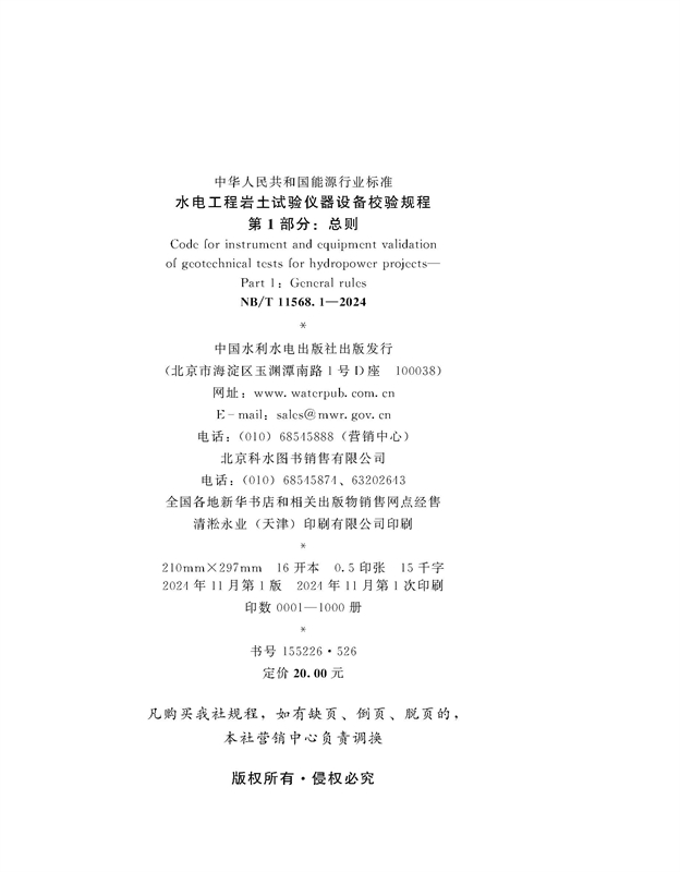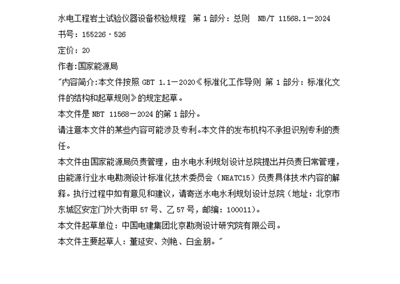 水电工程岩土试验仪器设备校验规程 第1部分:总则 NB/T 11568.1—2024