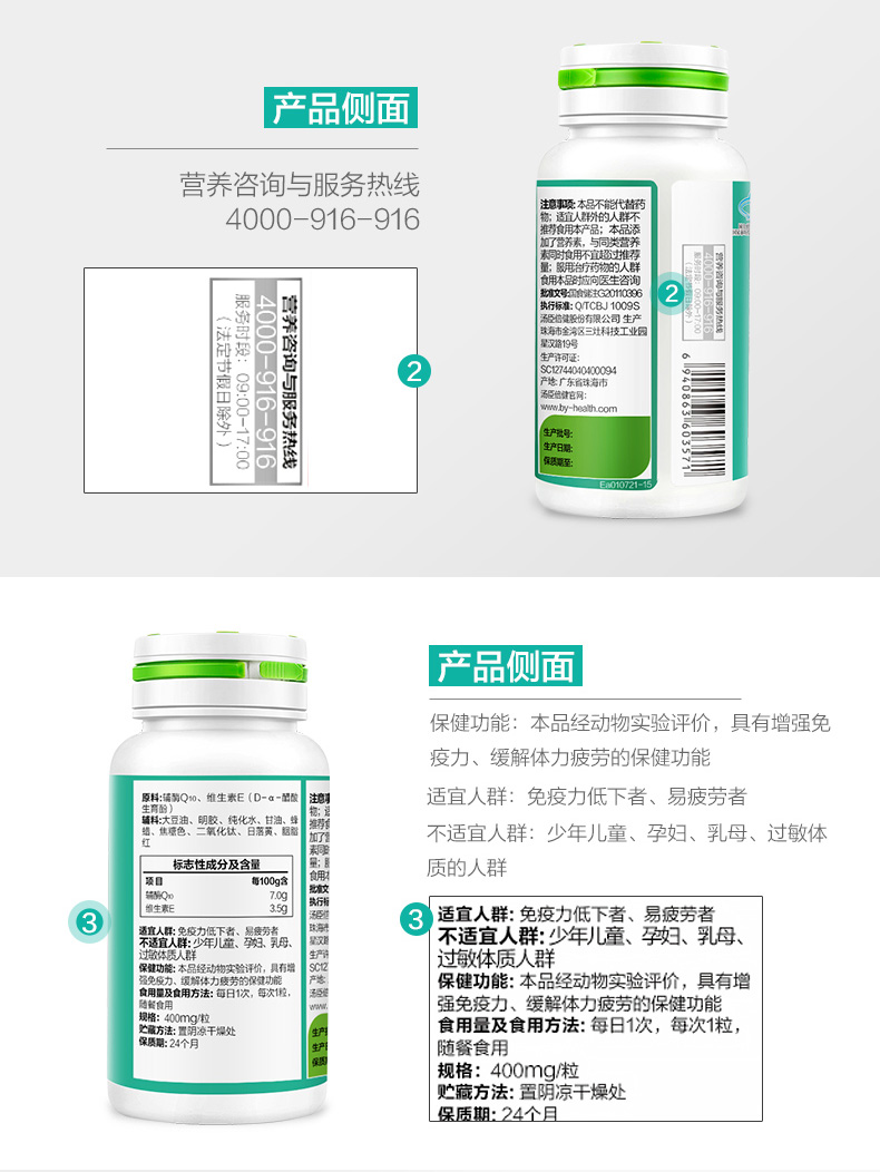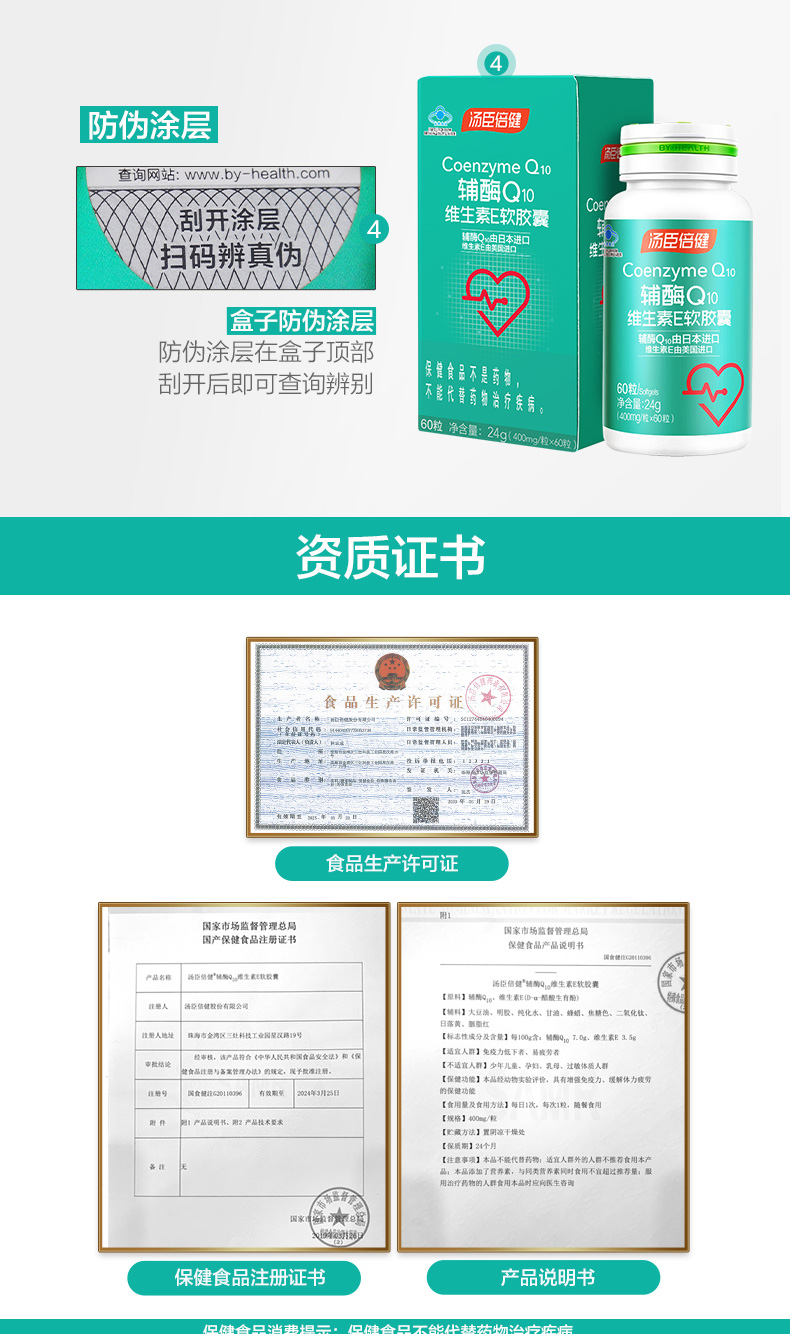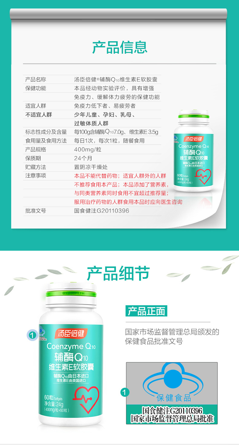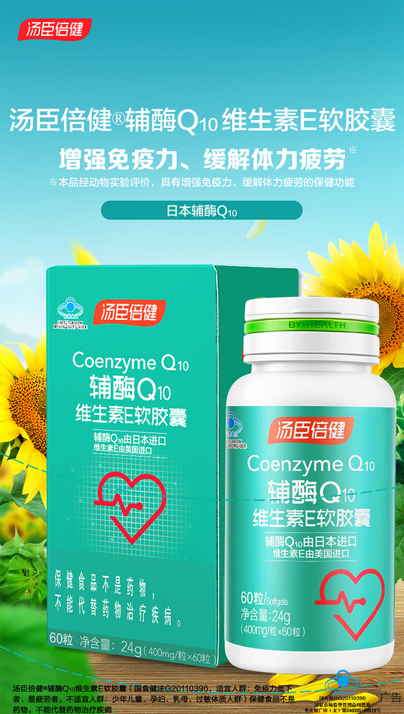 汤臣倍健辅酶Q10维生素E软胶囊增强免疫力 60粒/瓶