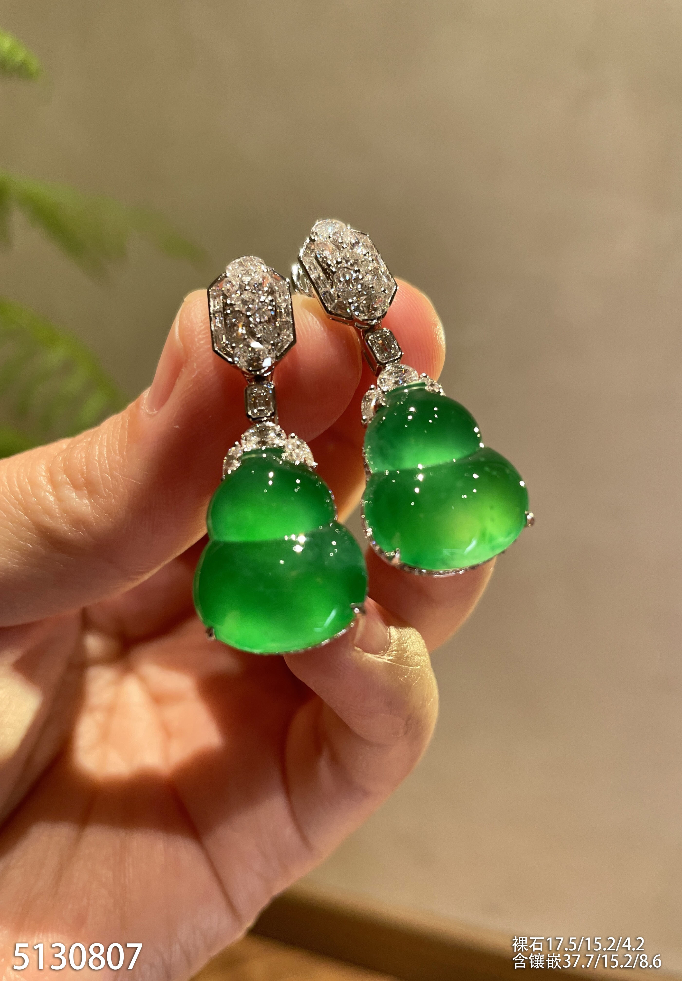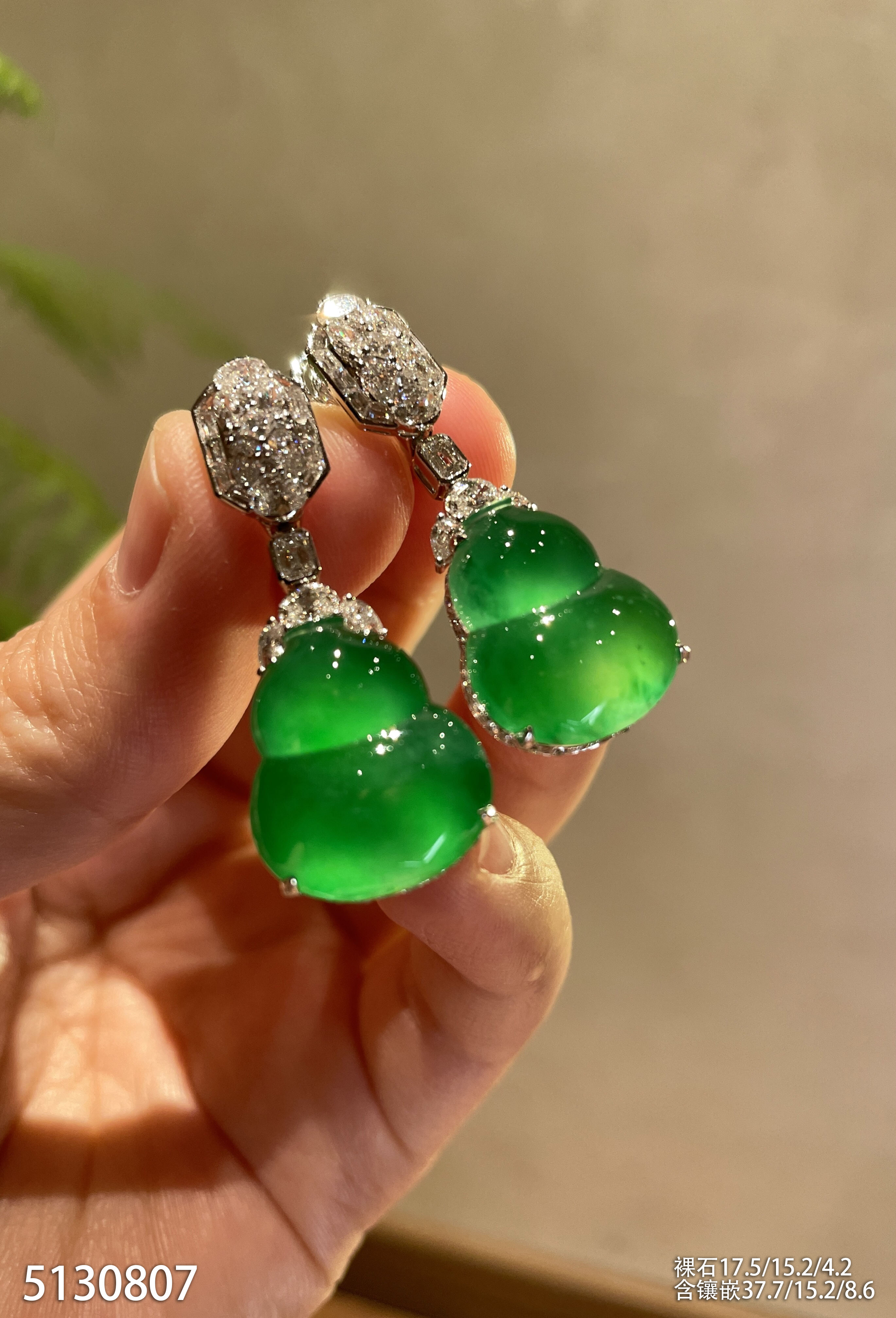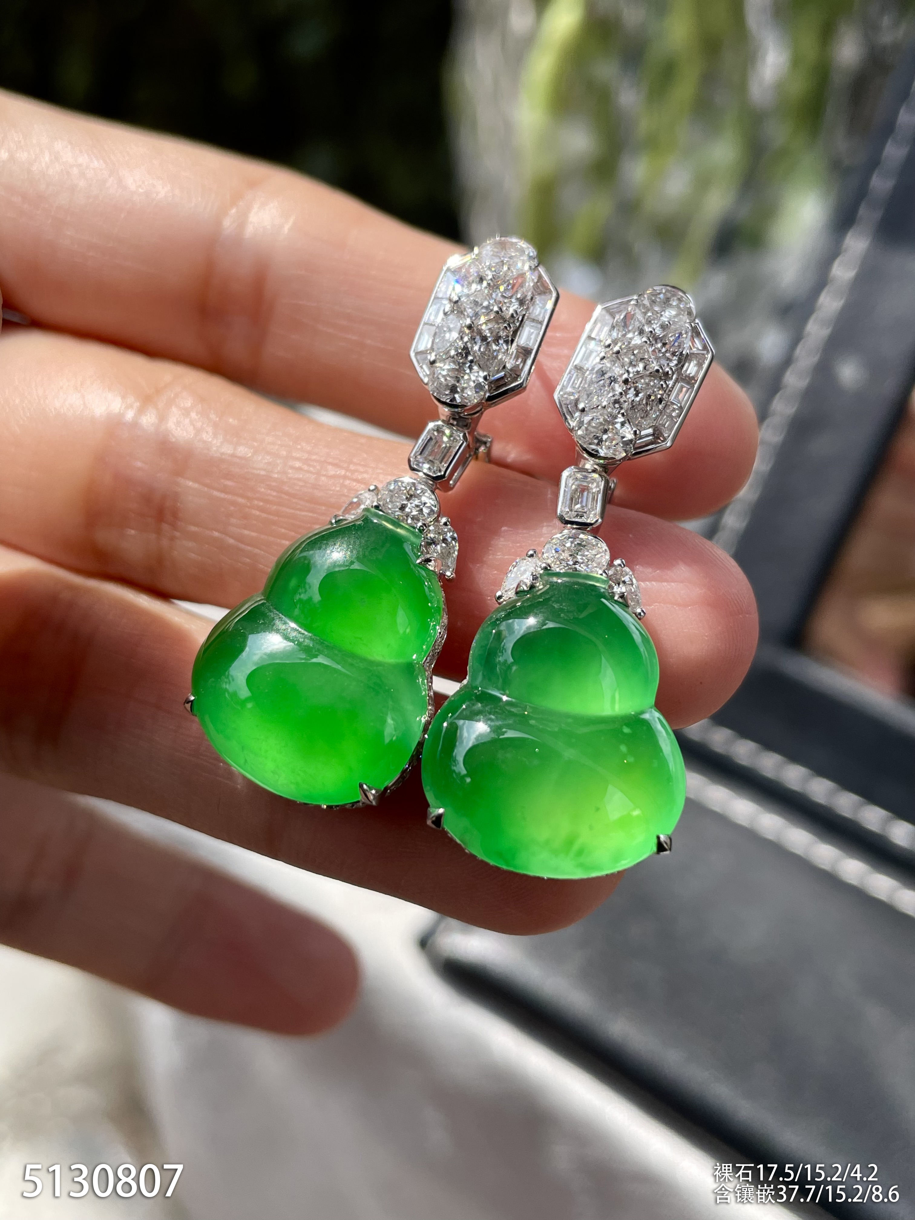 玻璃种艳绿葫芦耳坠【5130807】具体价格微信咨询