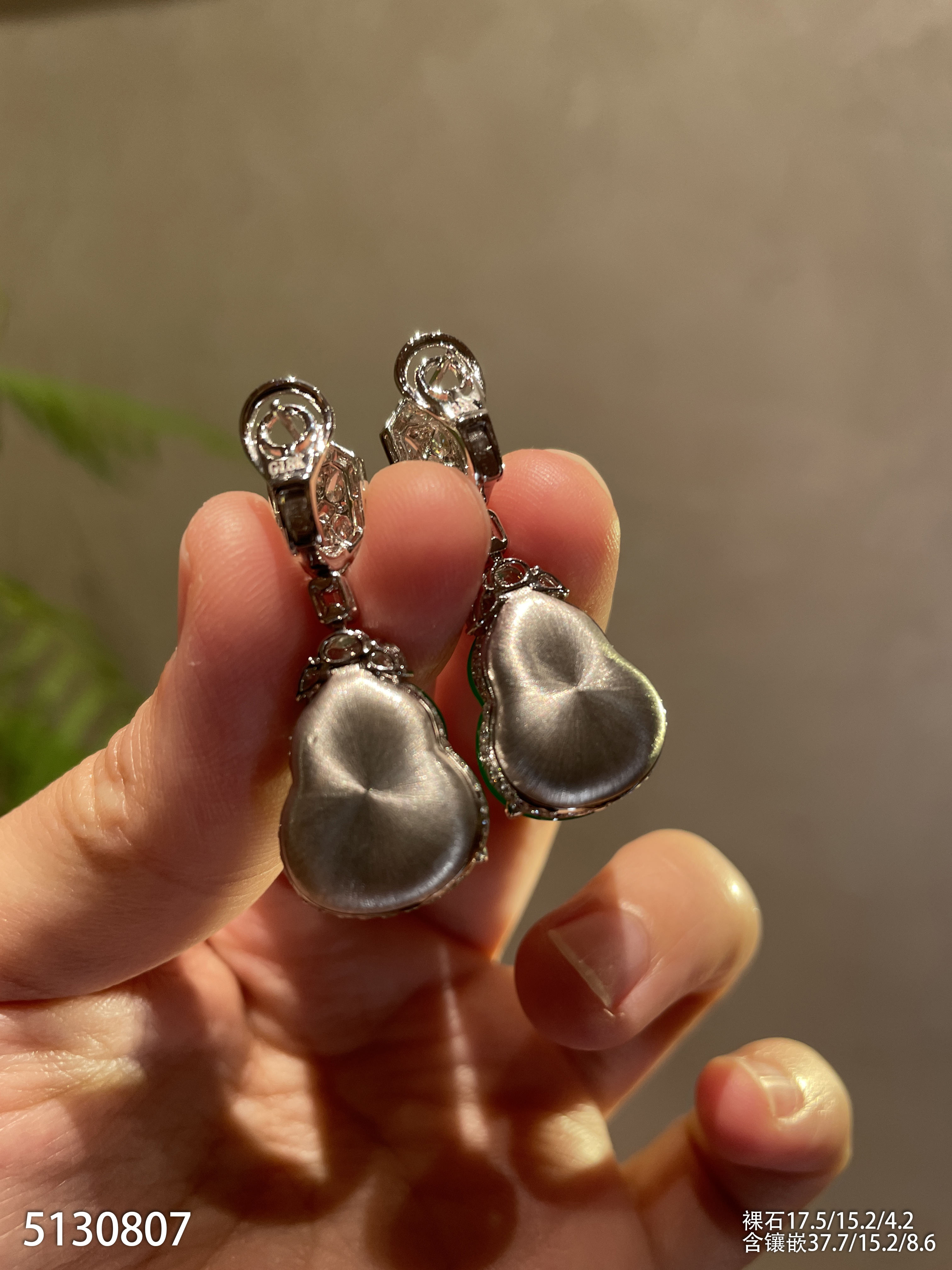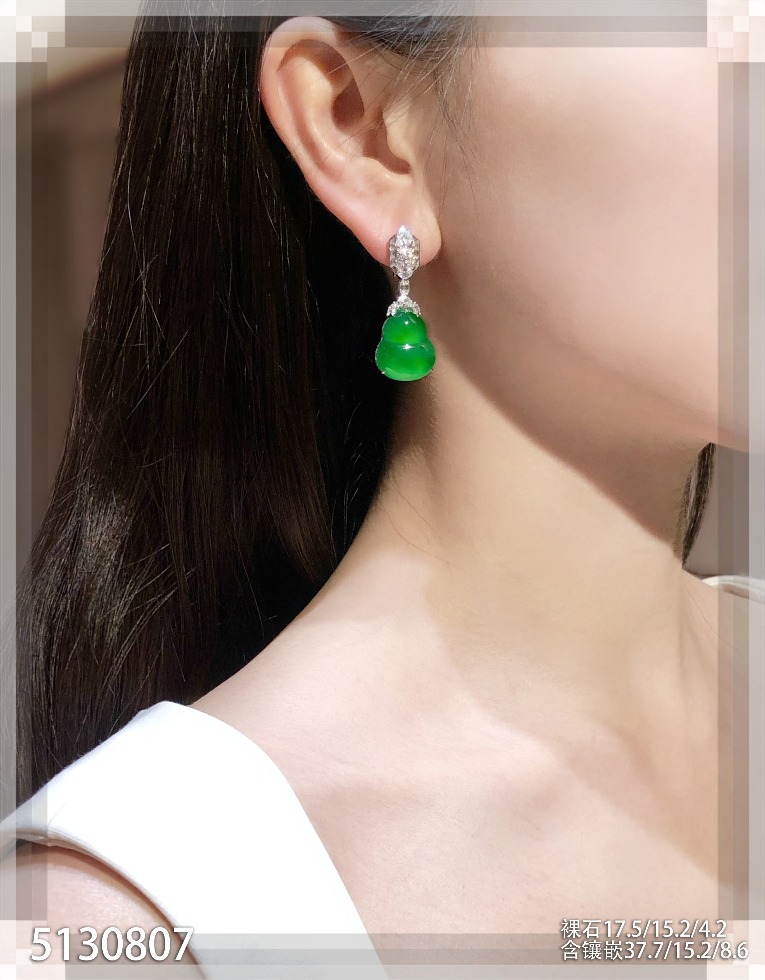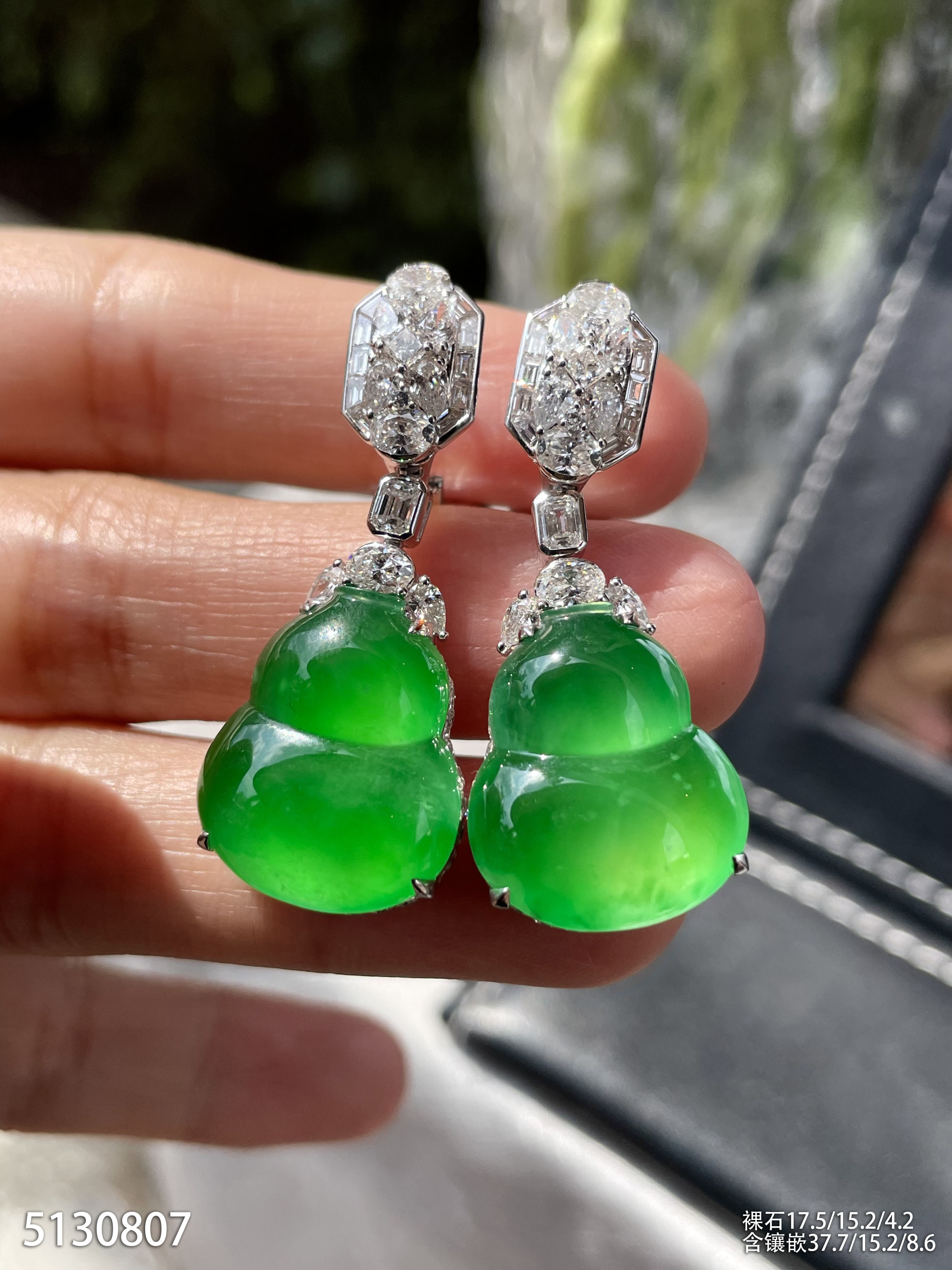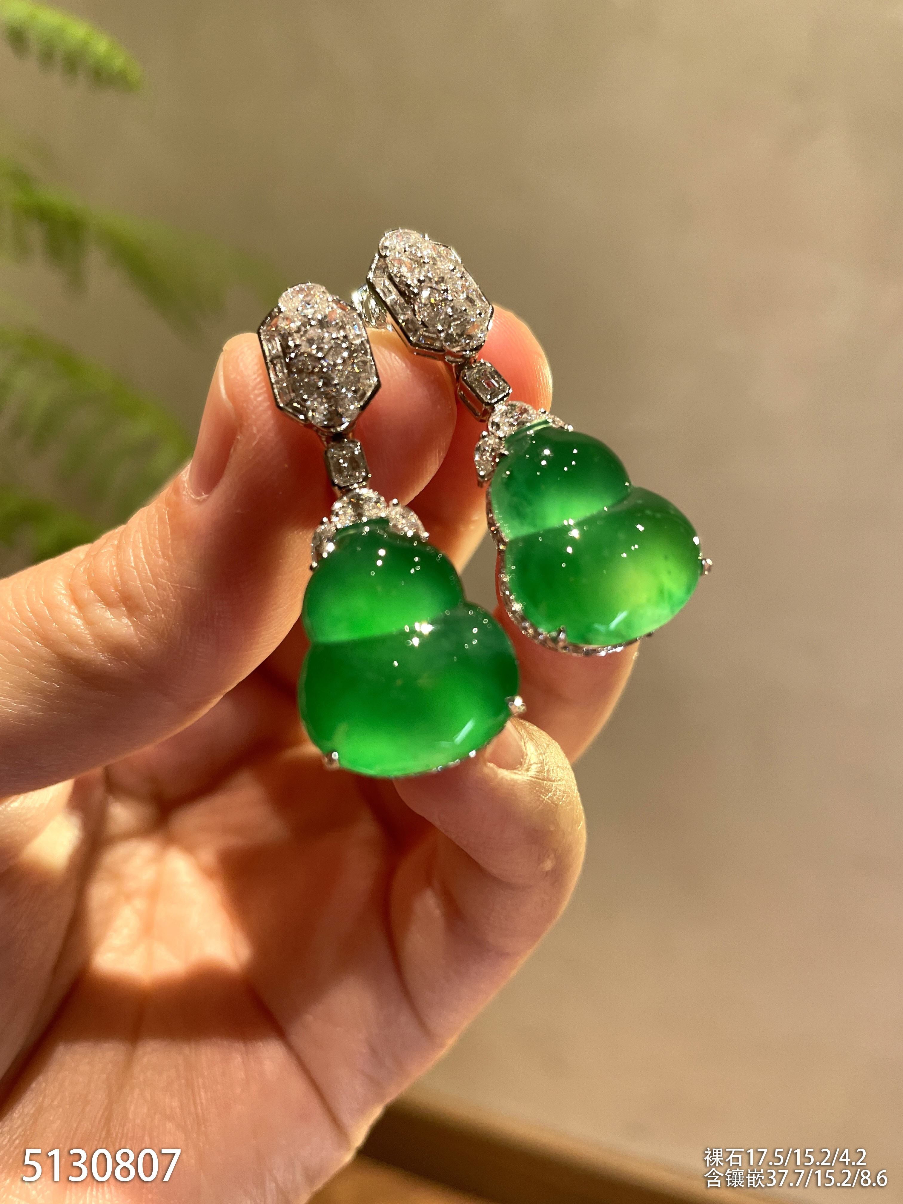 玻璃种艳绿葫芦耳坠【5130807】具体价格微信咨询
