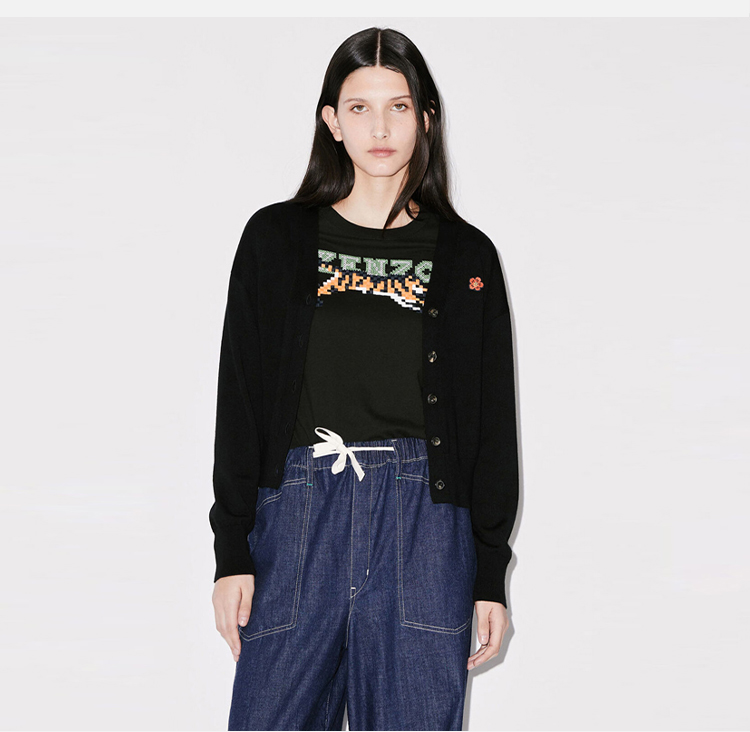 KENZO 高田贤三 女士 “BOKE FLOWER” 徽章刺绣羊毛针织开衫 黑色 FD52 CA383 3LB 99J