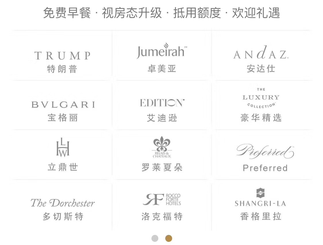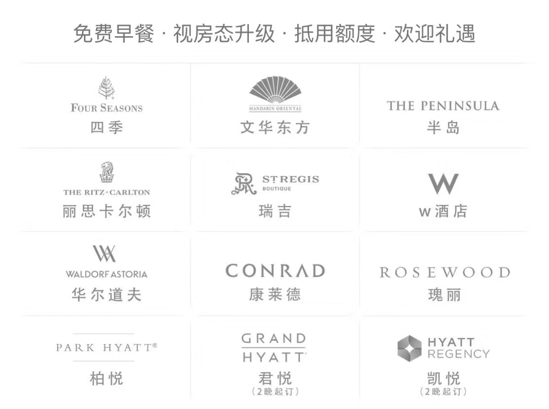 洲际 雅高 希尔顿 凯悦 万豪集团 免费升级套房双早