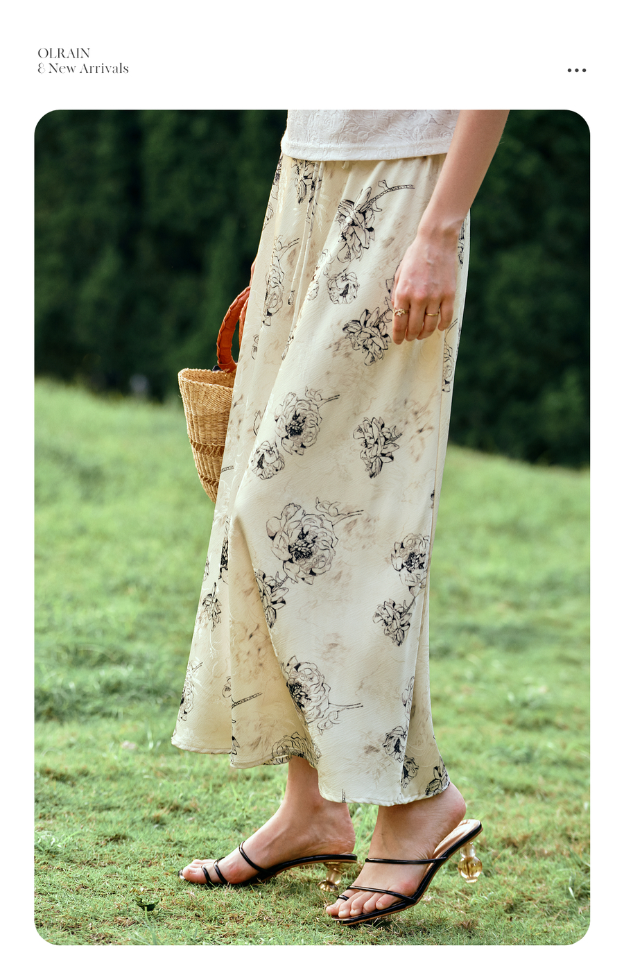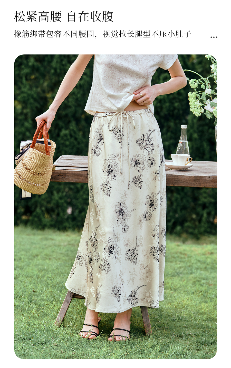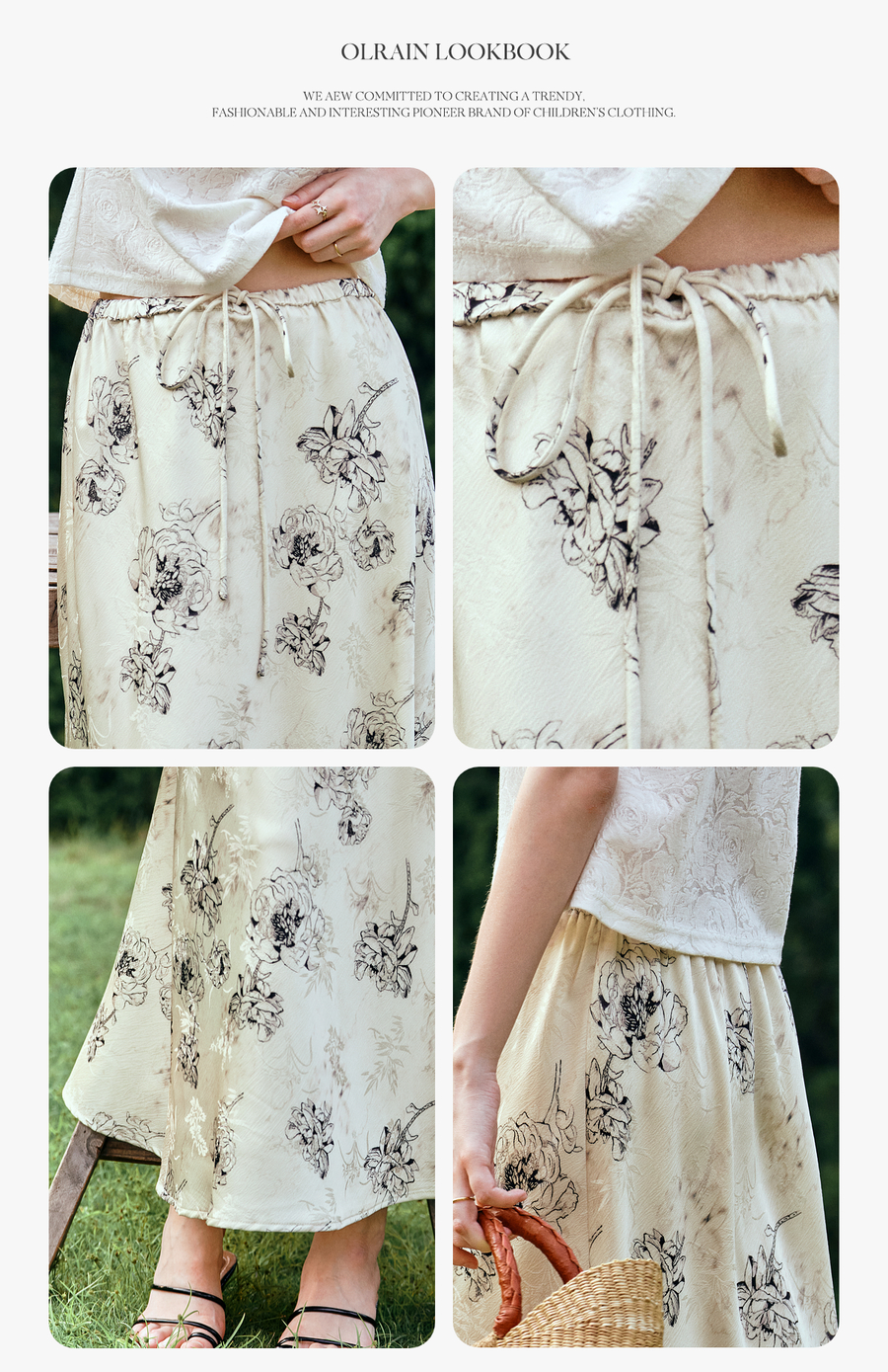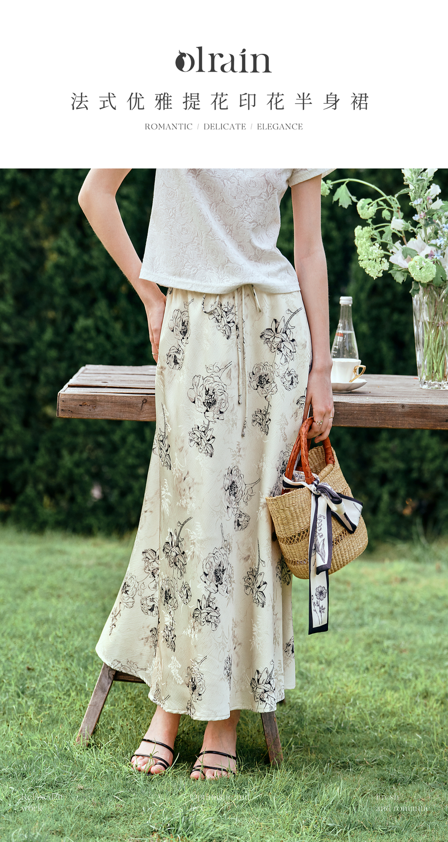 OLrain欧芮儿法式优雅提花印花半身裙女夏季2025新款高腰绑带裙子