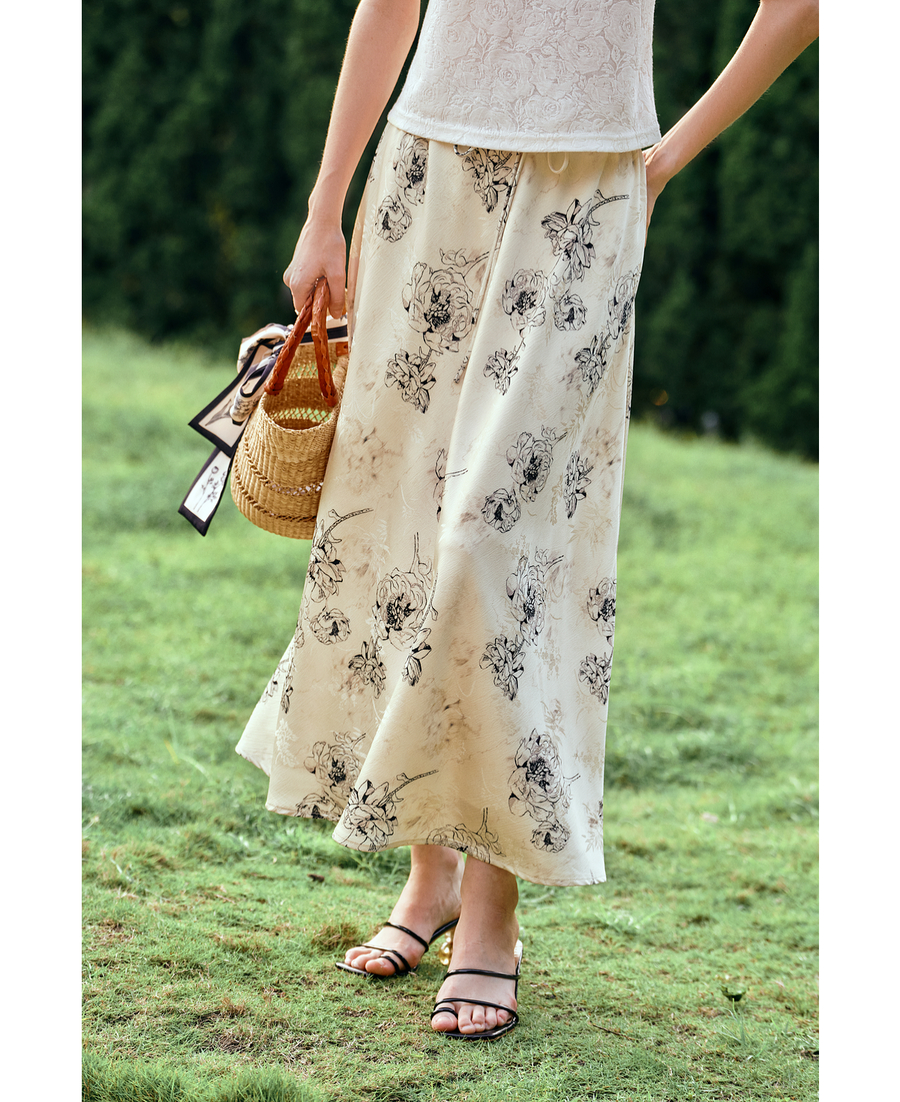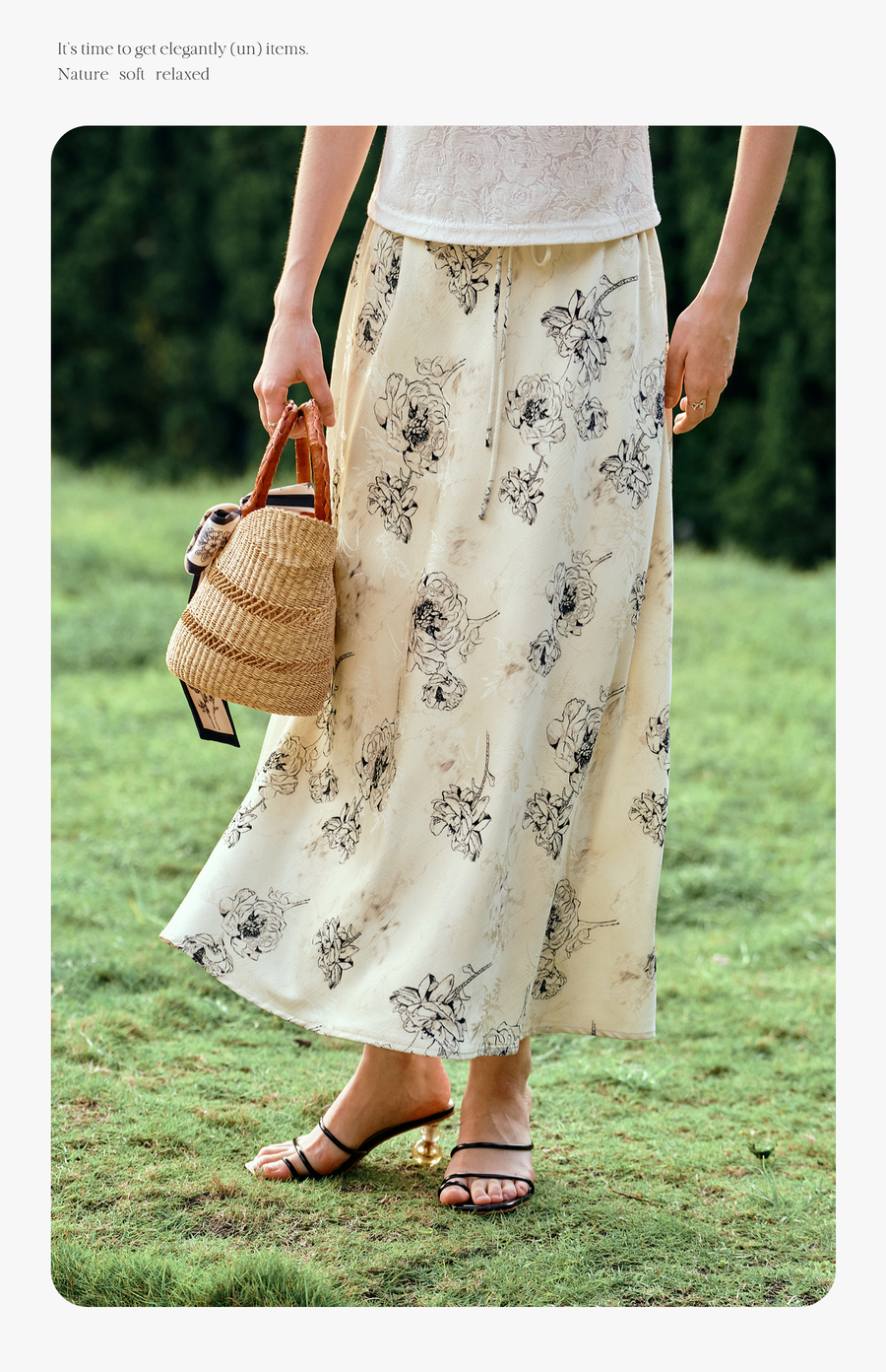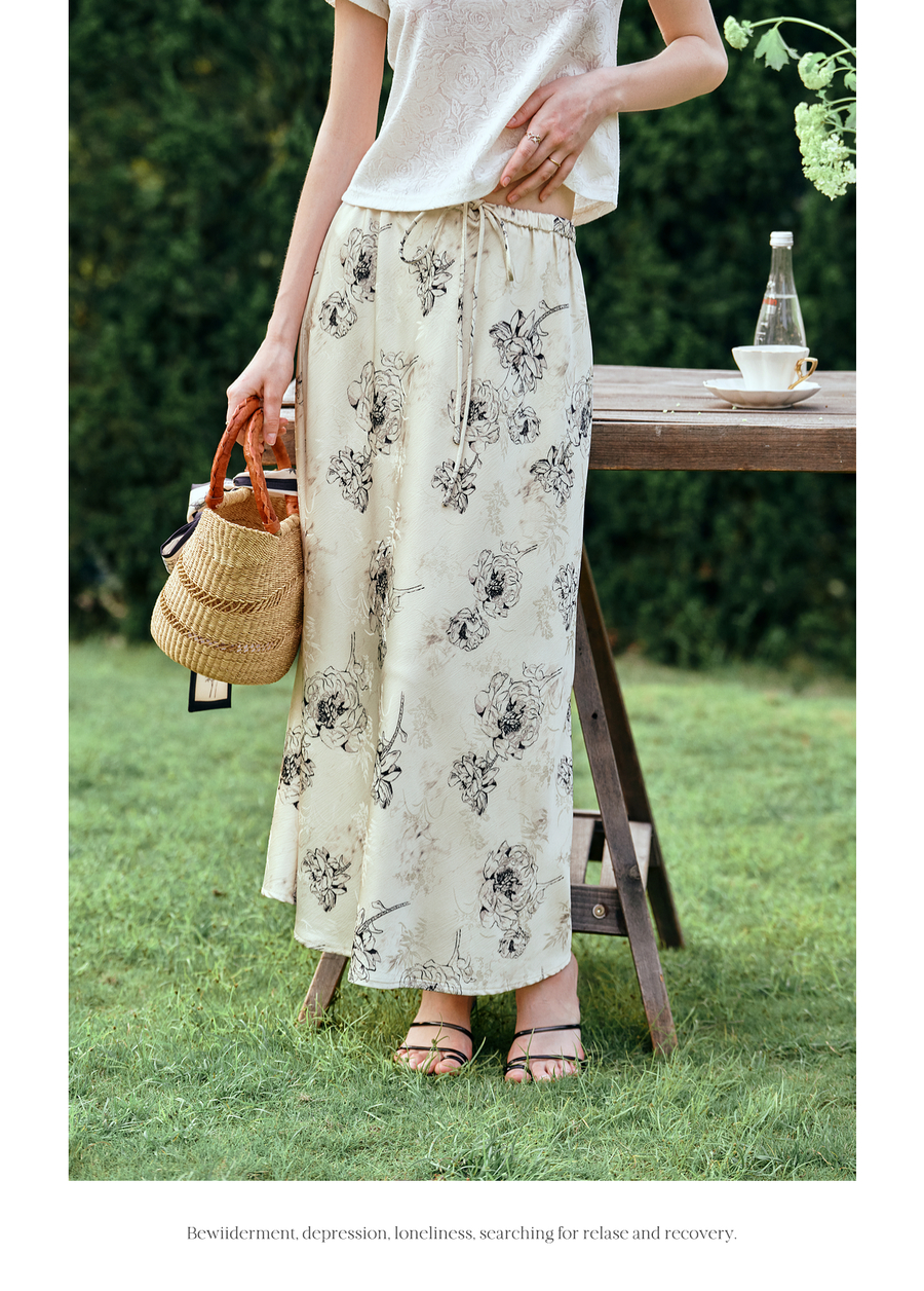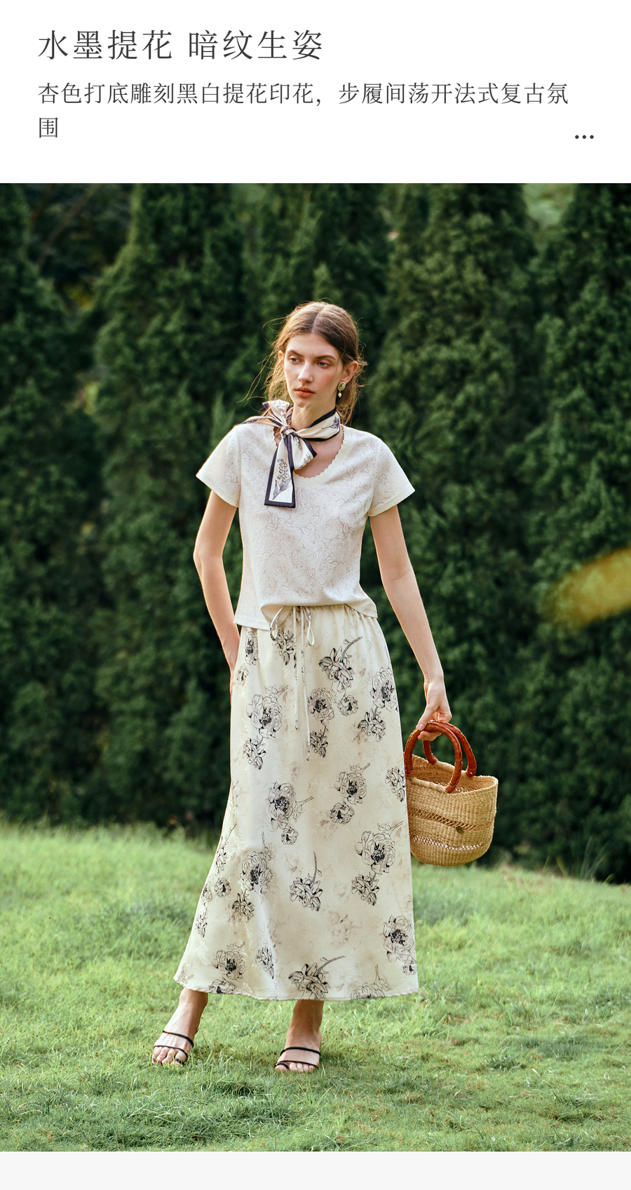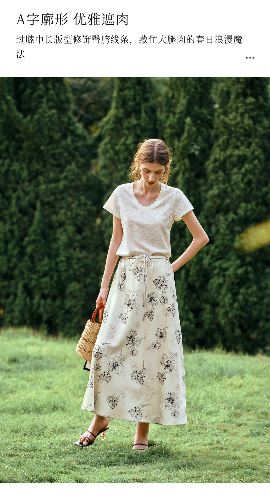 OLrain欧芮儿法式优雅提花印花半身裙女夏季2025新款高腰绑带裙子