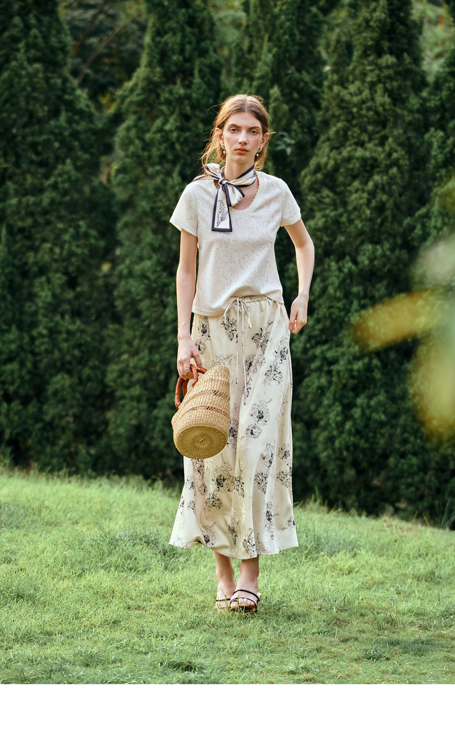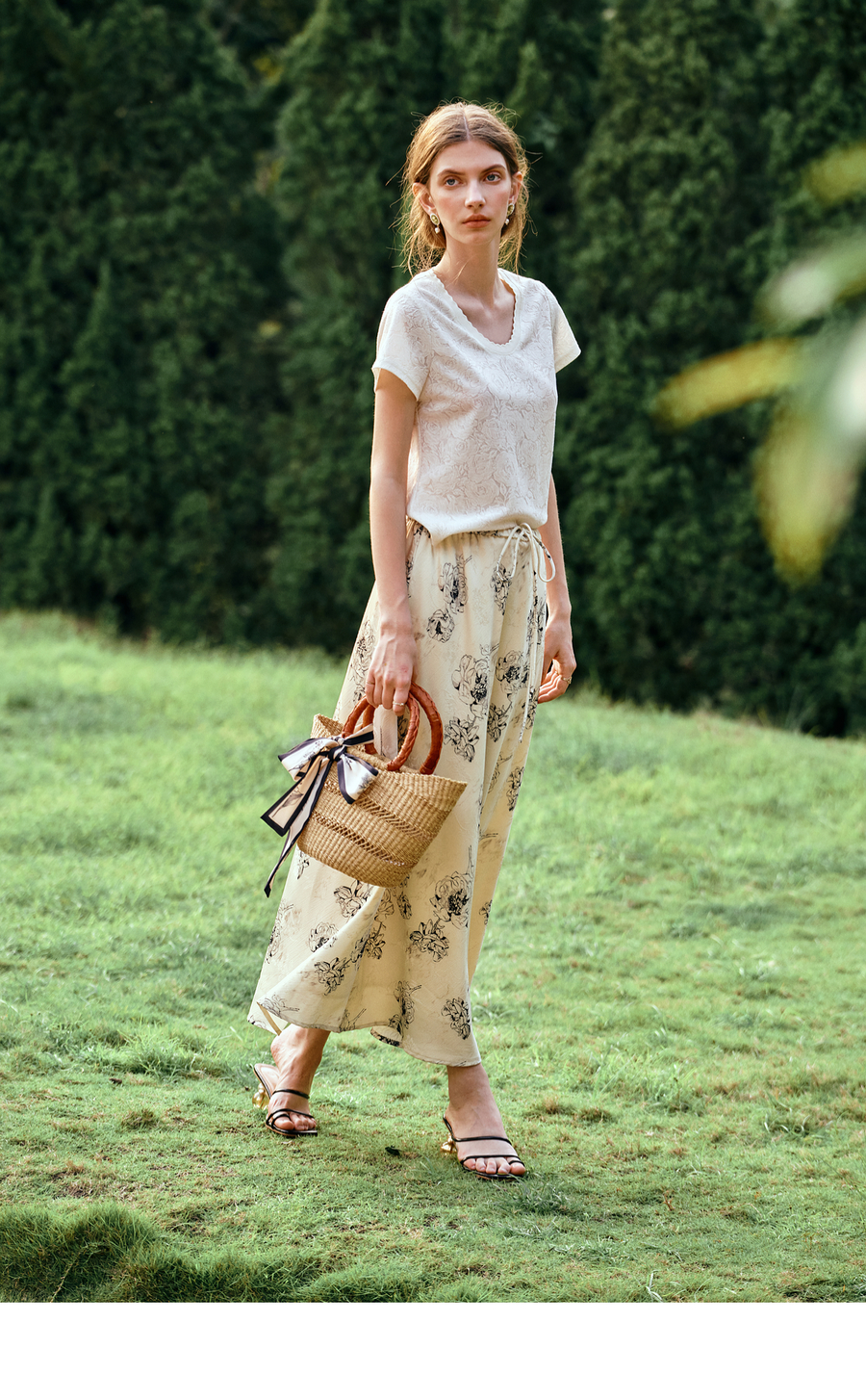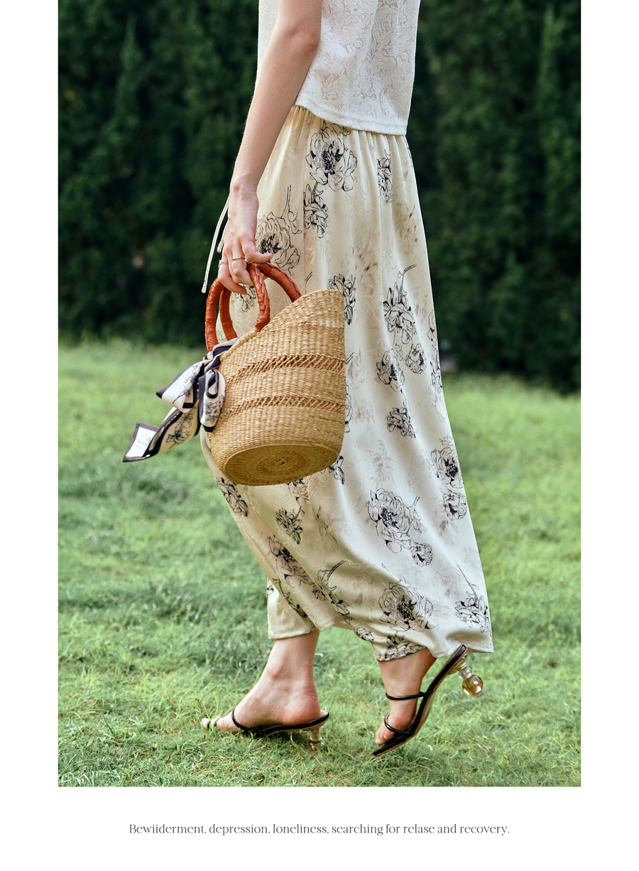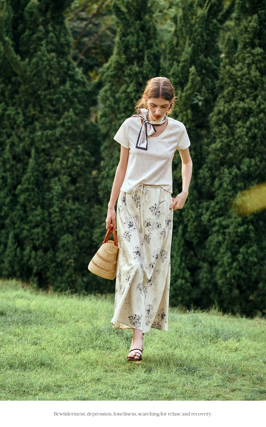 OLrain欧芮儿法式优雅提花印花半身裙女夏季2025新款高腰绑带裙子