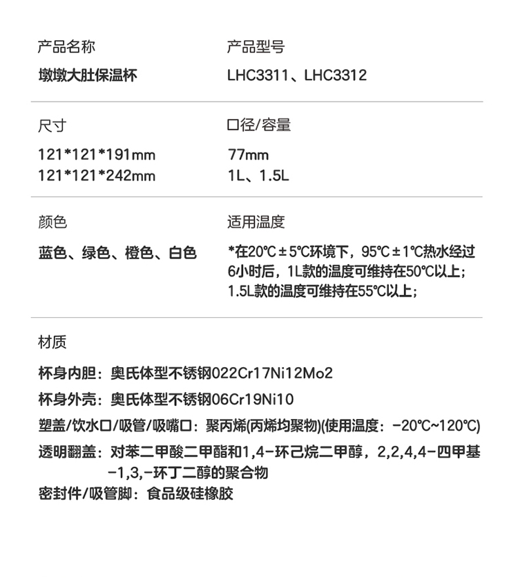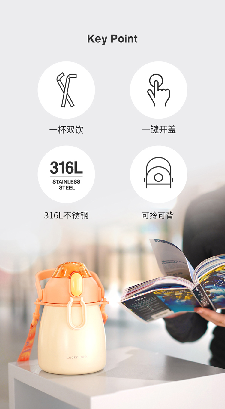 乐扣乐扣保温杯大容量大肚杯吨吨桶316不锈钢水杯保温运动杯