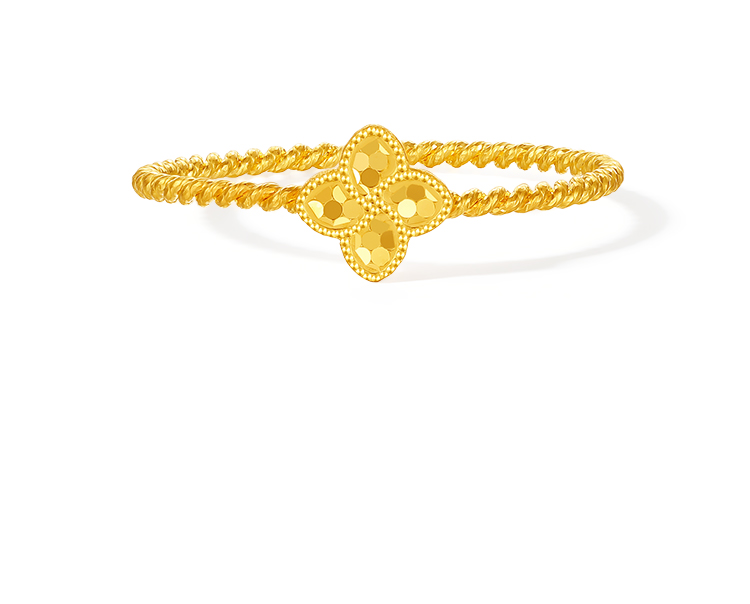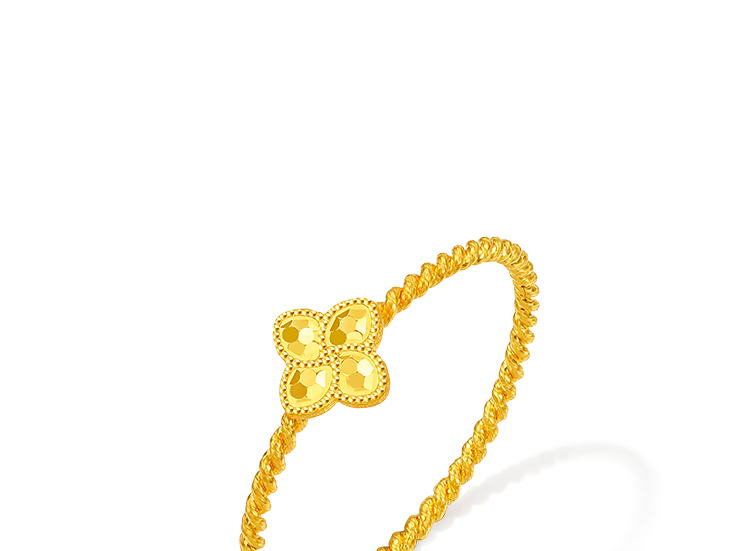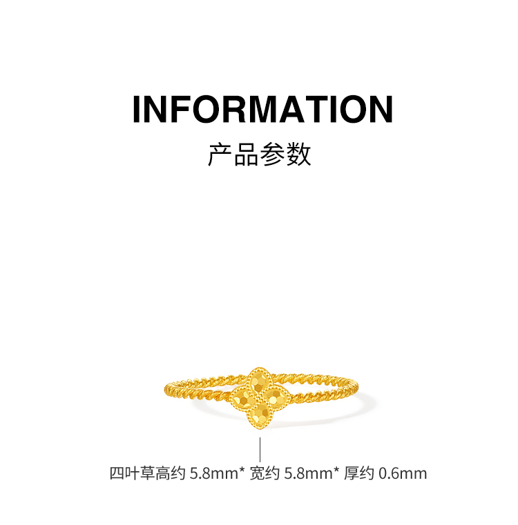 周六福5G足金计价满天星碎金四叶草碎碎冰鱼鳞戒指节日礼物