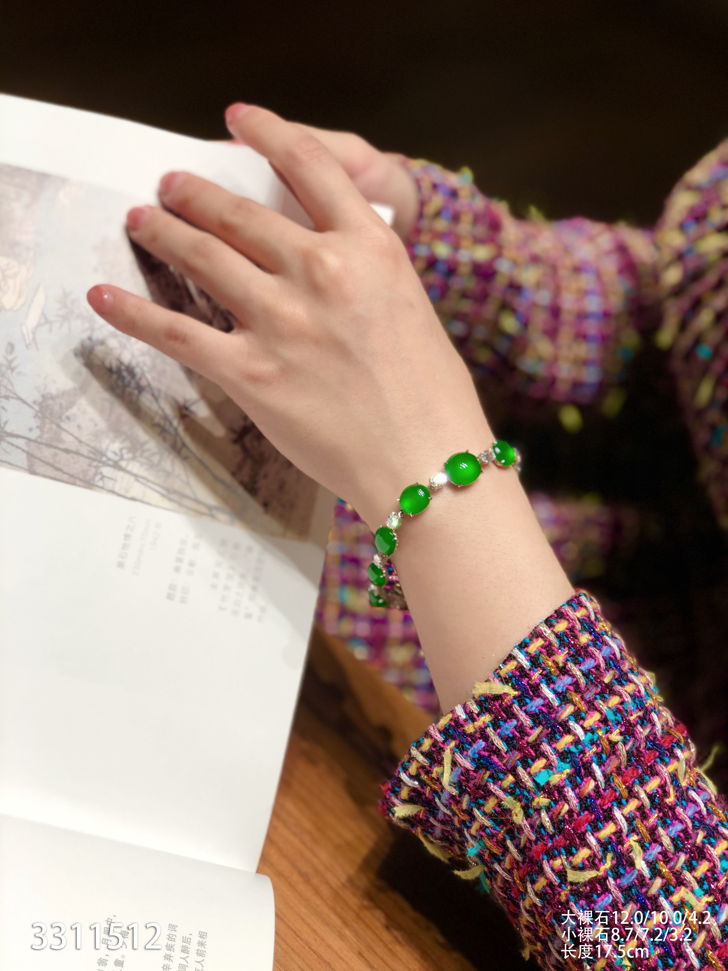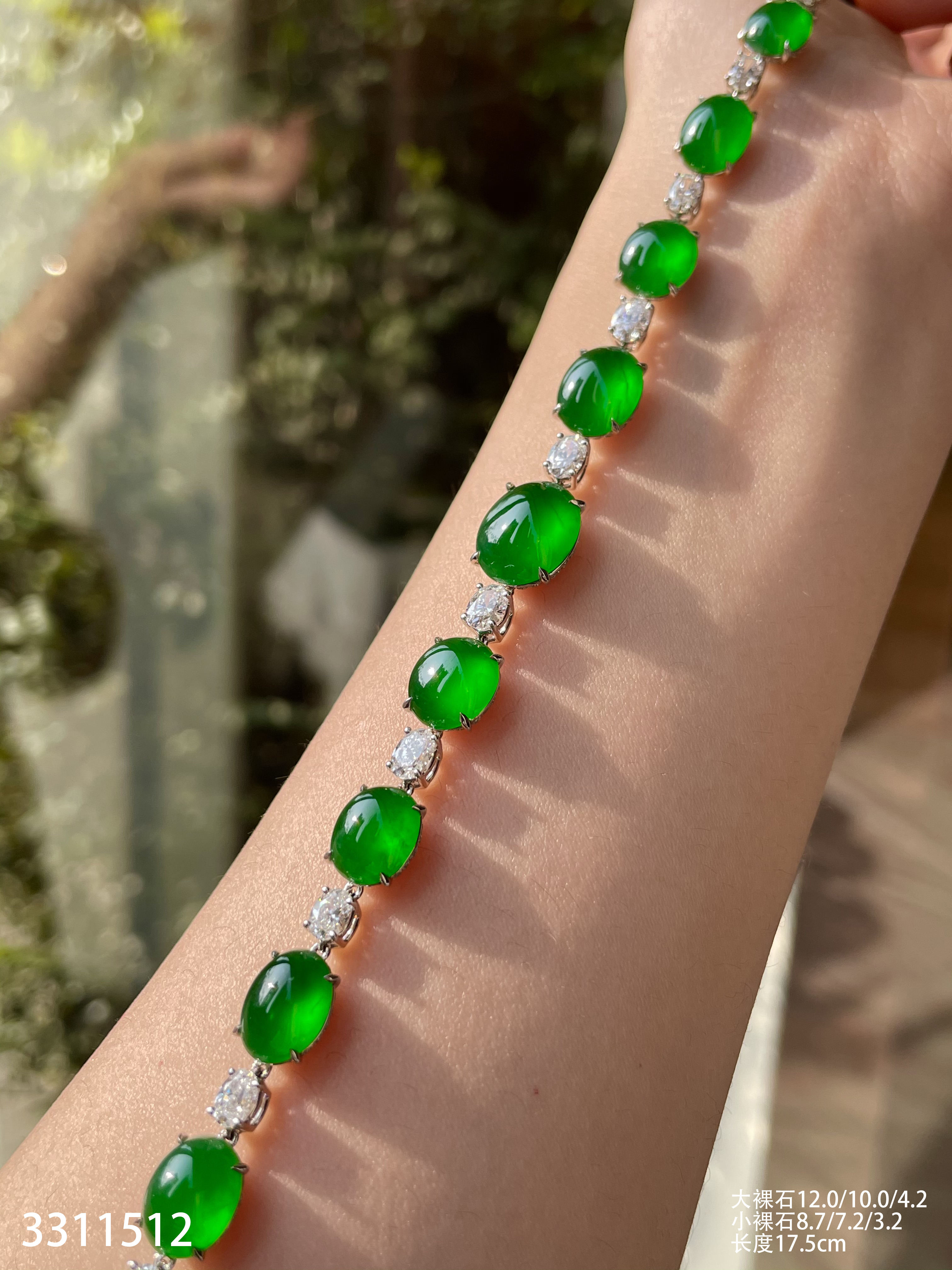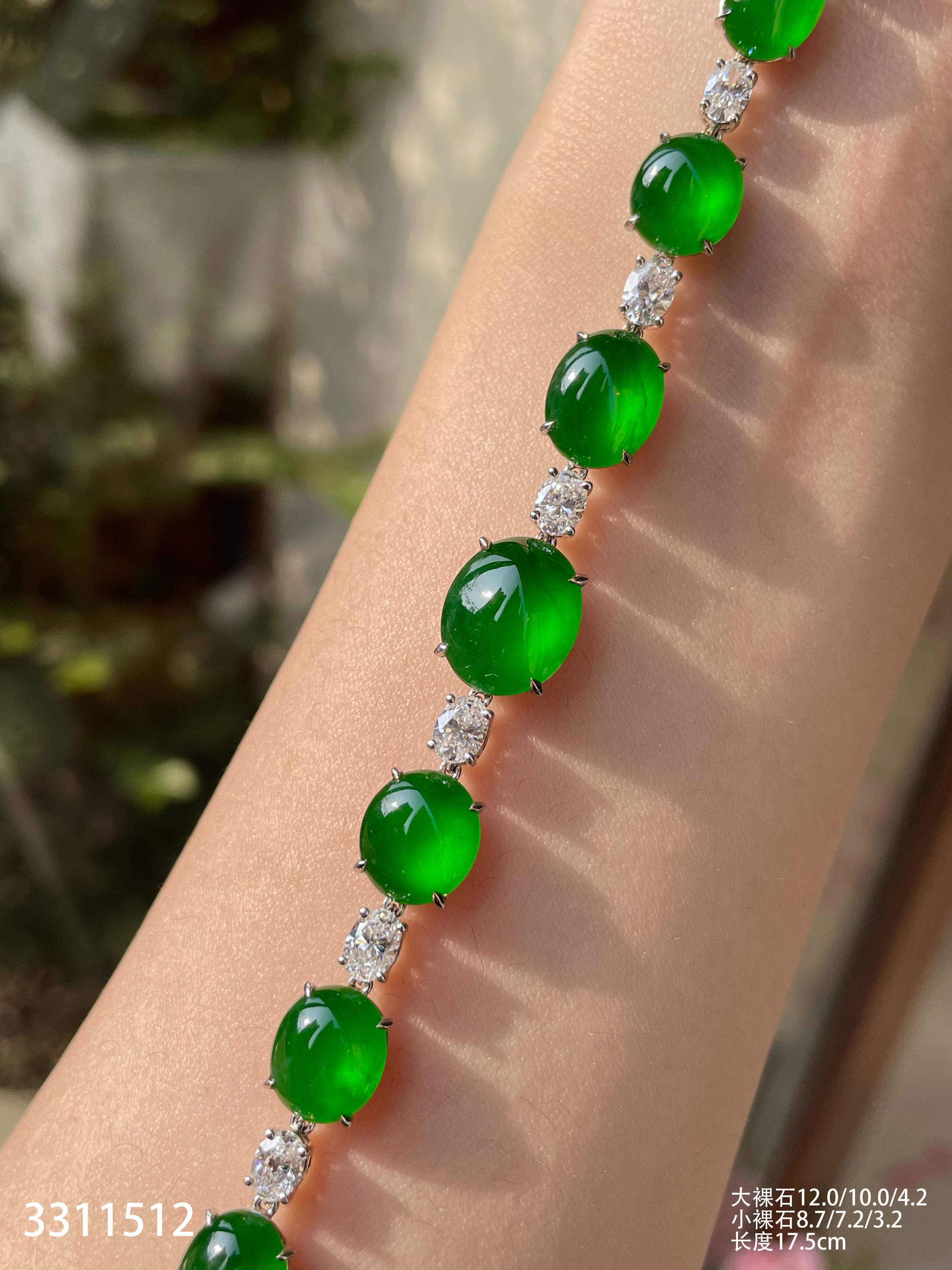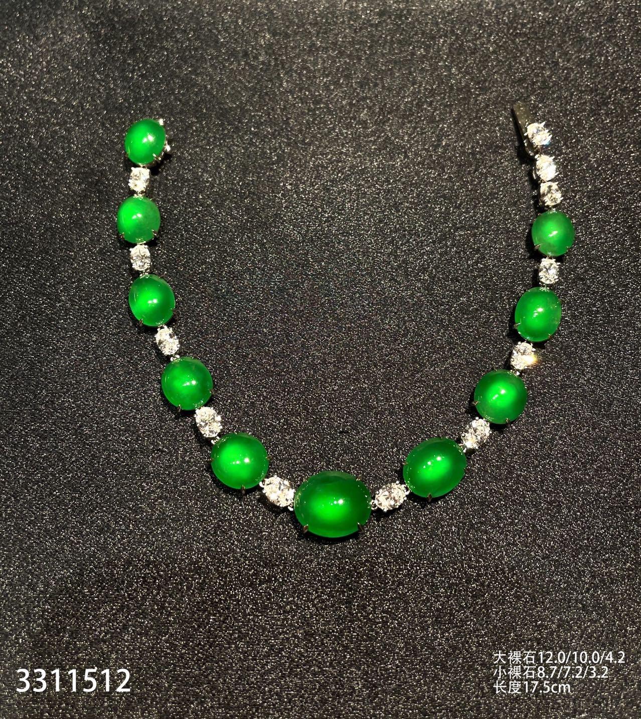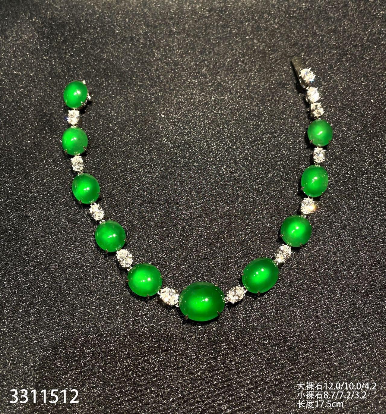 老坑玻璃种帝王绿蛋面手链【3311512】具体价格微信咨询