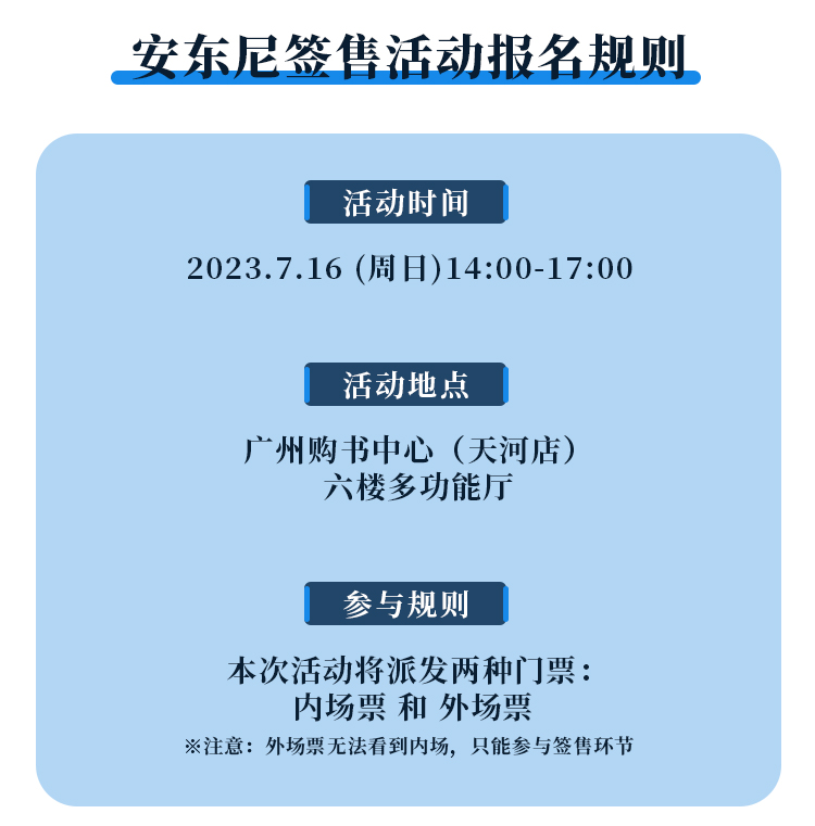 安东尼新书分享会//2023.7.16(周日) 14:00-17:00//广州购书中心(天河店)六楼多功能厅