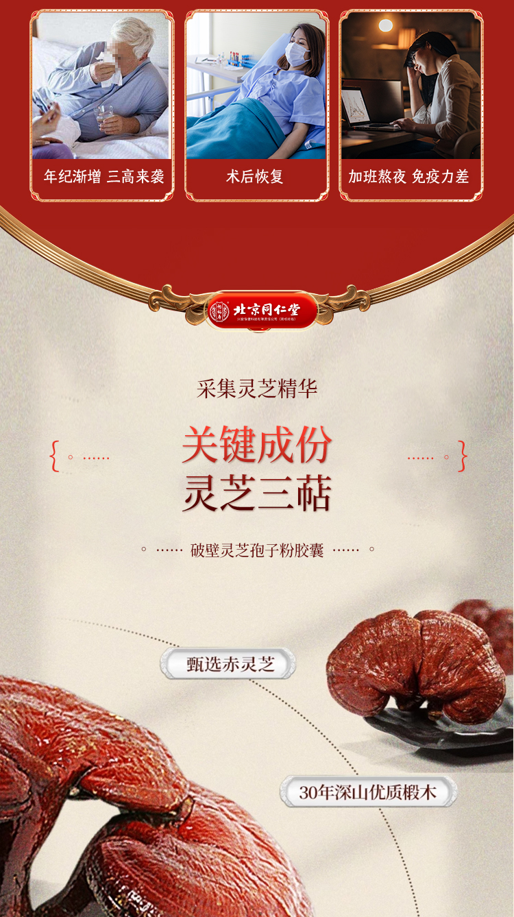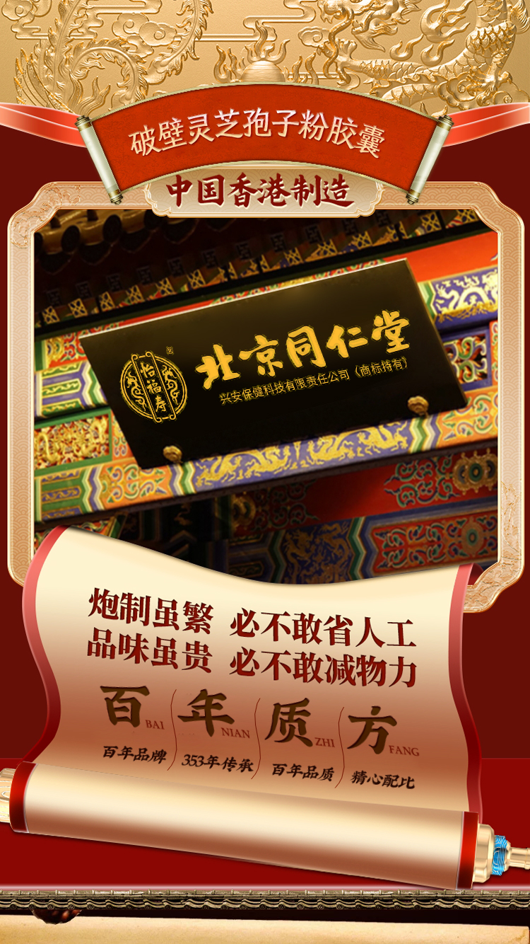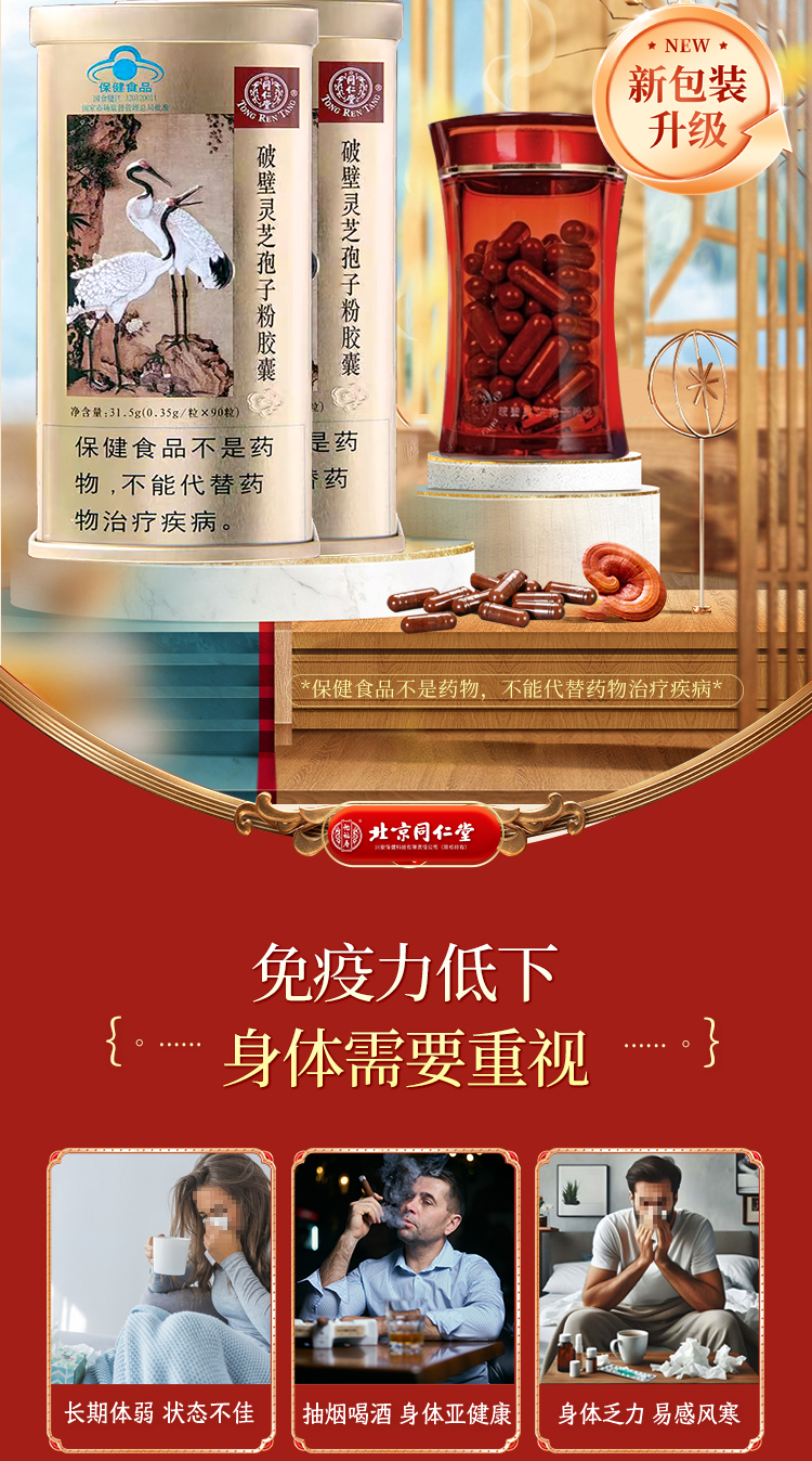 北京同仁堂破壁灵芝孢子粉胶囊90粒 营养品保健品增强免疫力 1盒装【90粒/盒】