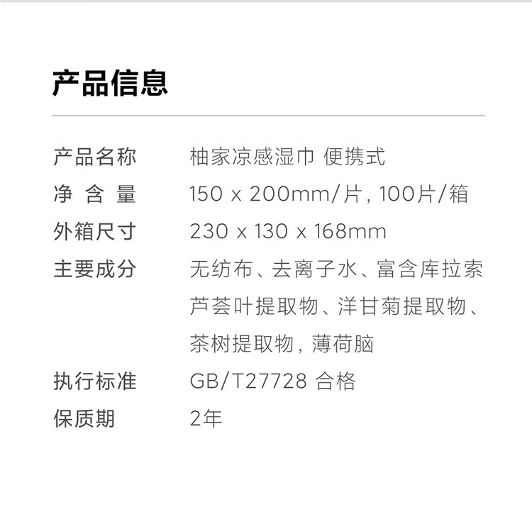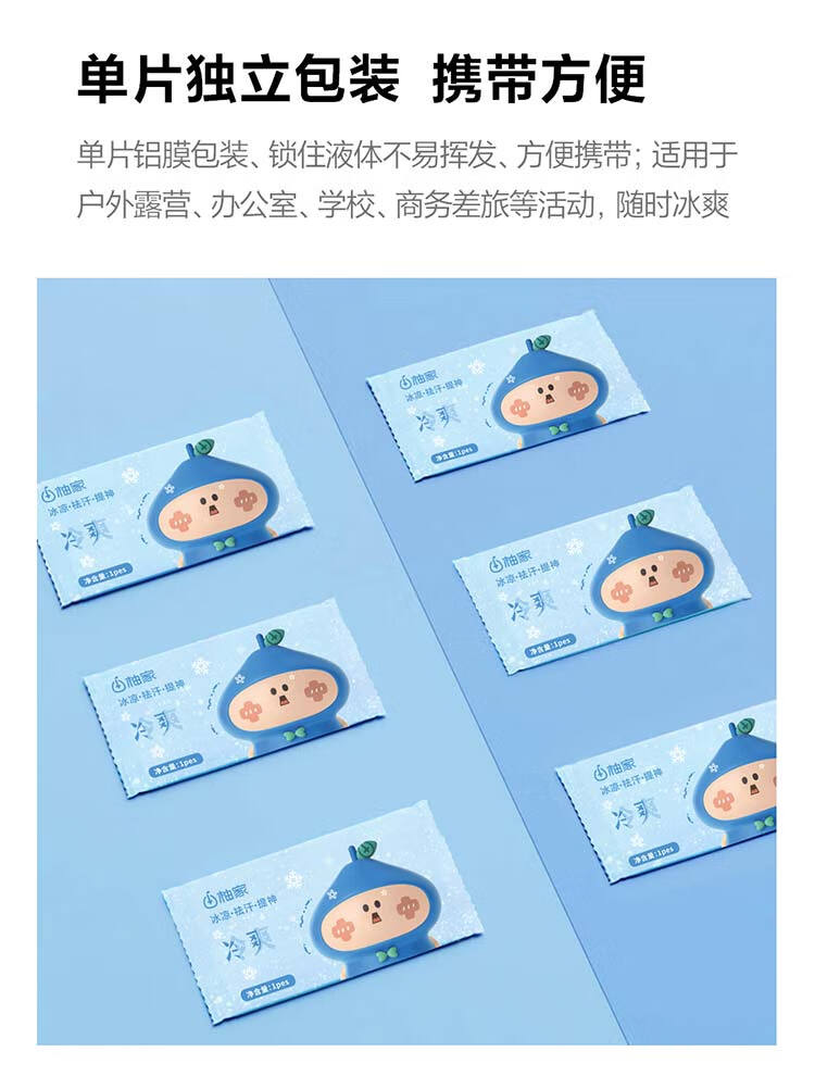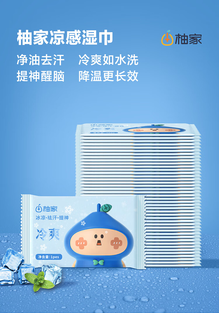 【分仓直发包邮】柚家凉感湿巾独立包装便携式40744(100片/箱)