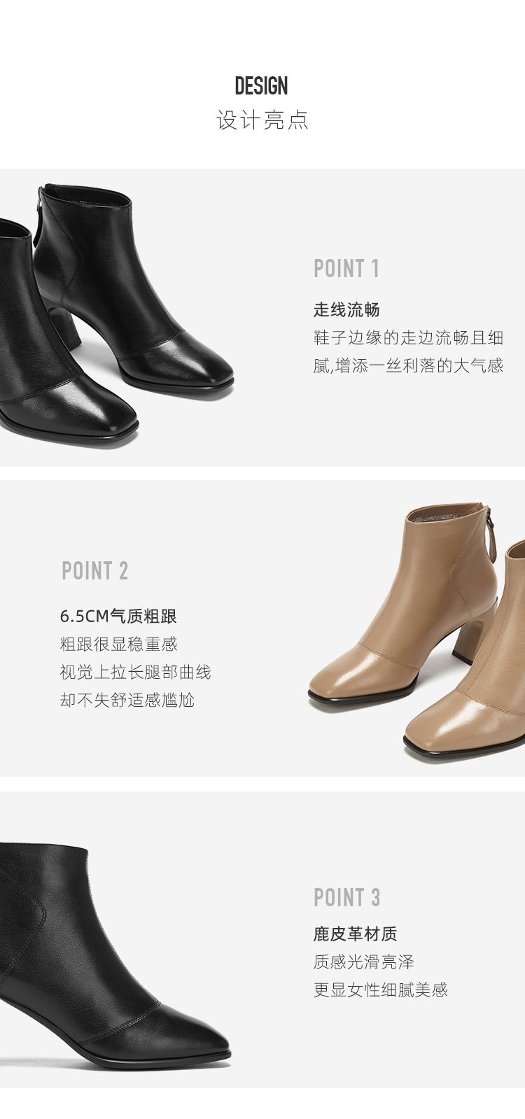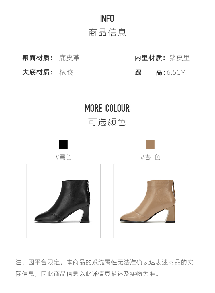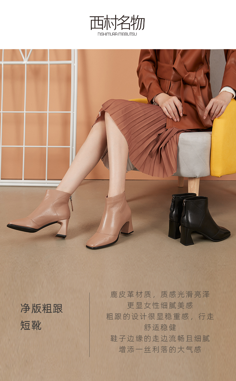 西村名物2020冬季新款女时装靴鹿皮革净版粗跟时尚休闲短靴T20DS41561
