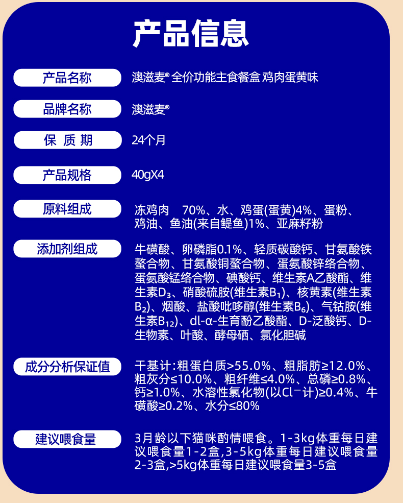 澳滋麦丨慕斯塔塔·鱼油卵磷脂·鸡肉鸡蛋味