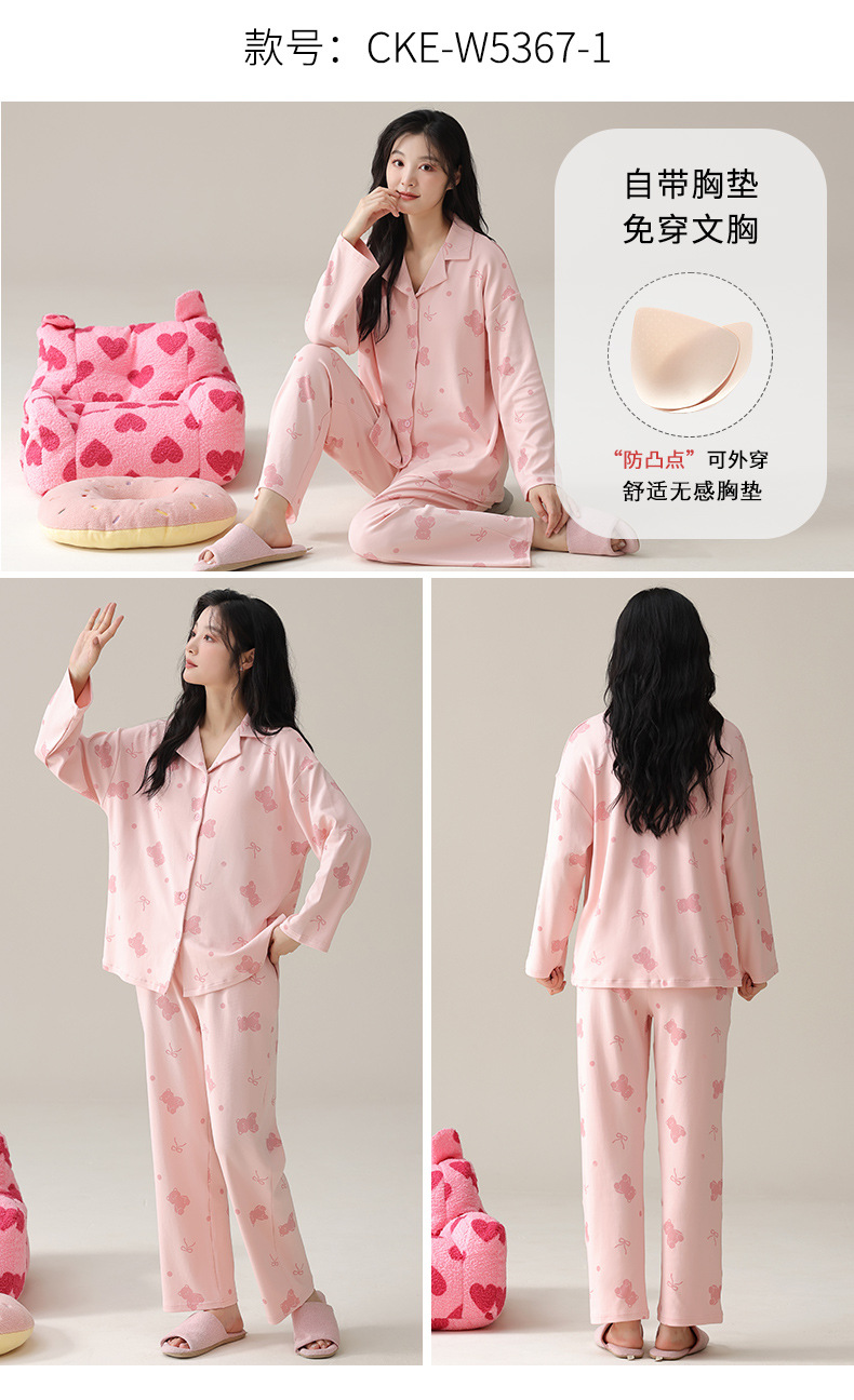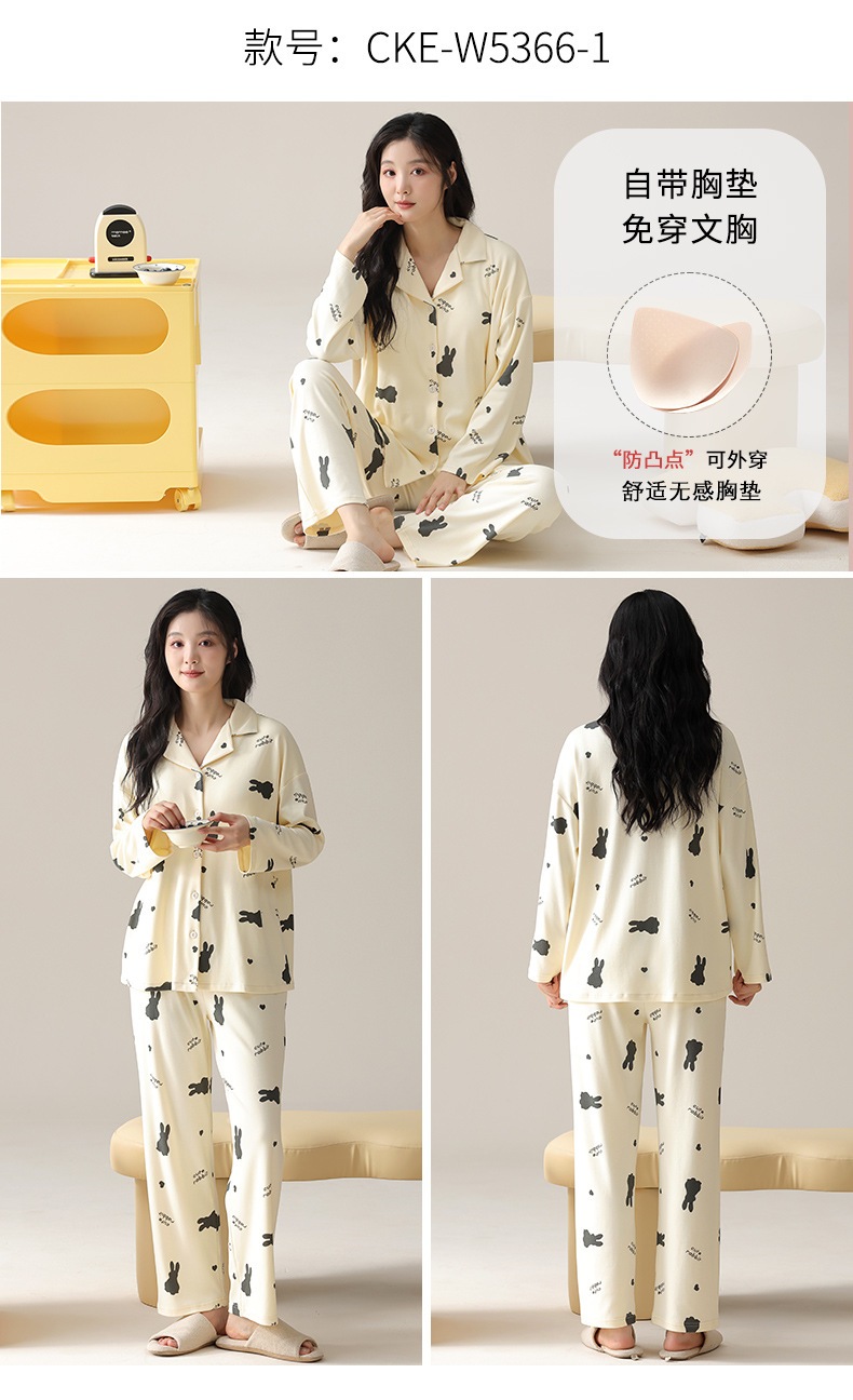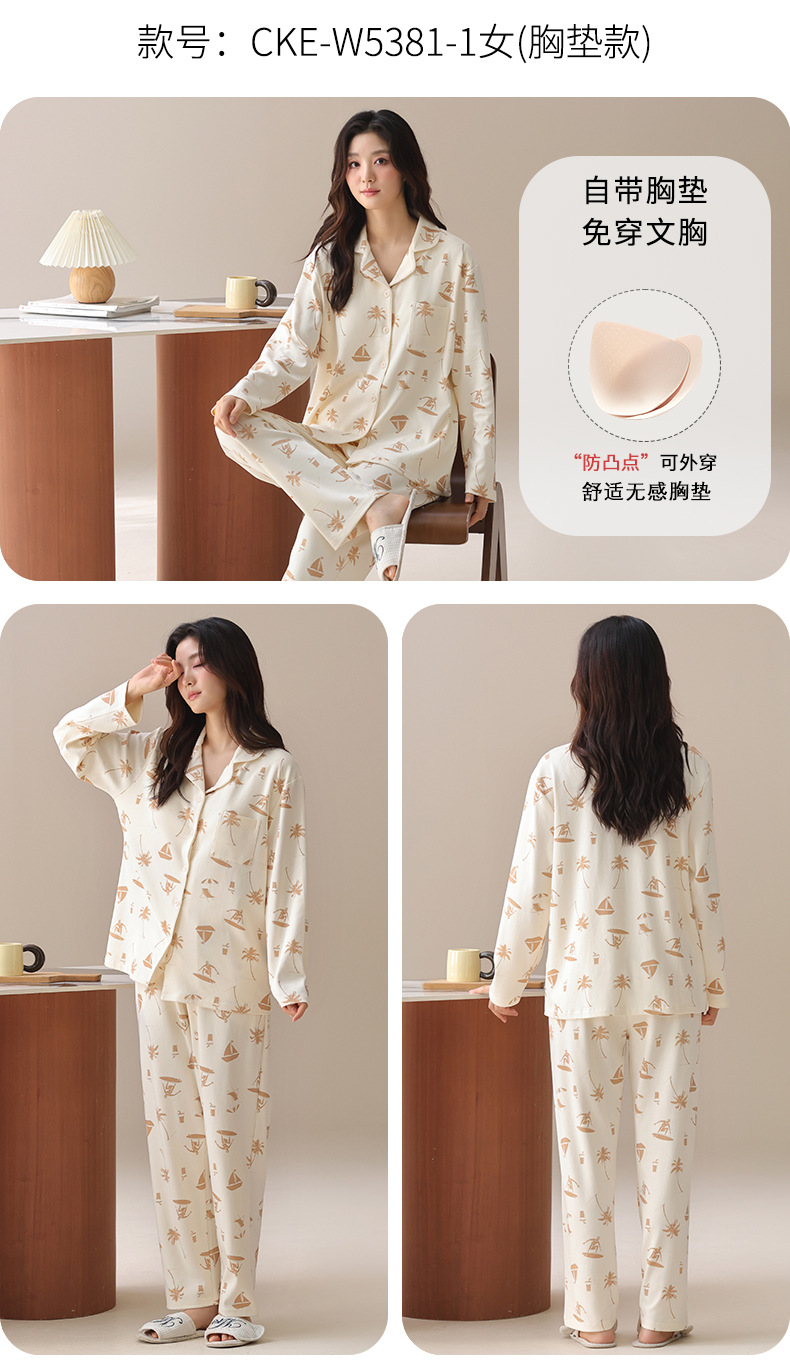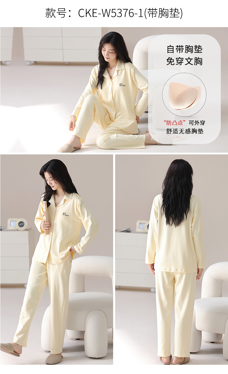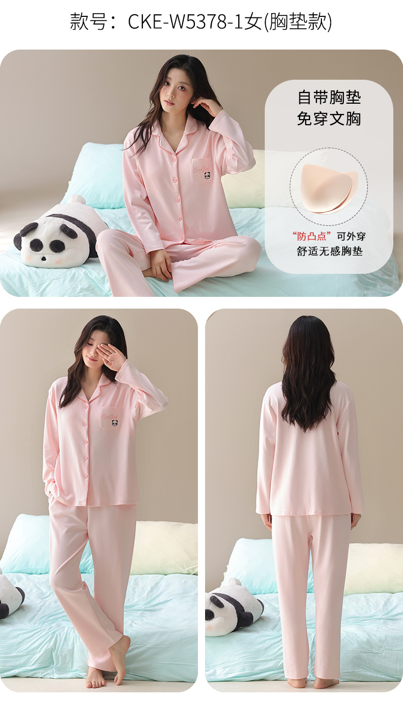 2026新款 女士纯棉开衫睡衣 带胸垫高颜值春秋家居服套装ZXFX2026