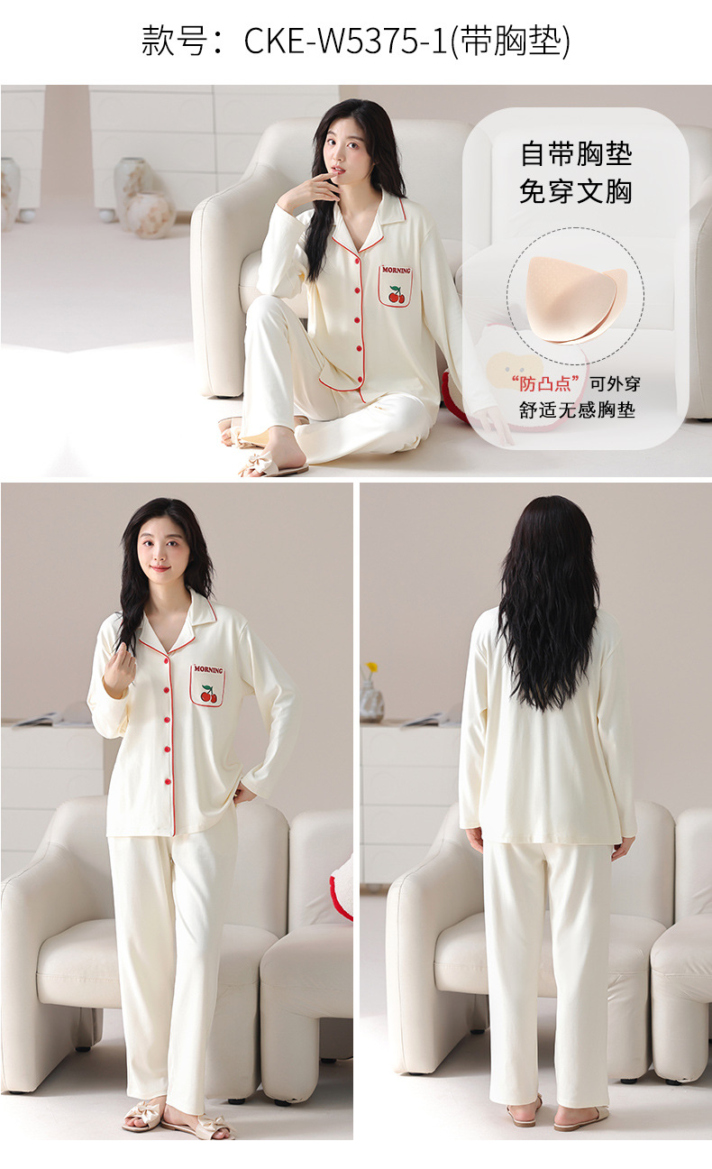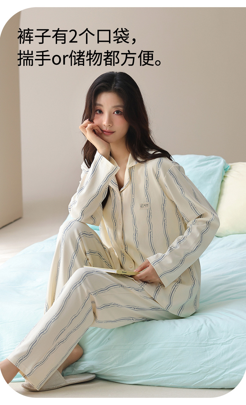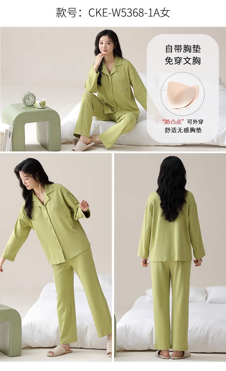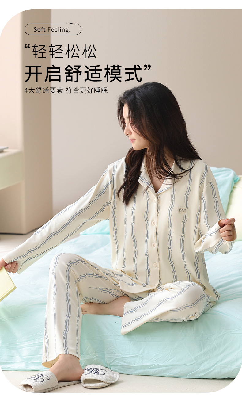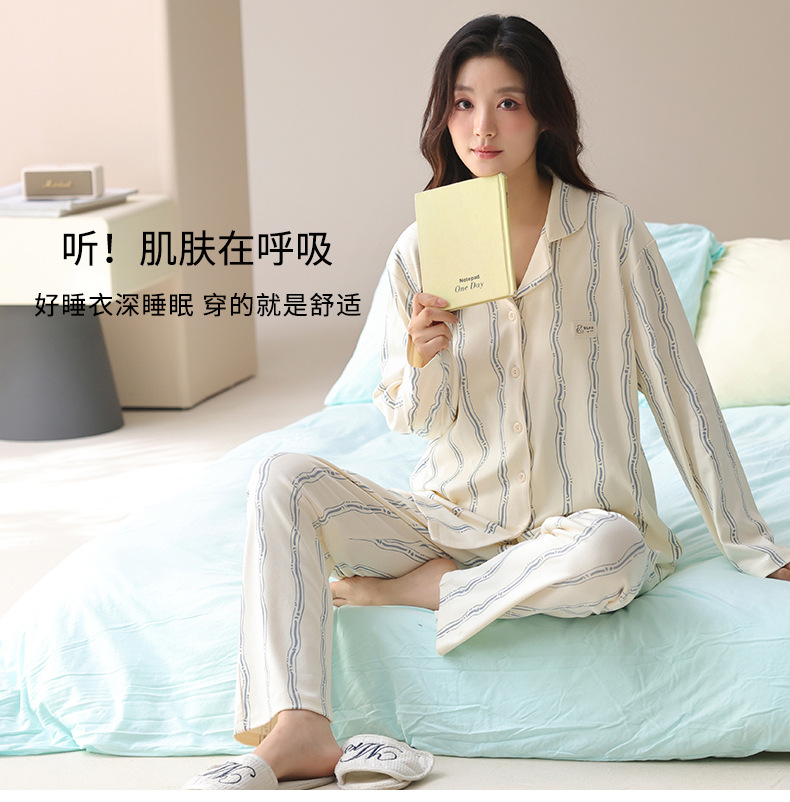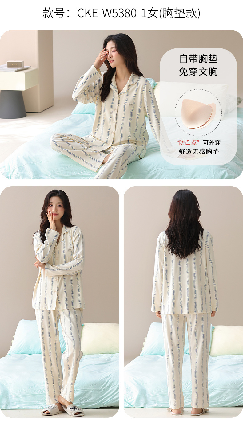 2026新款 女士纯棉开衫睡衣 带胸垫高颜值春秋家居服套装ZXFX2026