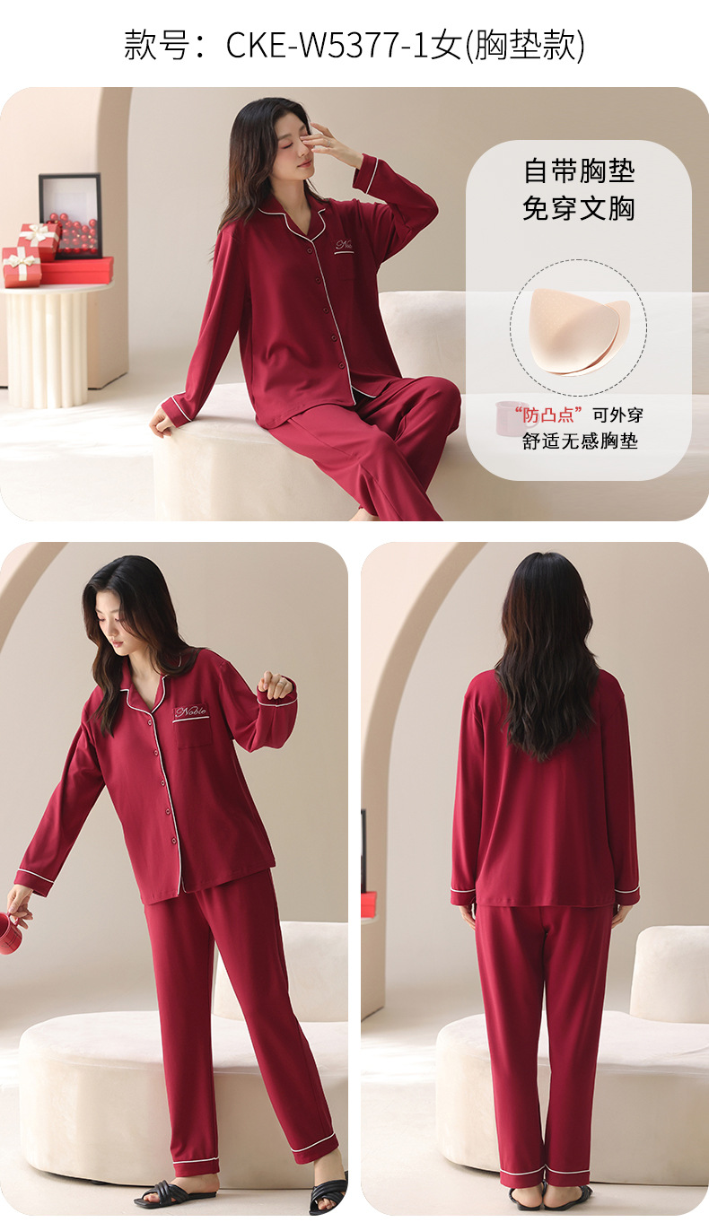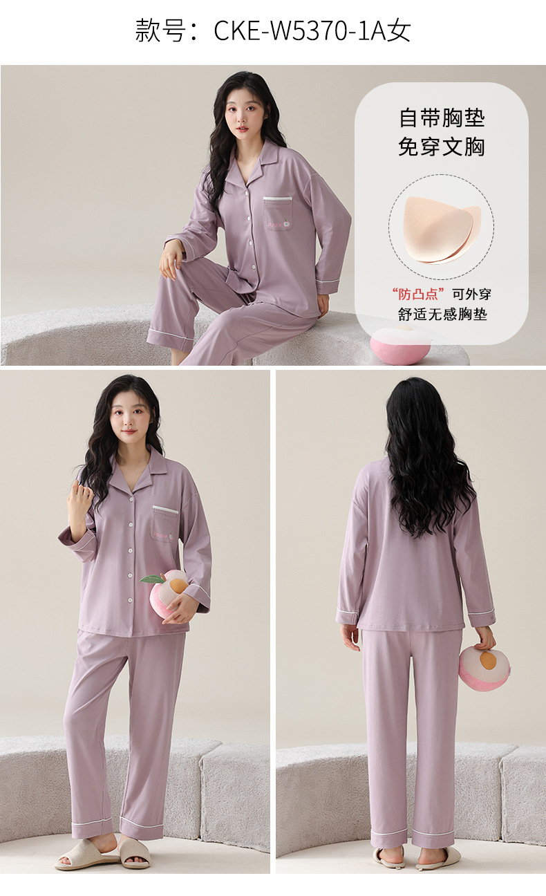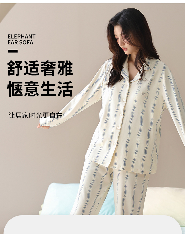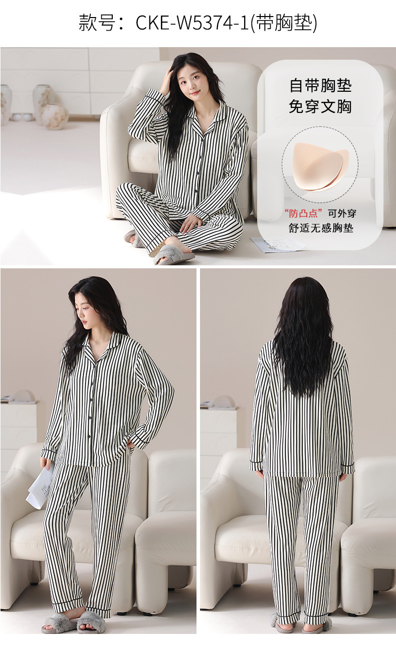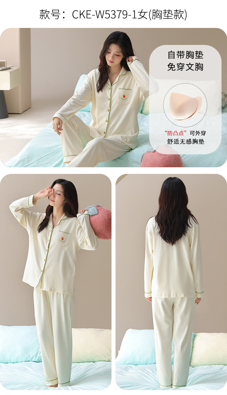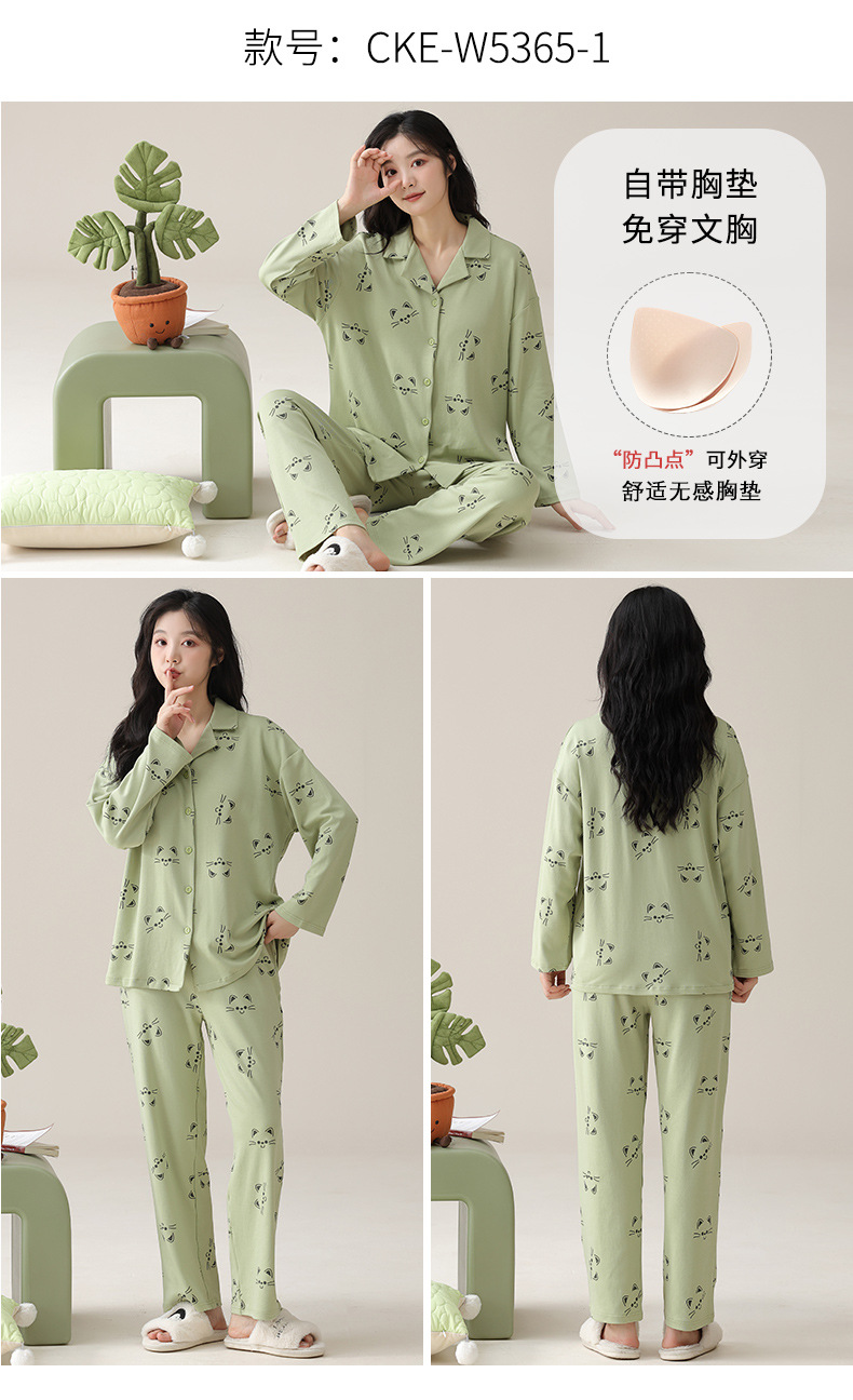 2026新款 女士纯棉开衫睡衣 带胸垫高颜值春秋家居服套装ZXFX2026