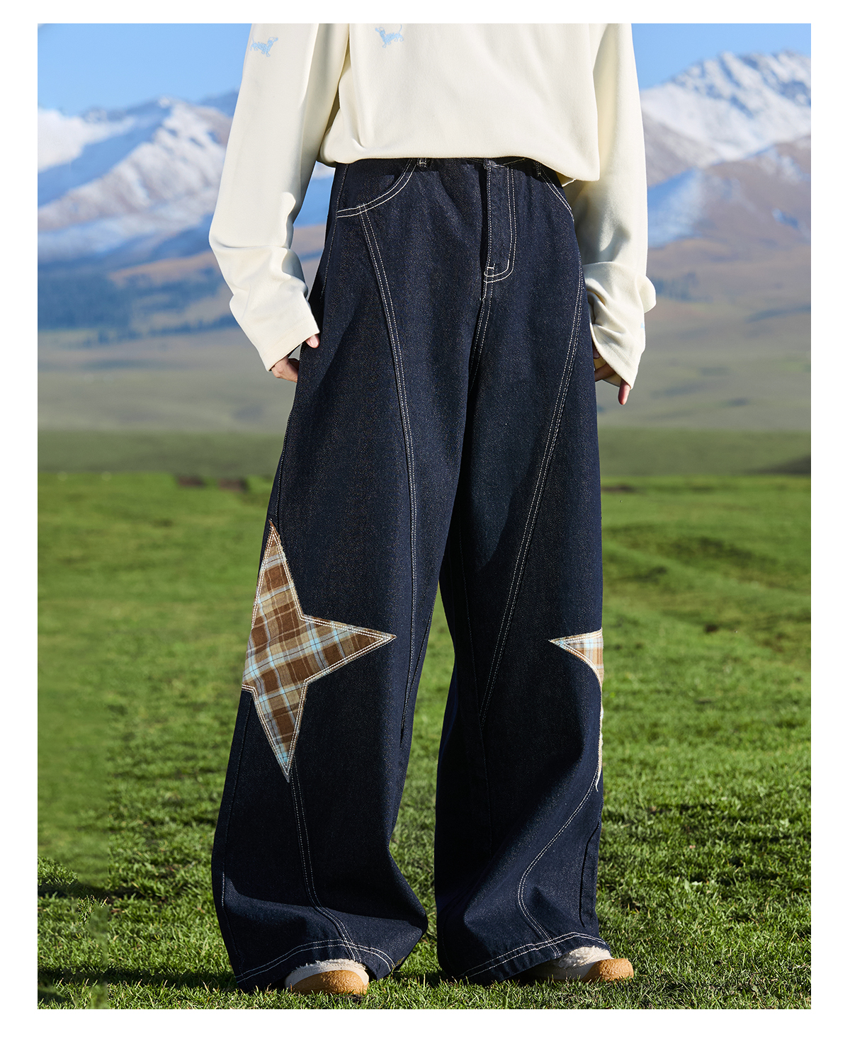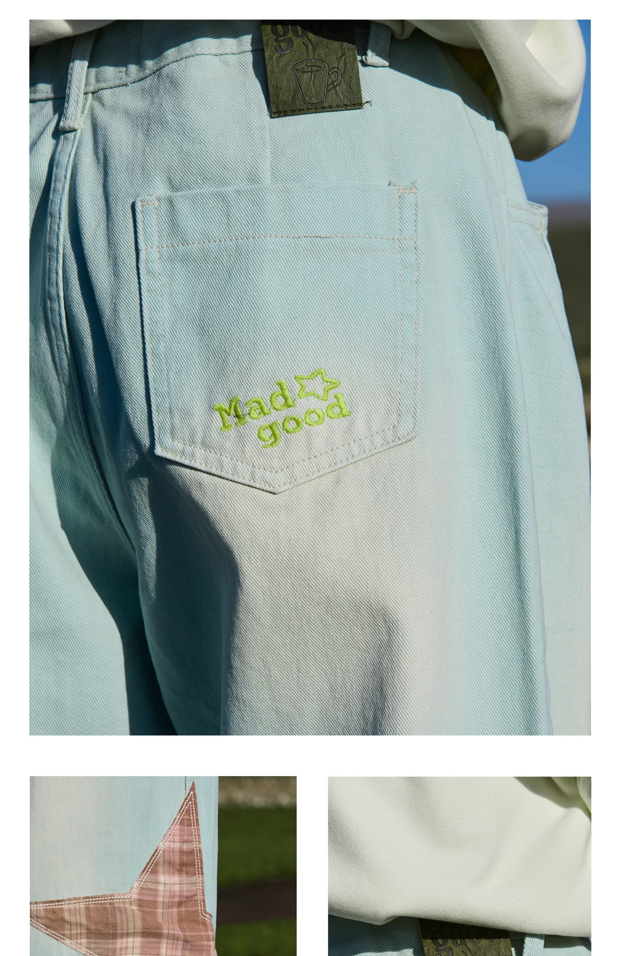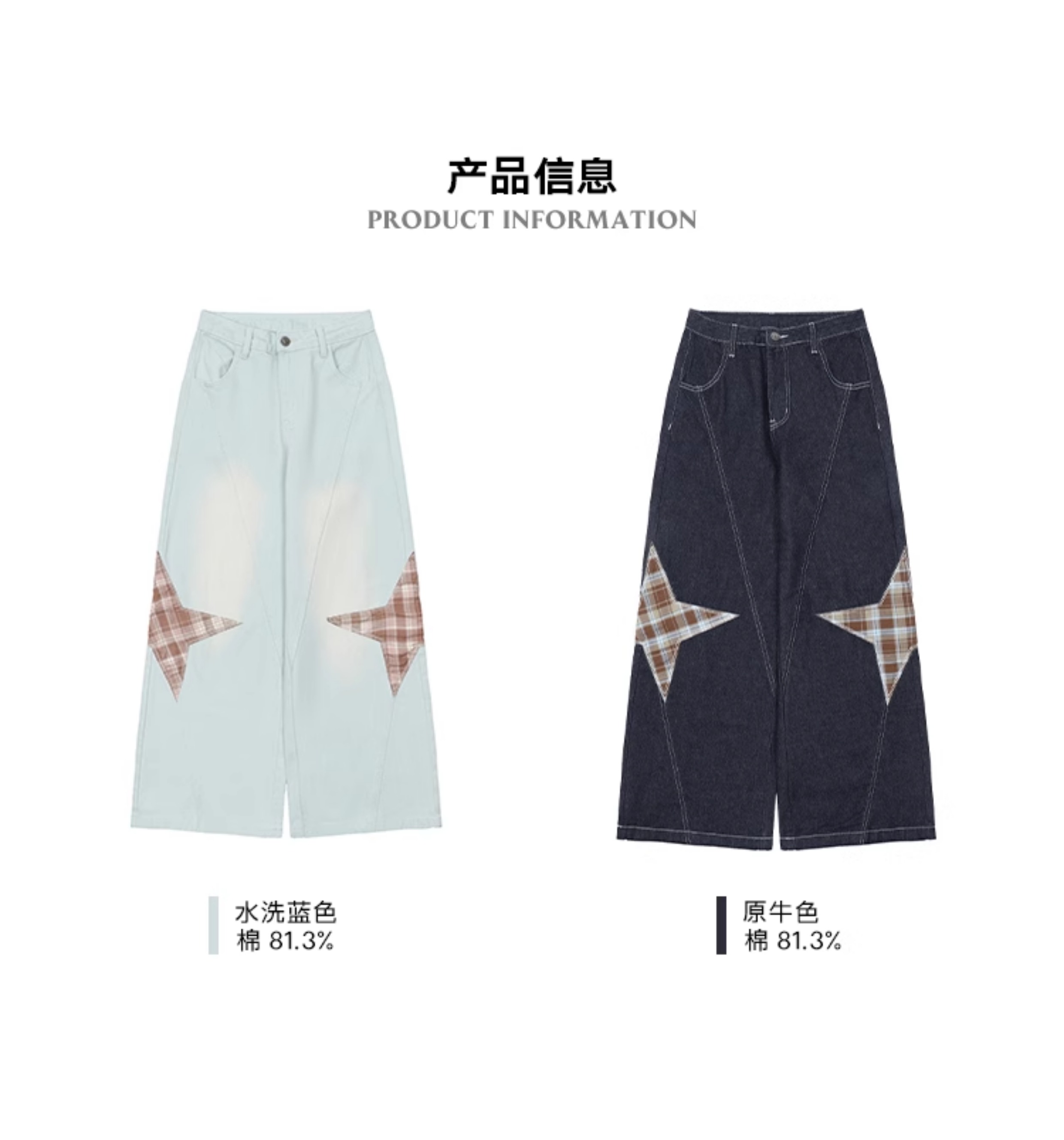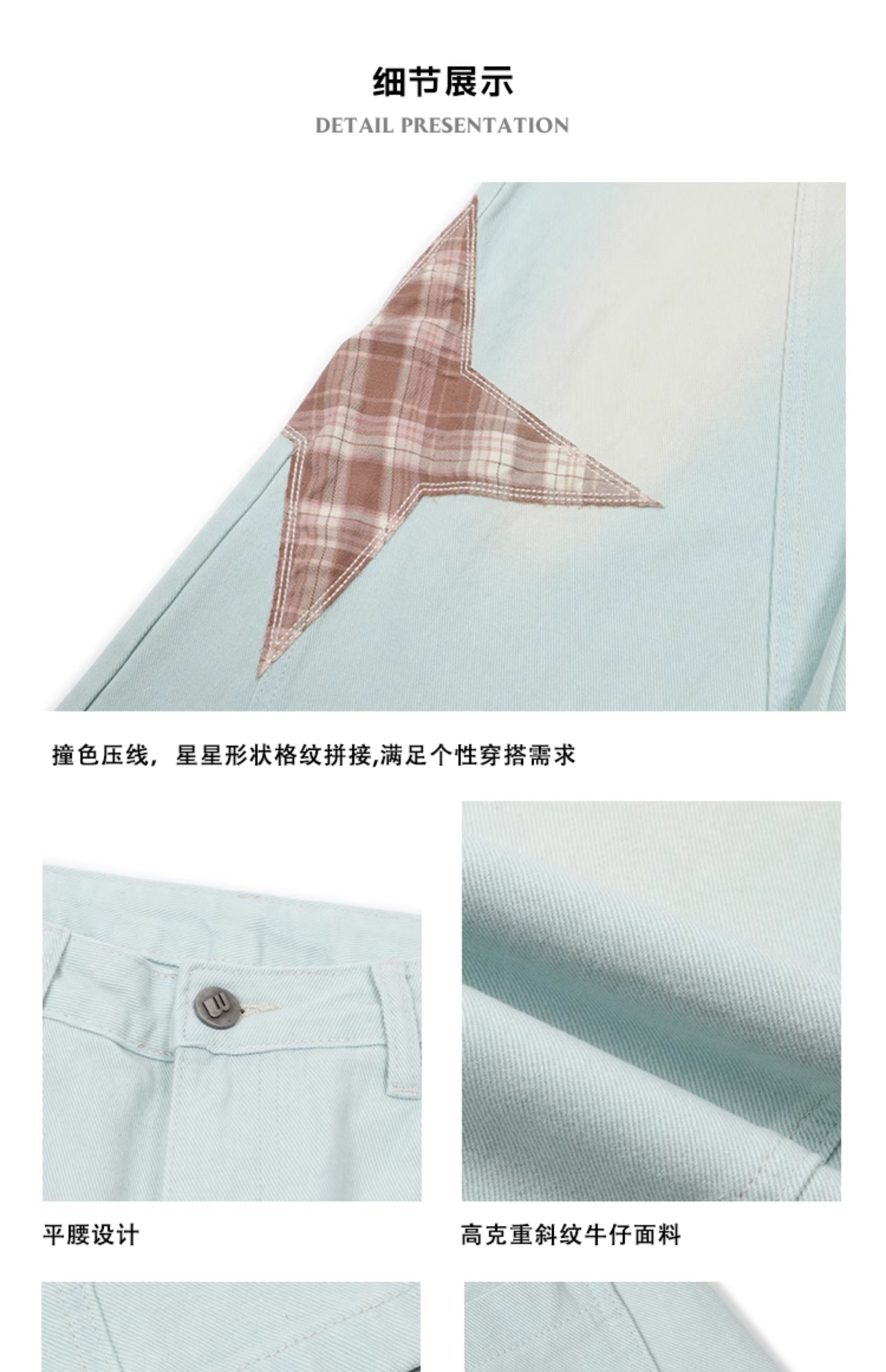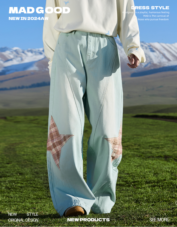 马得工地/ MDGDCK244482/星星贴布分割牛仔裤