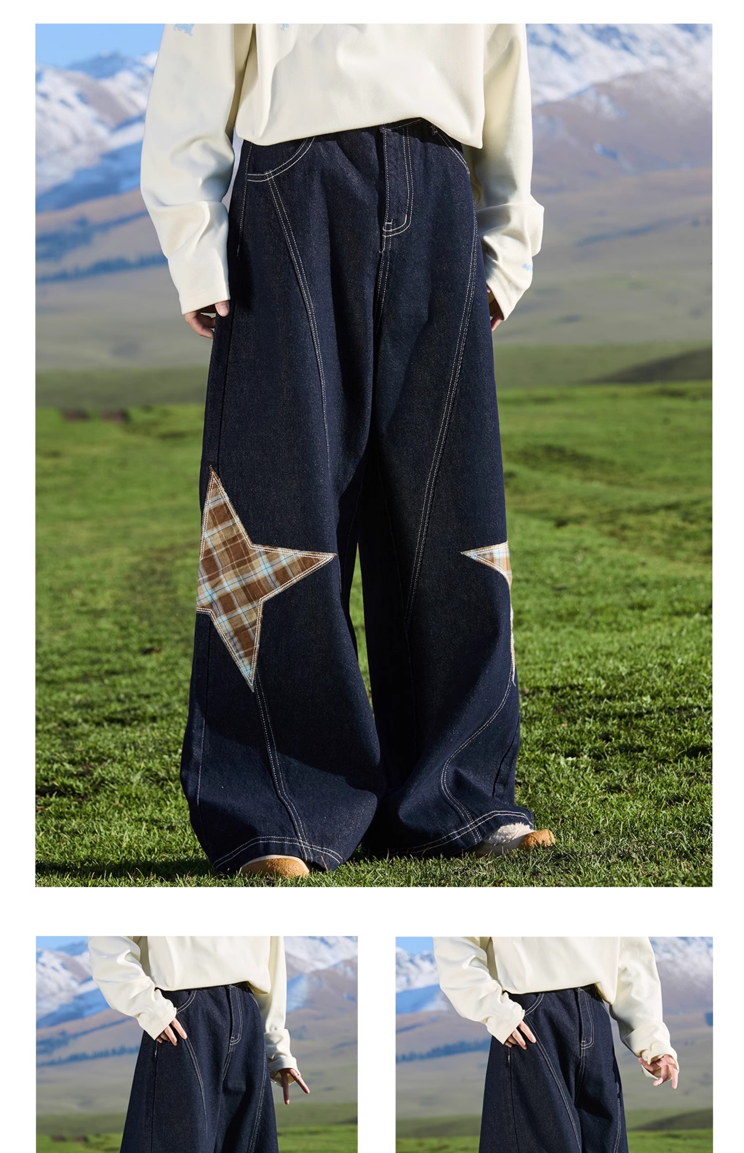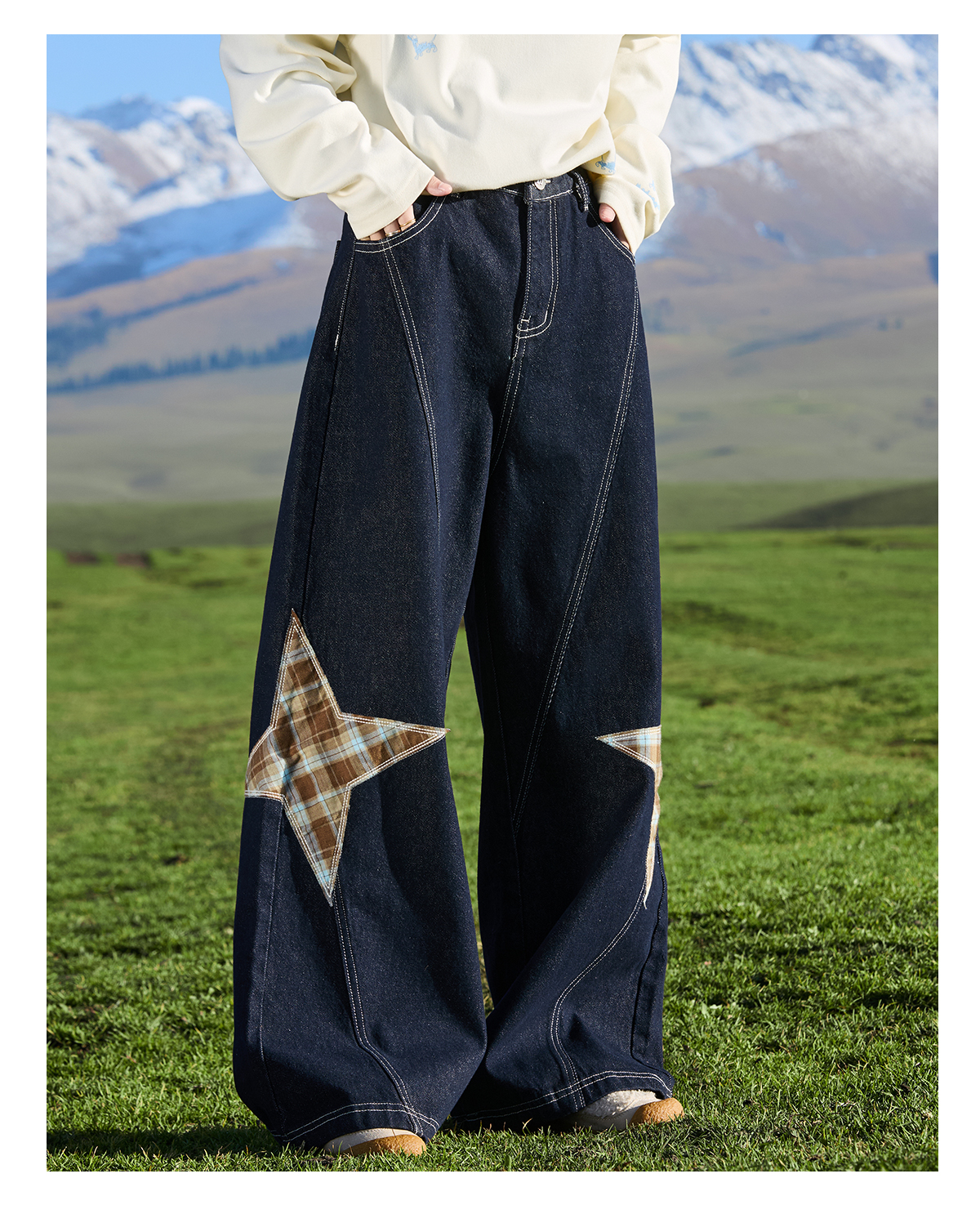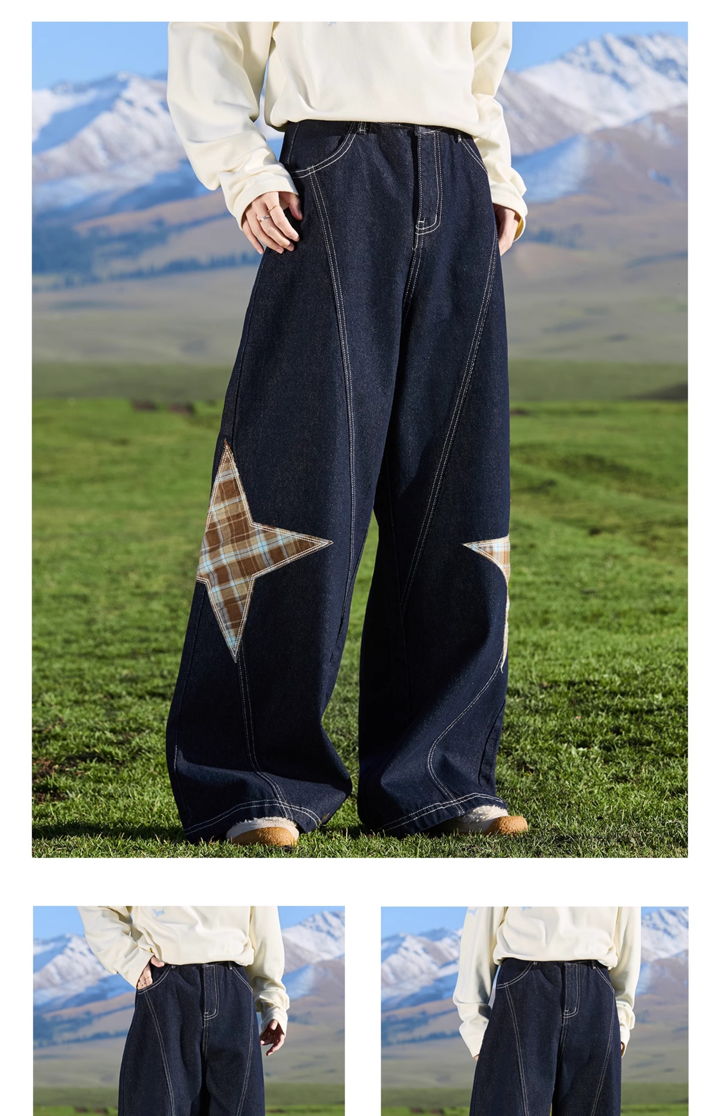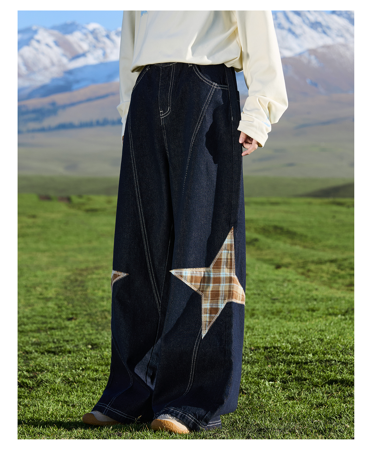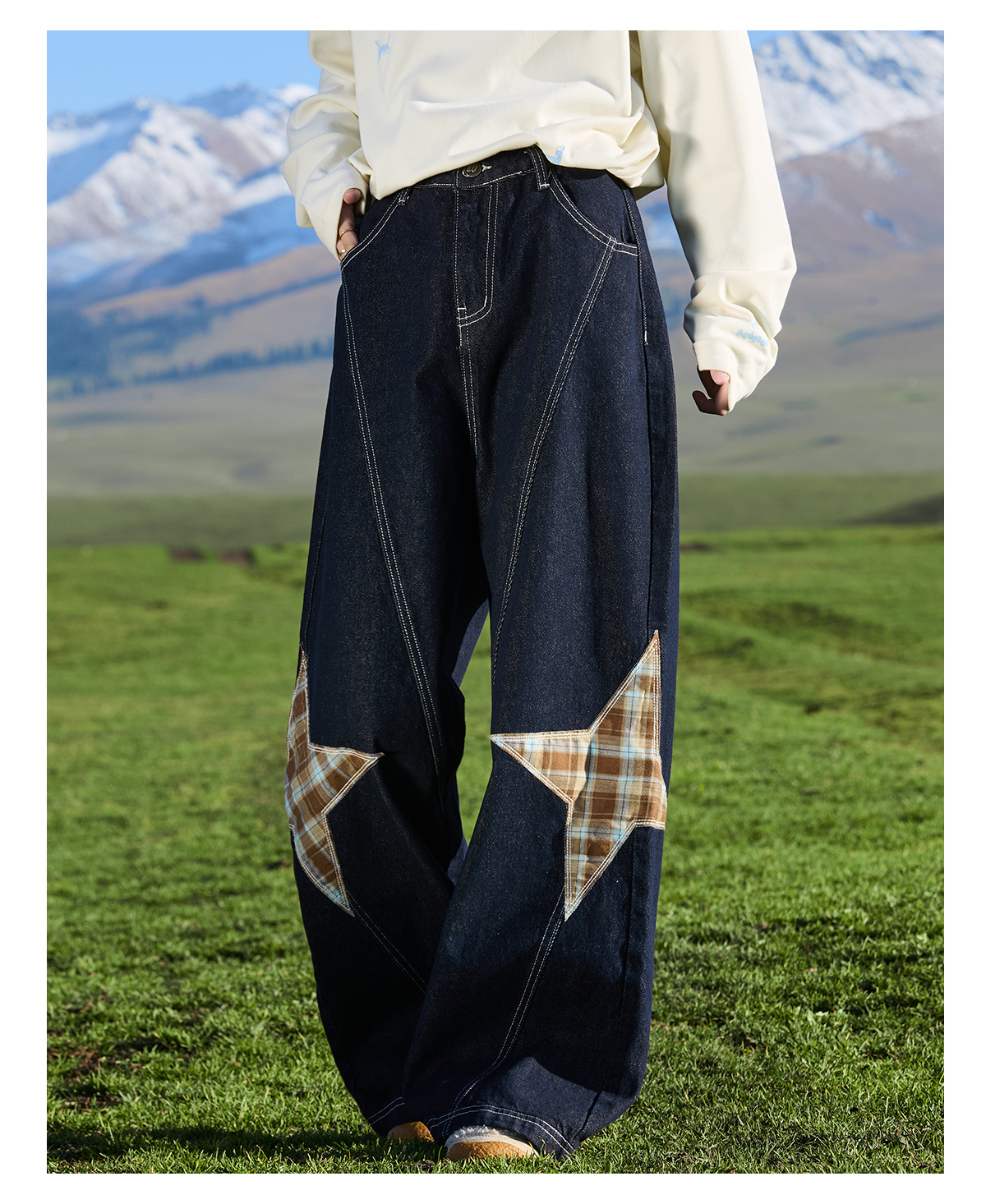 马得工地/ MDGDCK244482/星星贴布分割牛仔裤