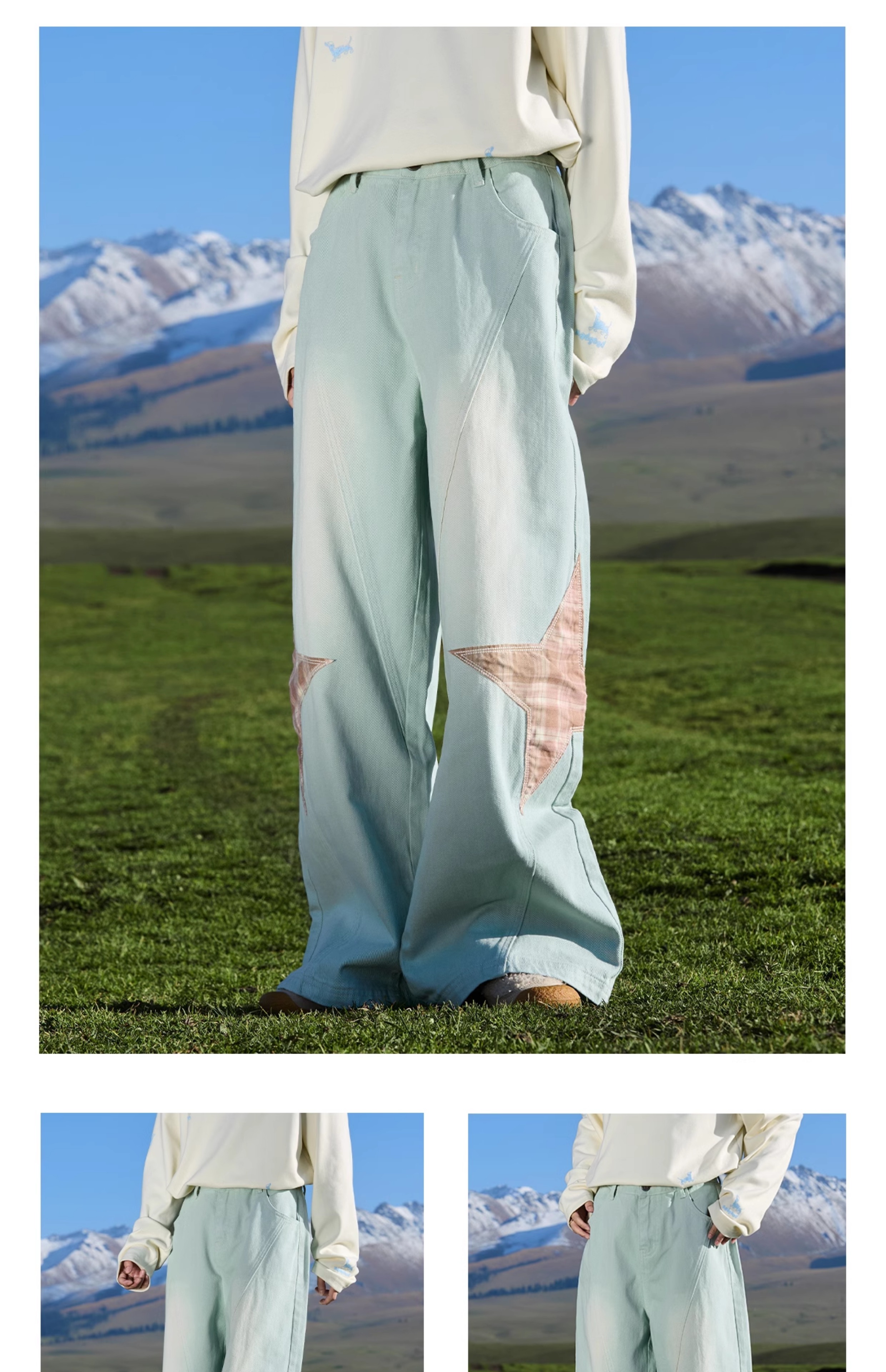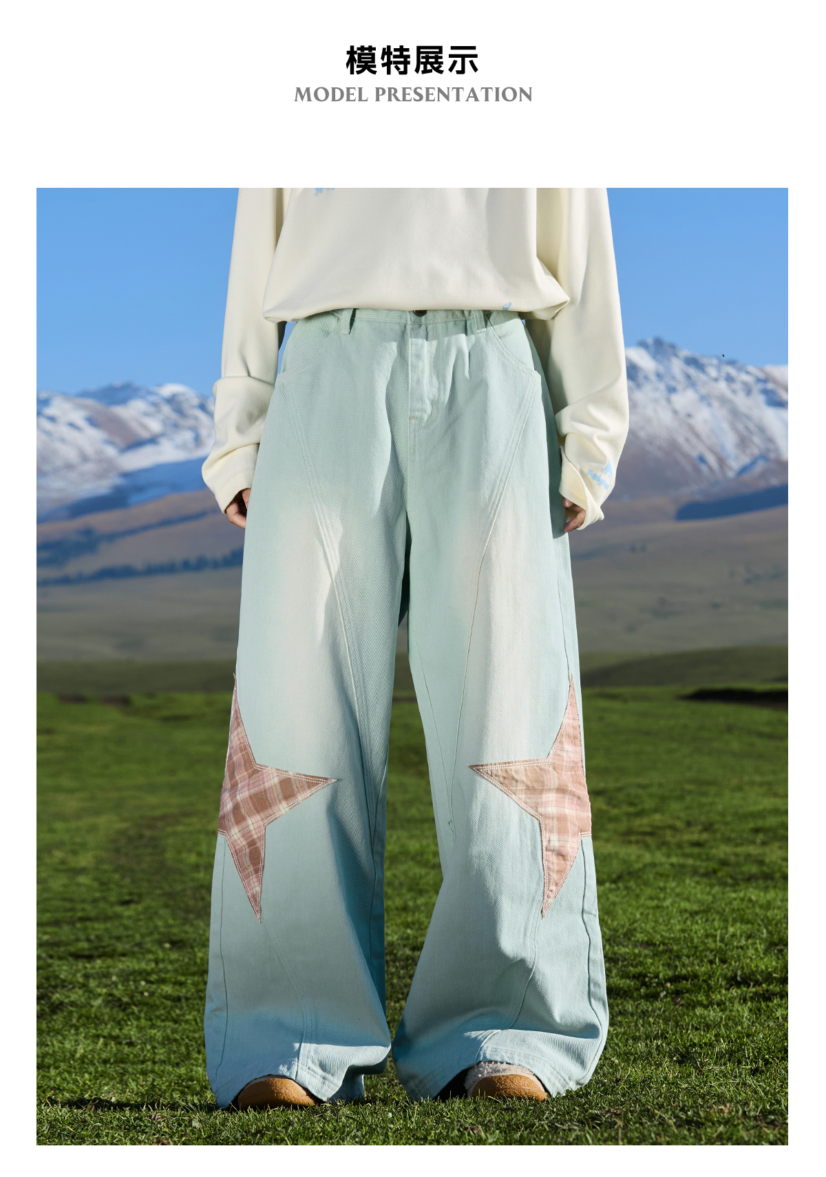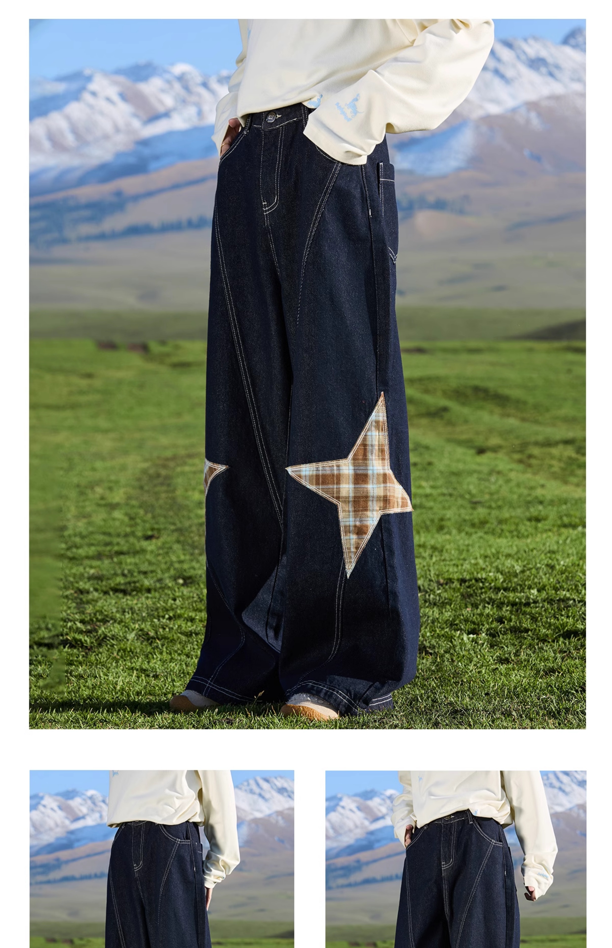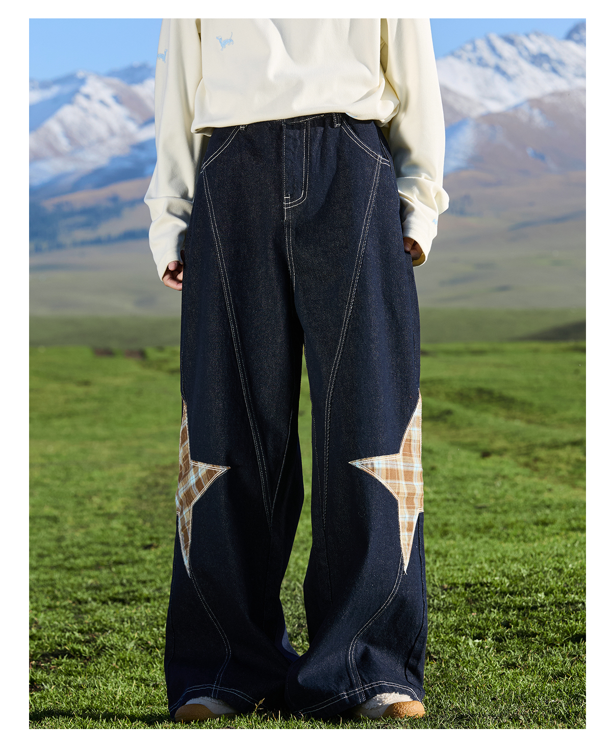 马得工地/ MDGDCK244482/星星贴布分割牛仔裤