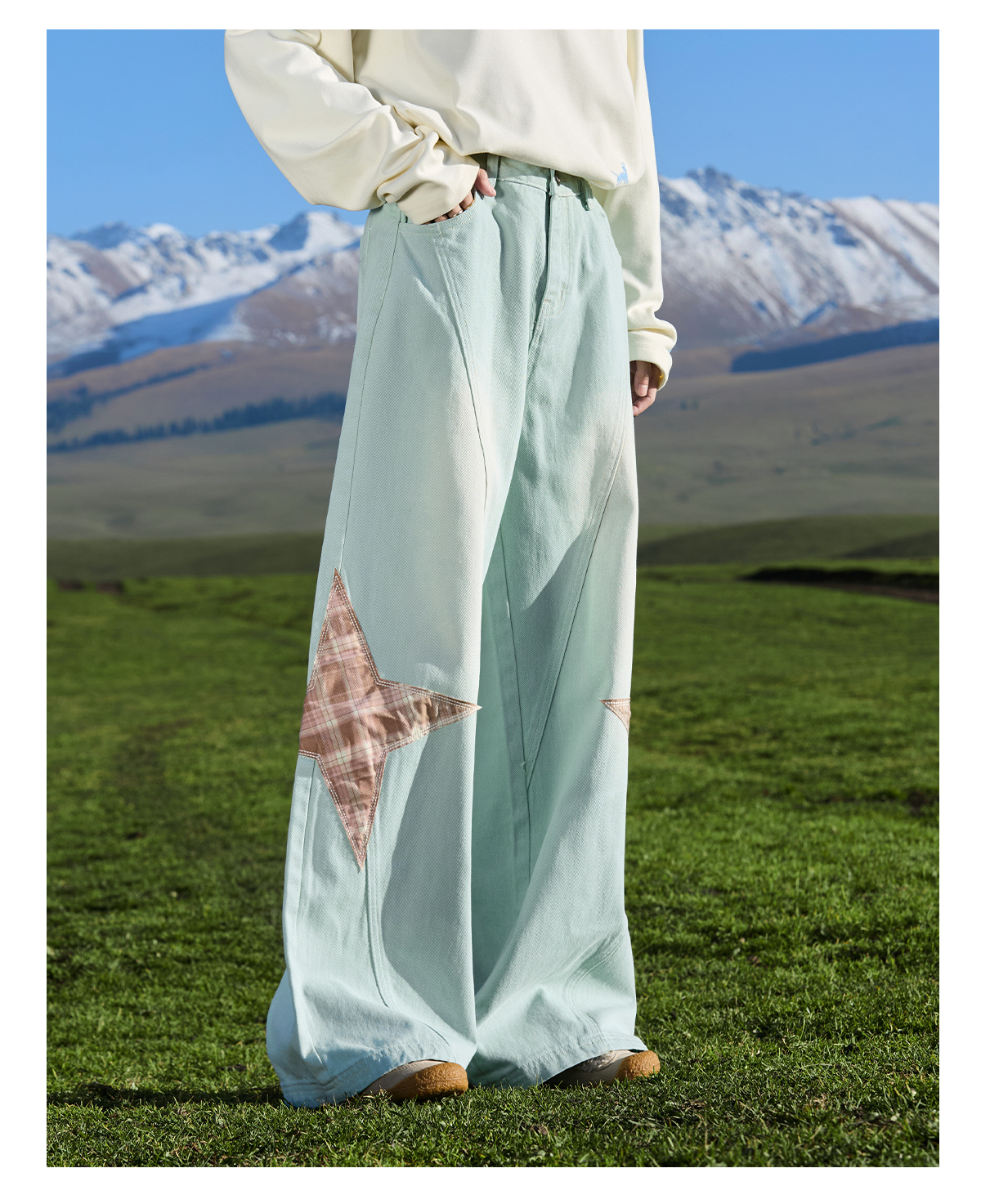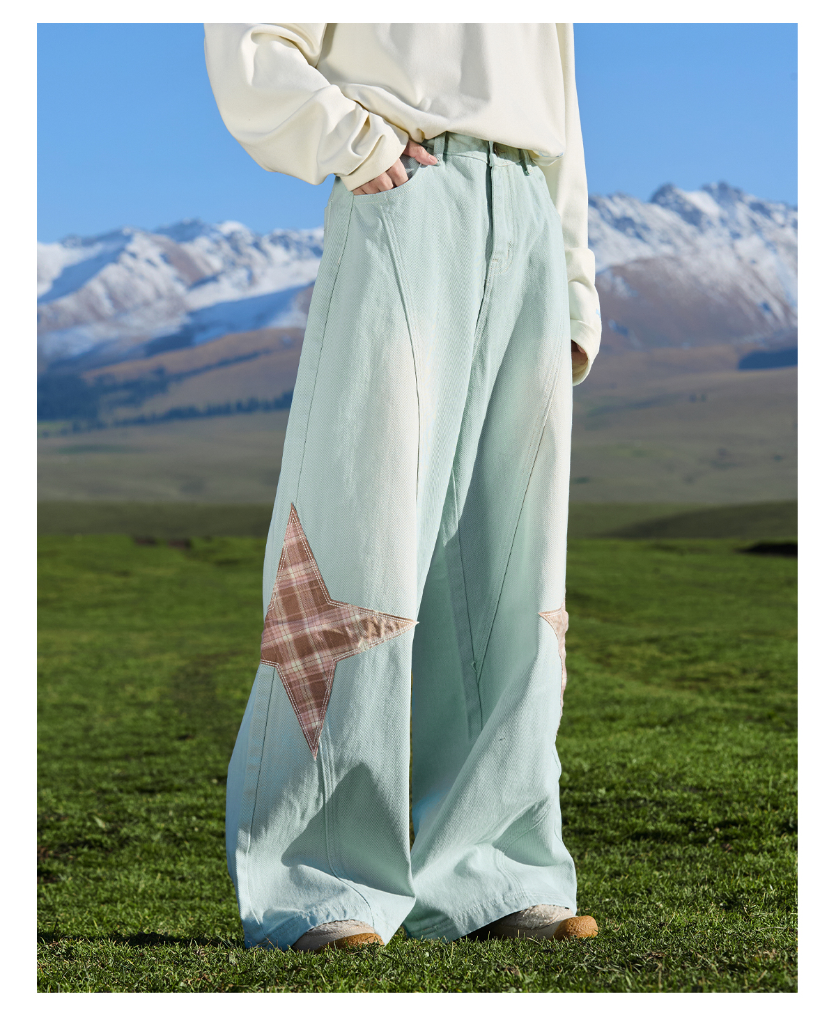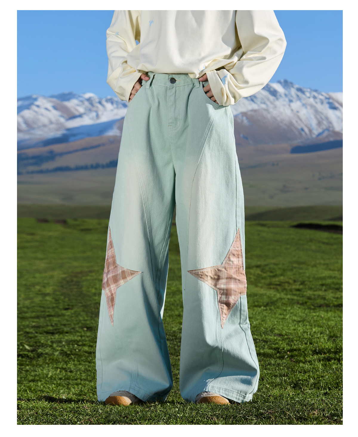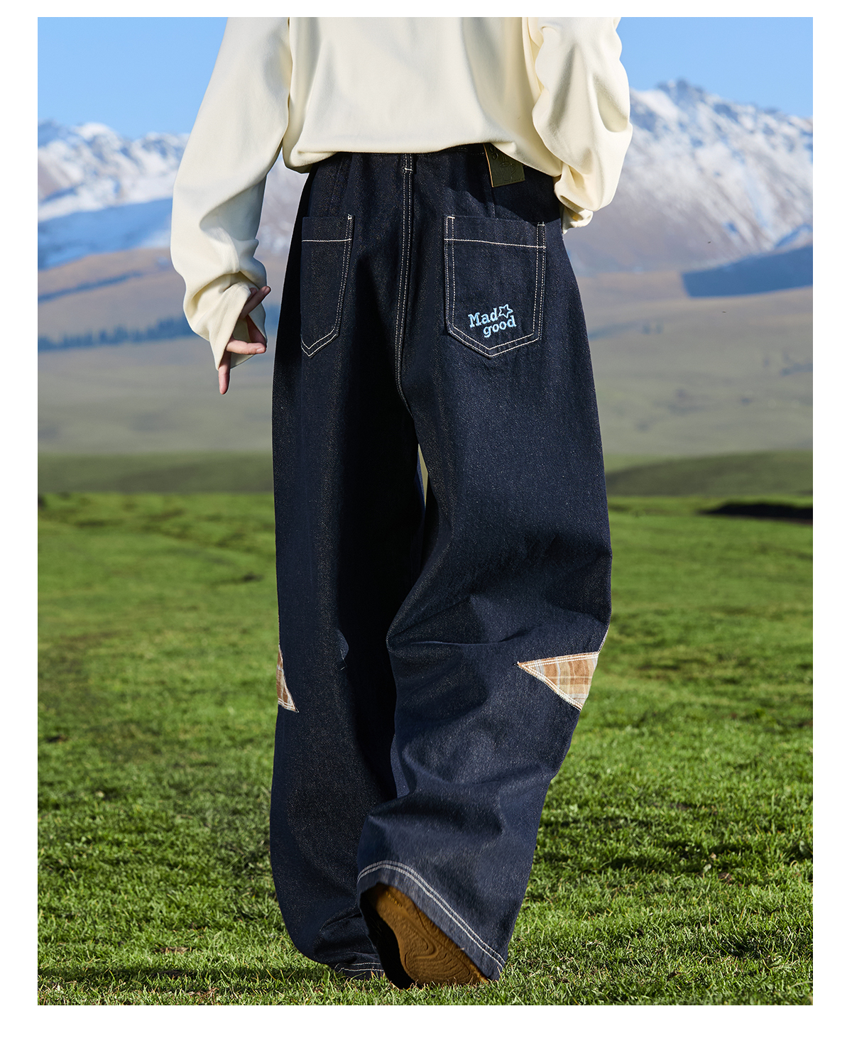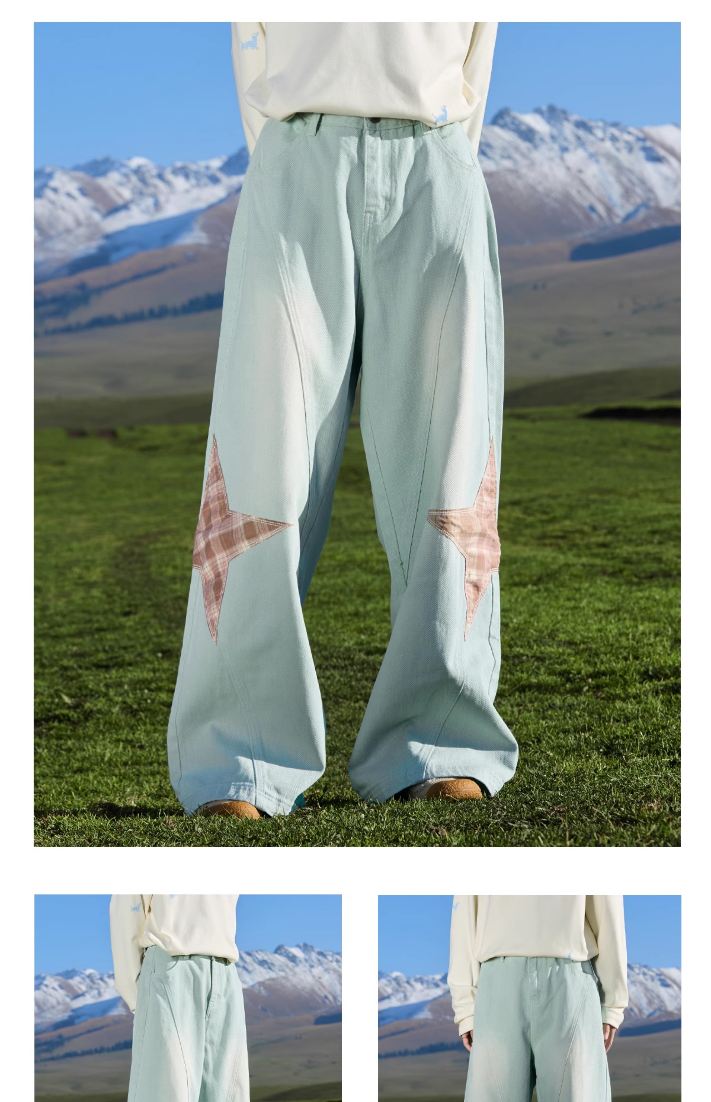 马得工地/ MDGDCK244482/星星贴布分割牛仔裤