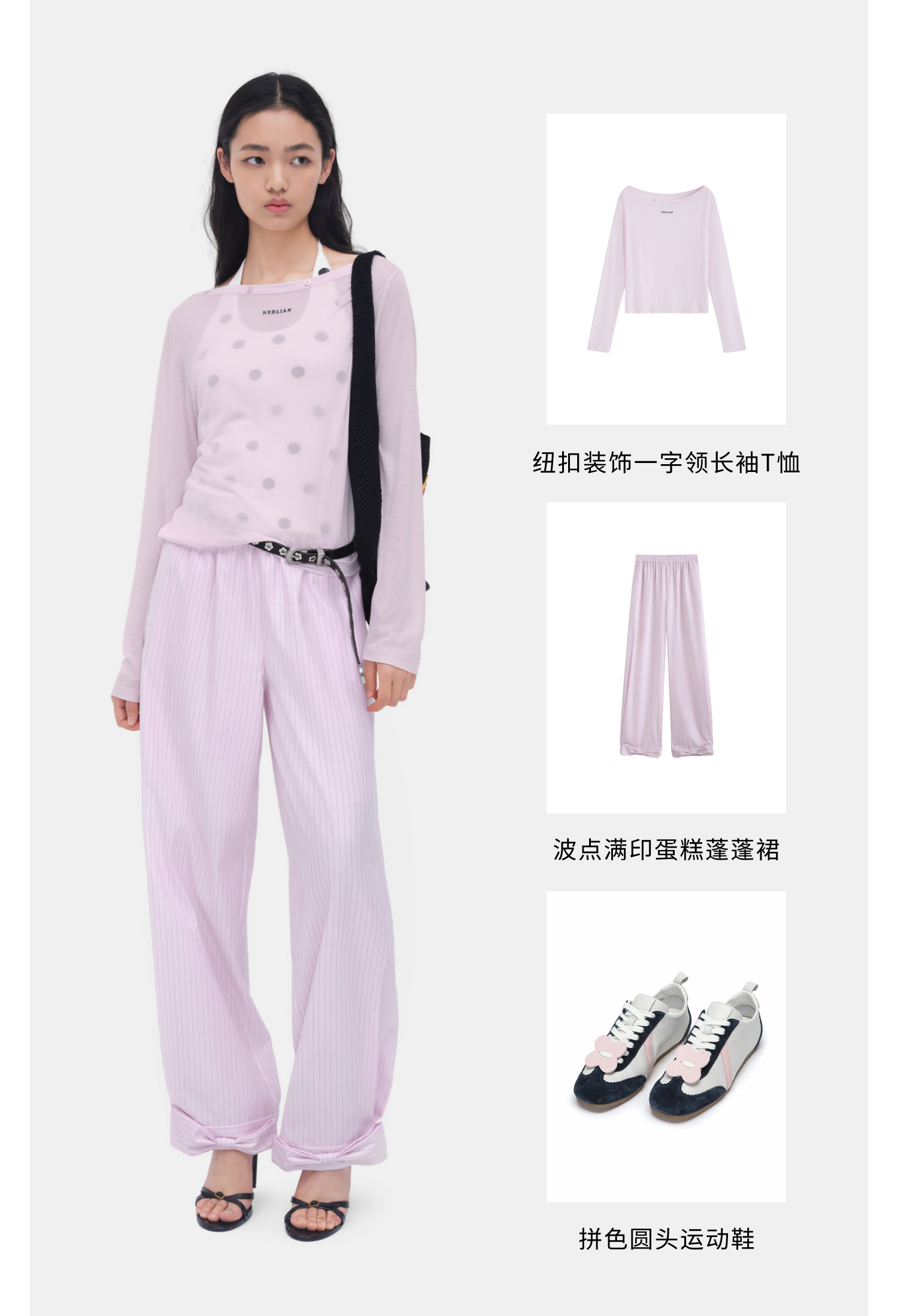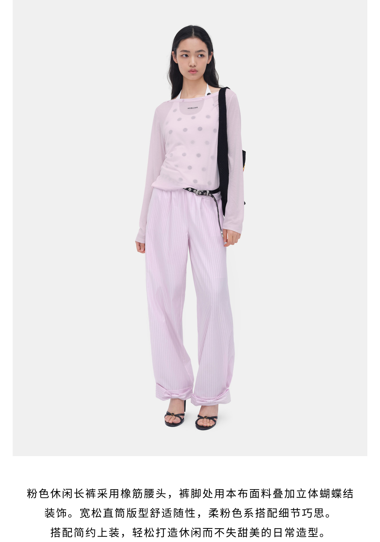 HERLIAN 2026年春夏新品裤脚立体蝴蝶结设计女士宽松直筒休闲长裤