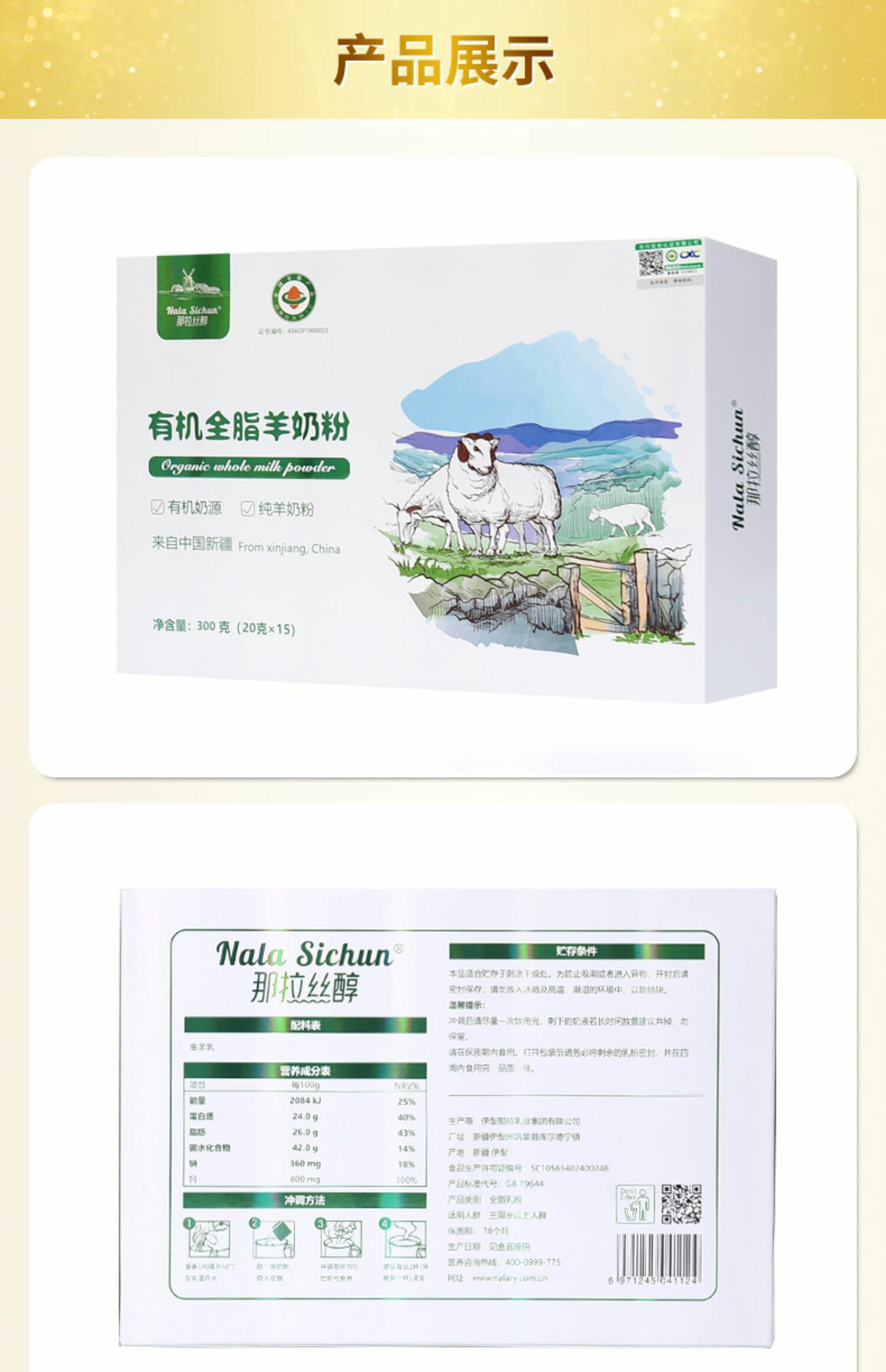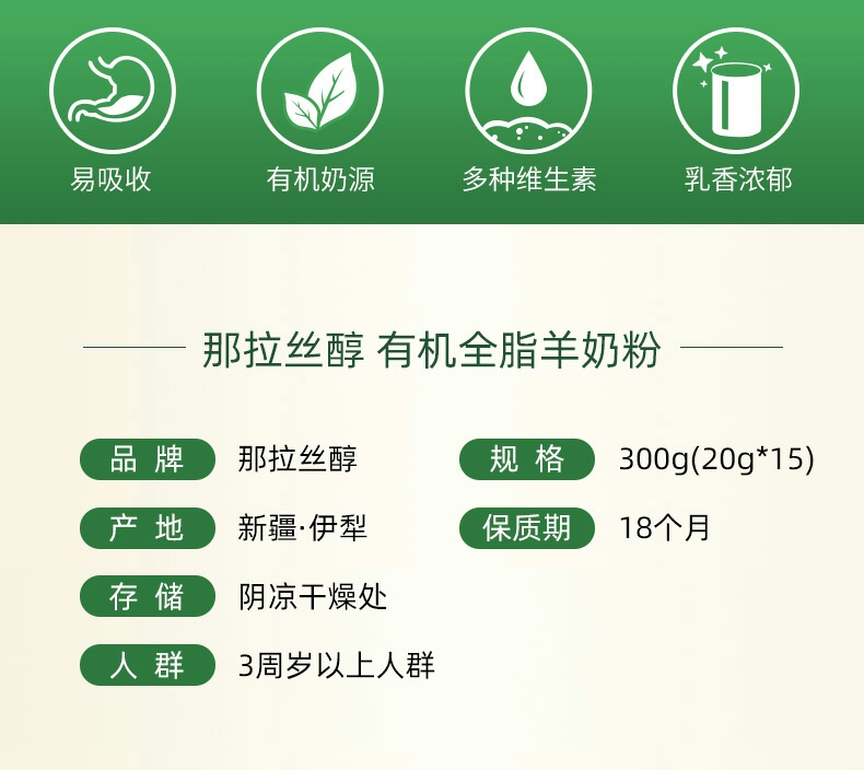 新疆那拉丝醇有机羊奶粉300g/盒【那拉丝醇】