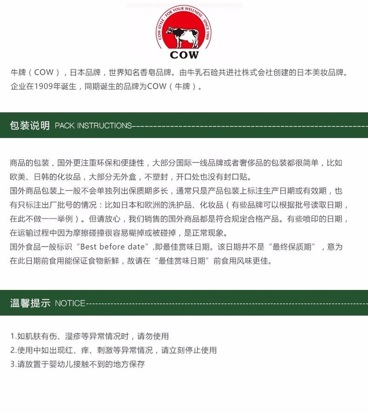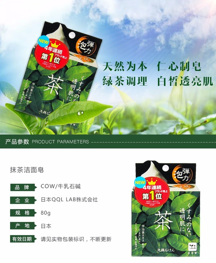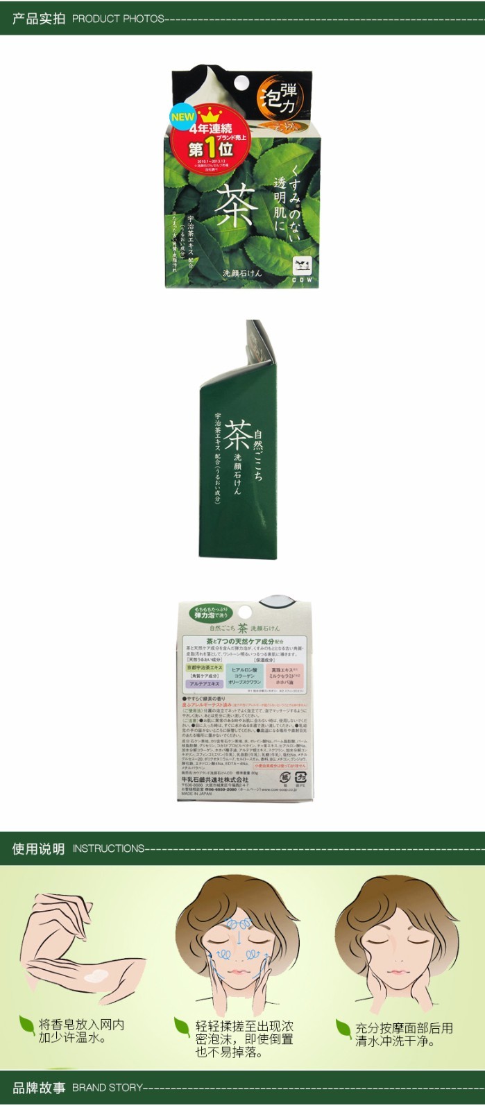 【保税仓】COW/牛乳 石碱抹茶洁面皂 80G