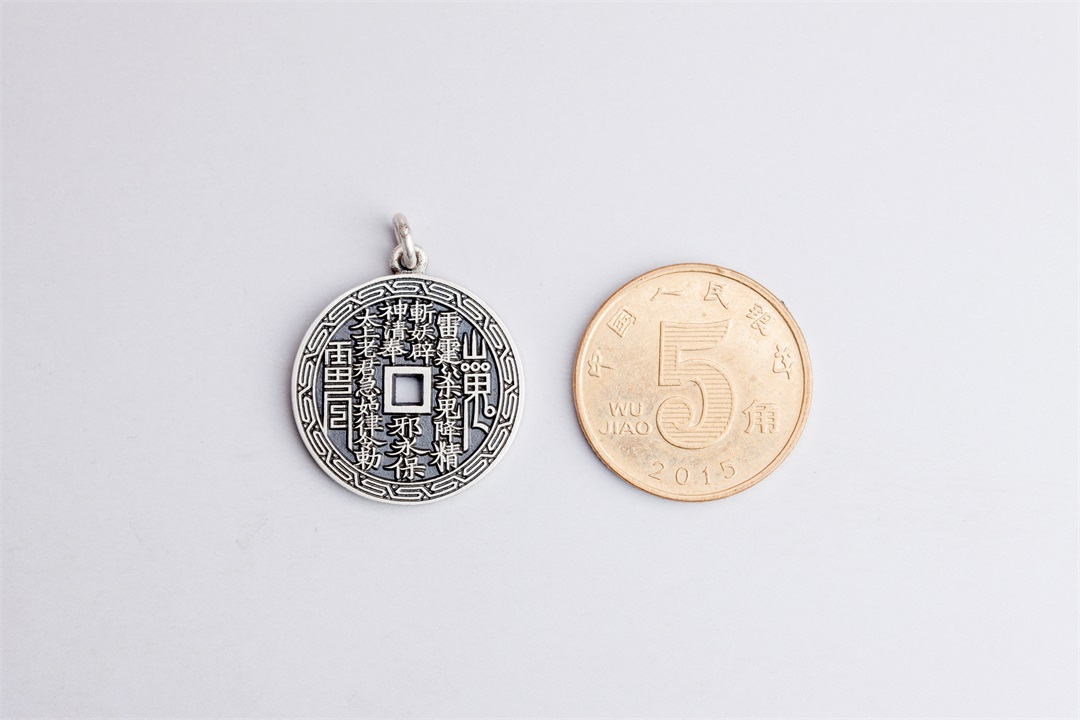 尺寸:直径约2毫米,厚约1.7毫米,钱币孔径约2.1毫米,穿绳孔径约2.7毫米,重约4克(手工作品有少许误差,请知晓)。