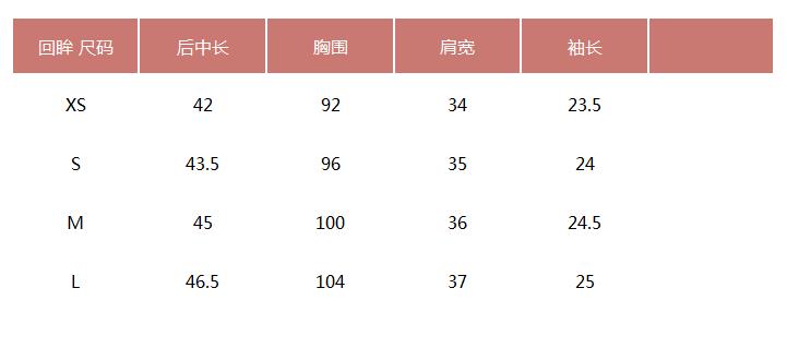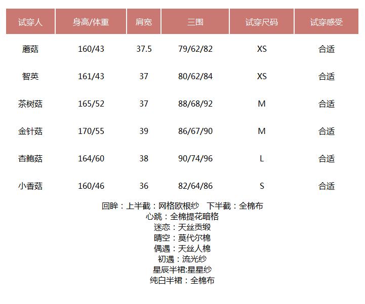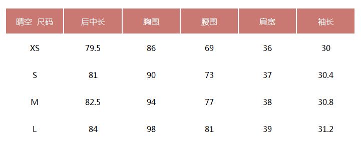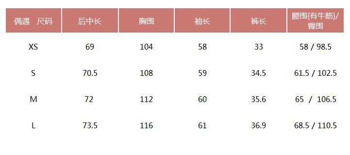 提醒:尺码是纯手工平铺测量,可能存在1-3CM的误差属于正常范围! 试穿表格,仅供参考!