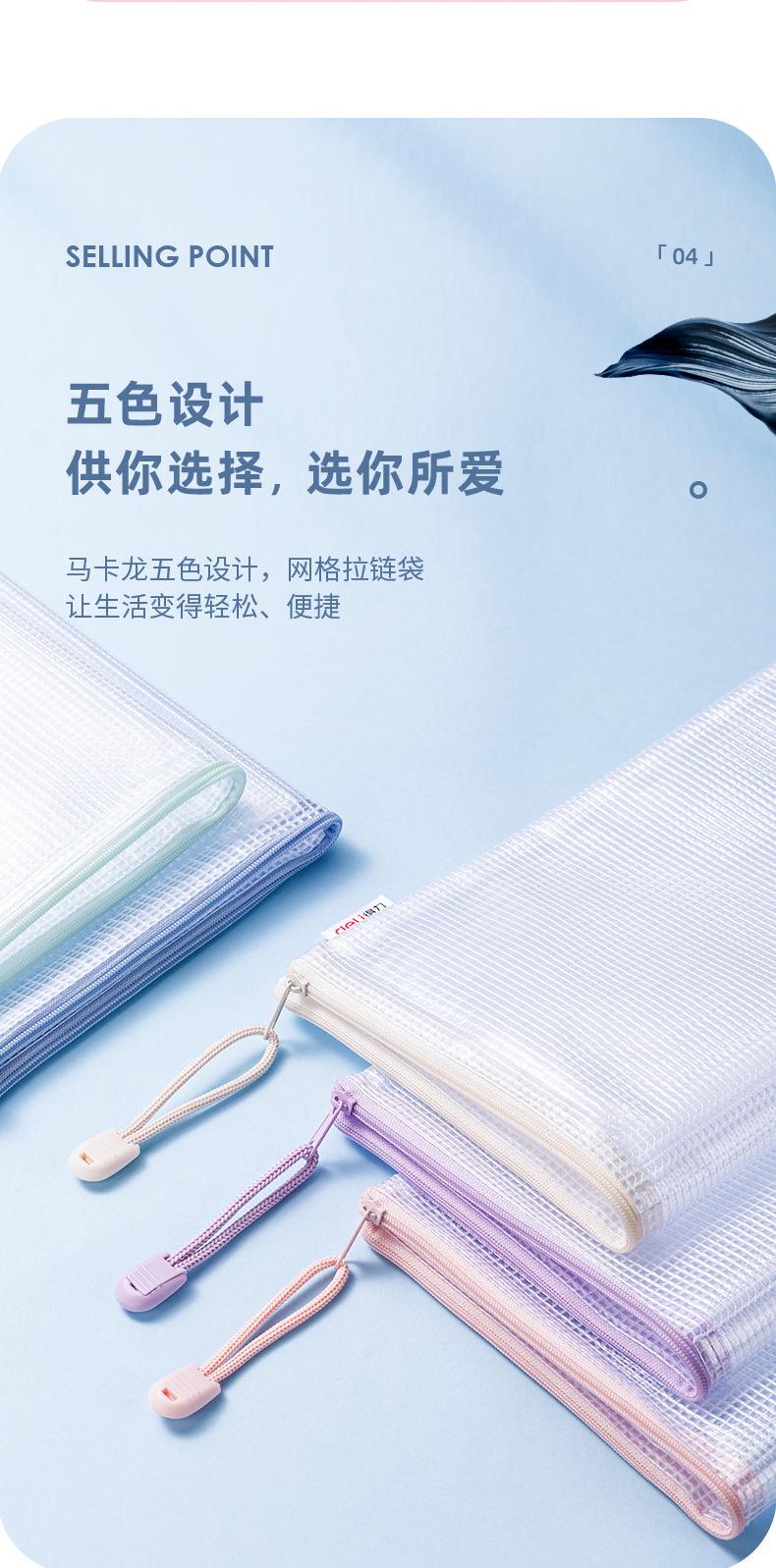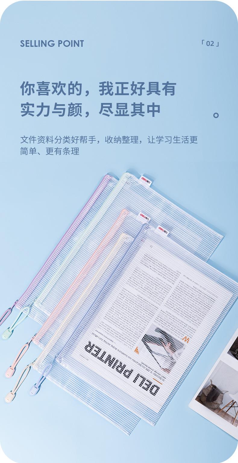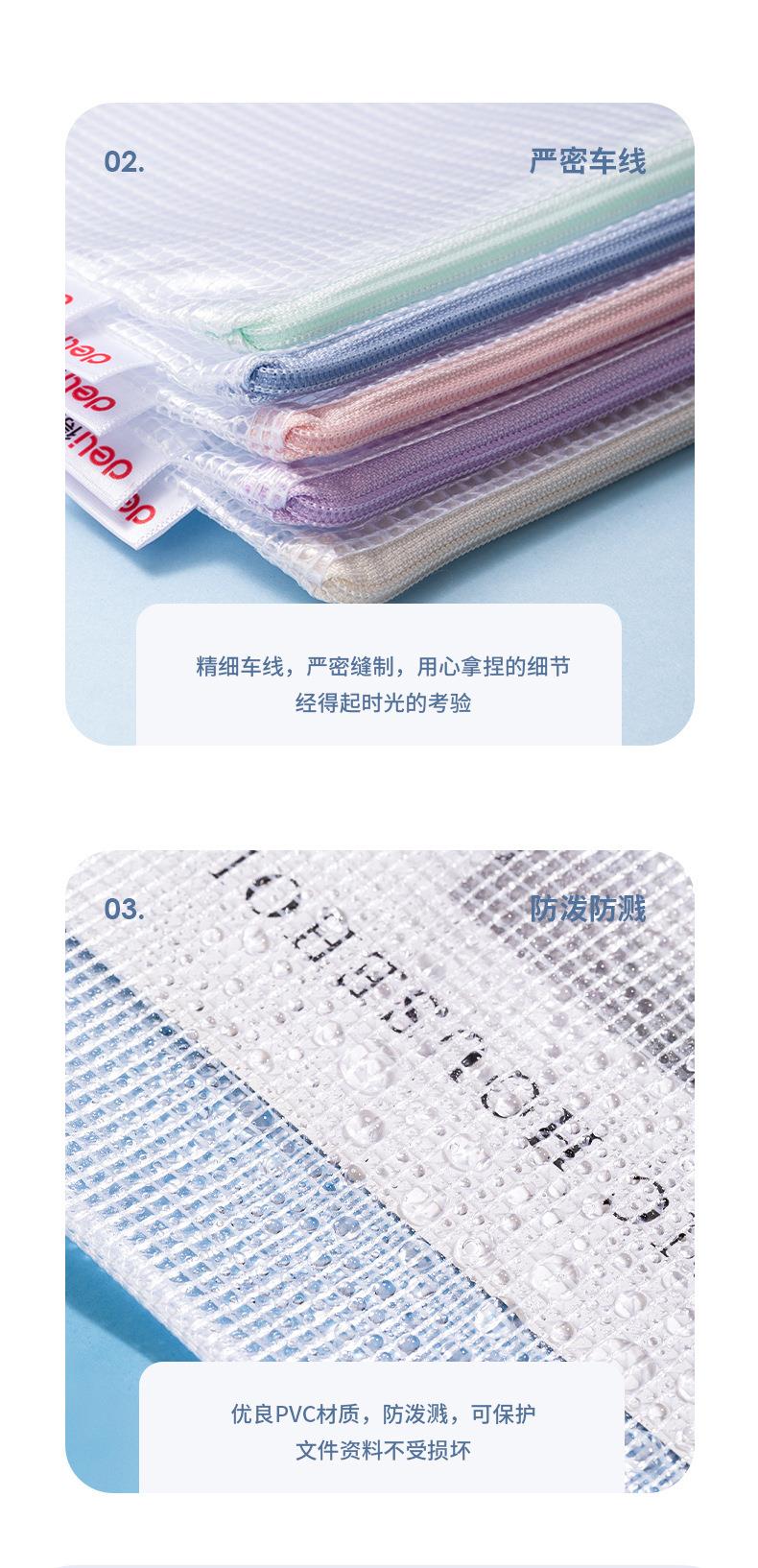 得力pvc网格拉链袋 a4透明5个装 试卷办公资料整理收纳文件袋批发
