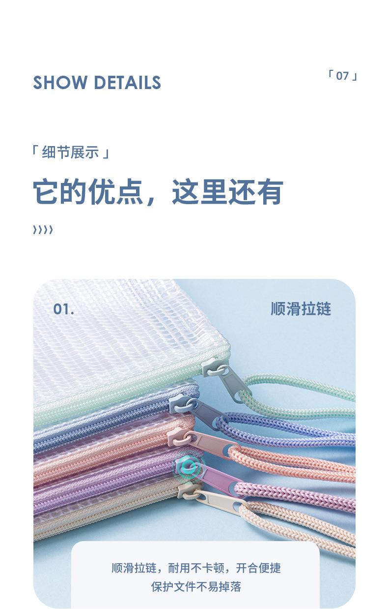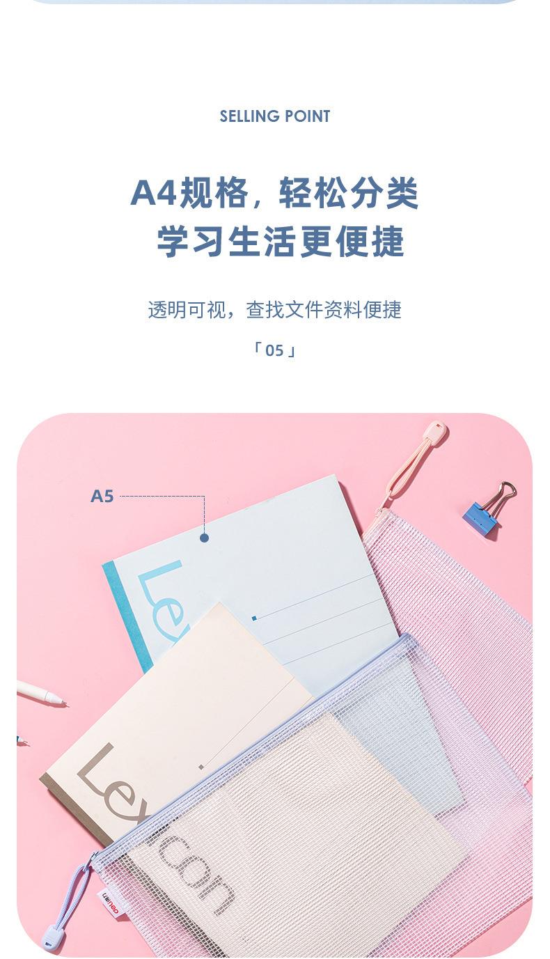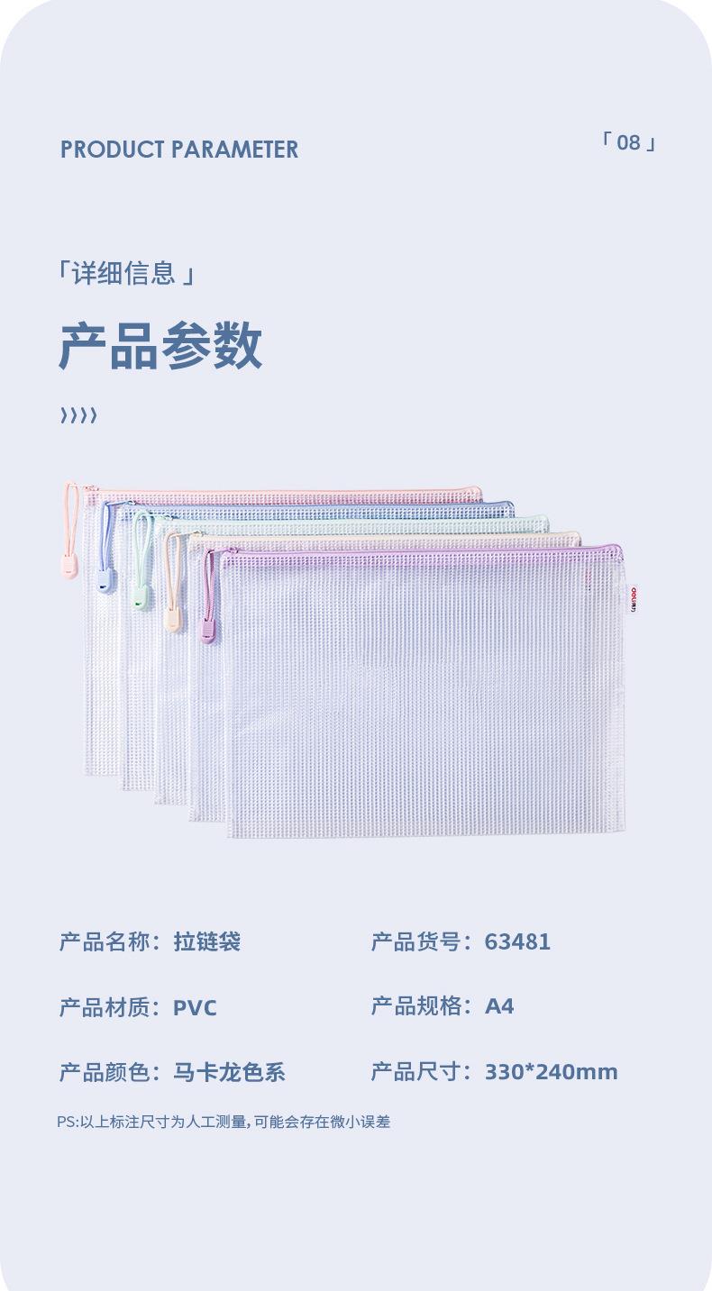得力pvc网格拉链袋 a4透明5个装 试卷办公资料整理收纳文件袋批发
