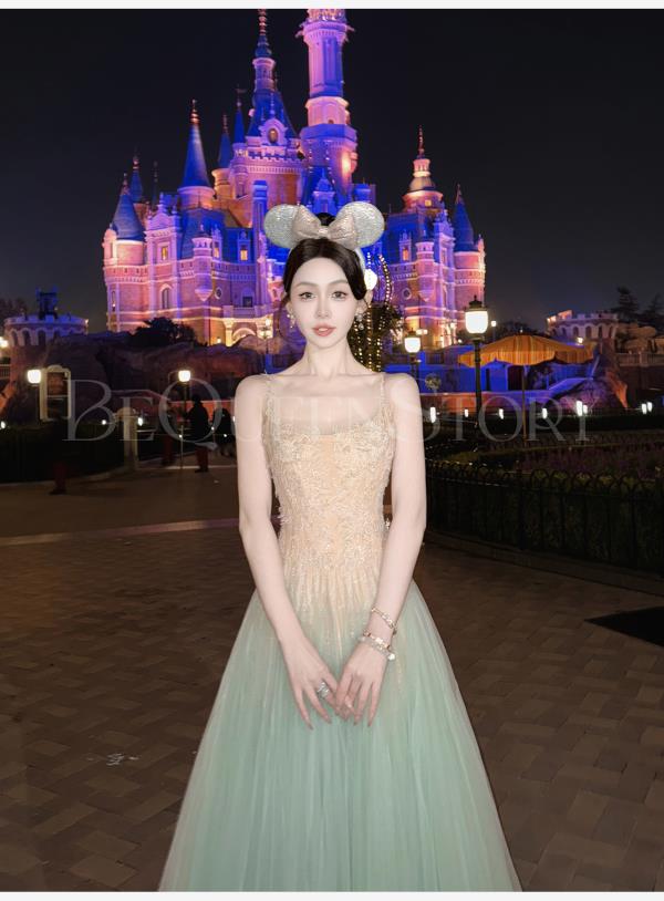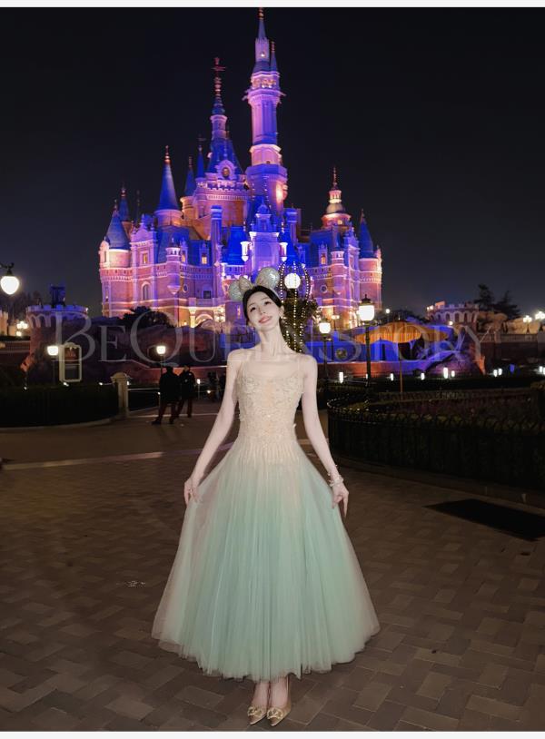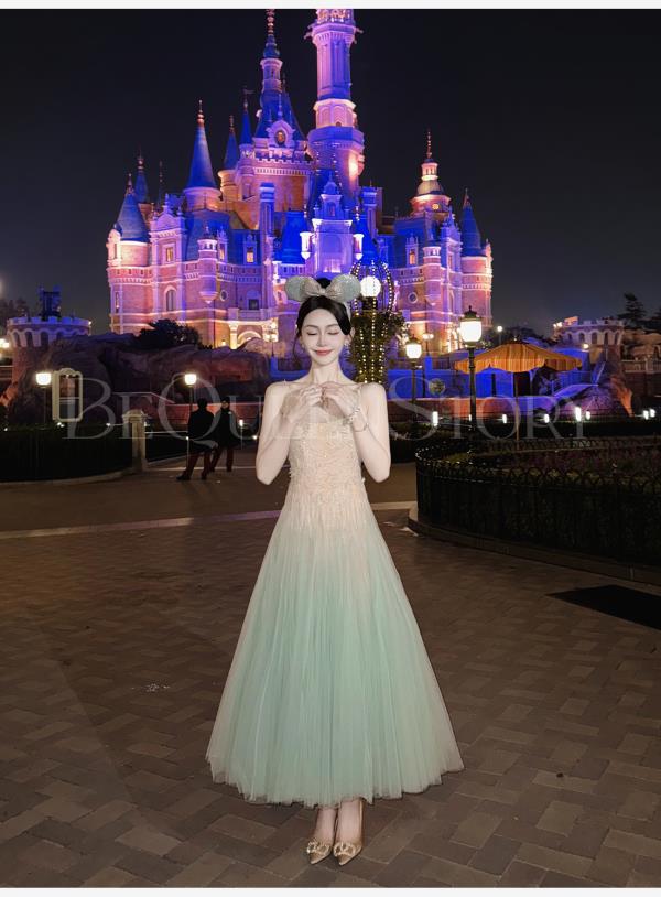 【孤品样衣,不退不换】【林间仙境】早春重工高定薄荷渐变色蕾丝花层叠吊带连衣裙