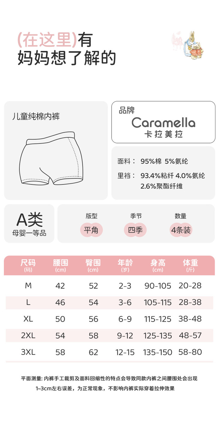 ⁴【比得兔联名儿童青少年平角内裤】尺码偏小 建议拍大一码 110码-170码可选YC04--CR-BDT