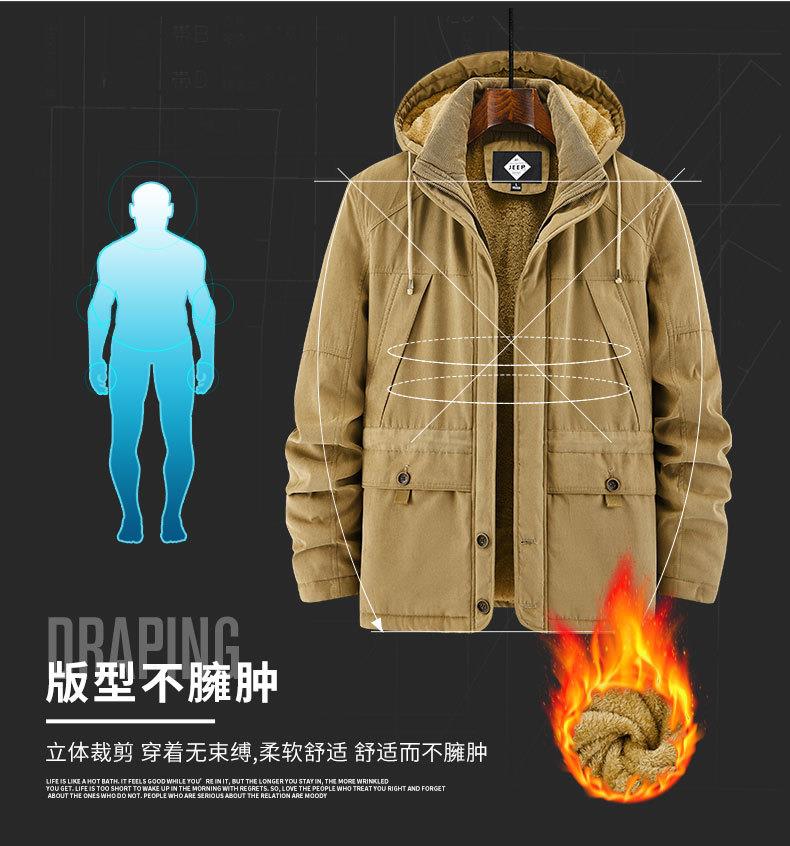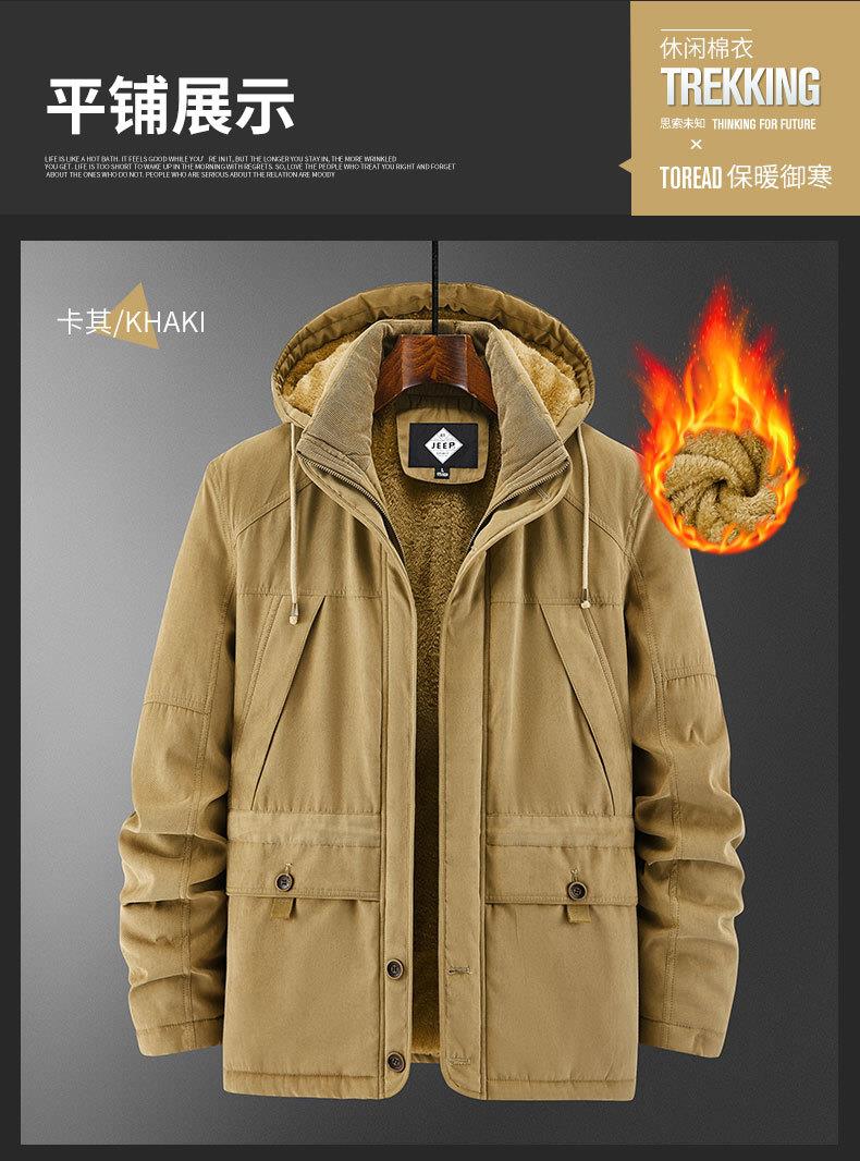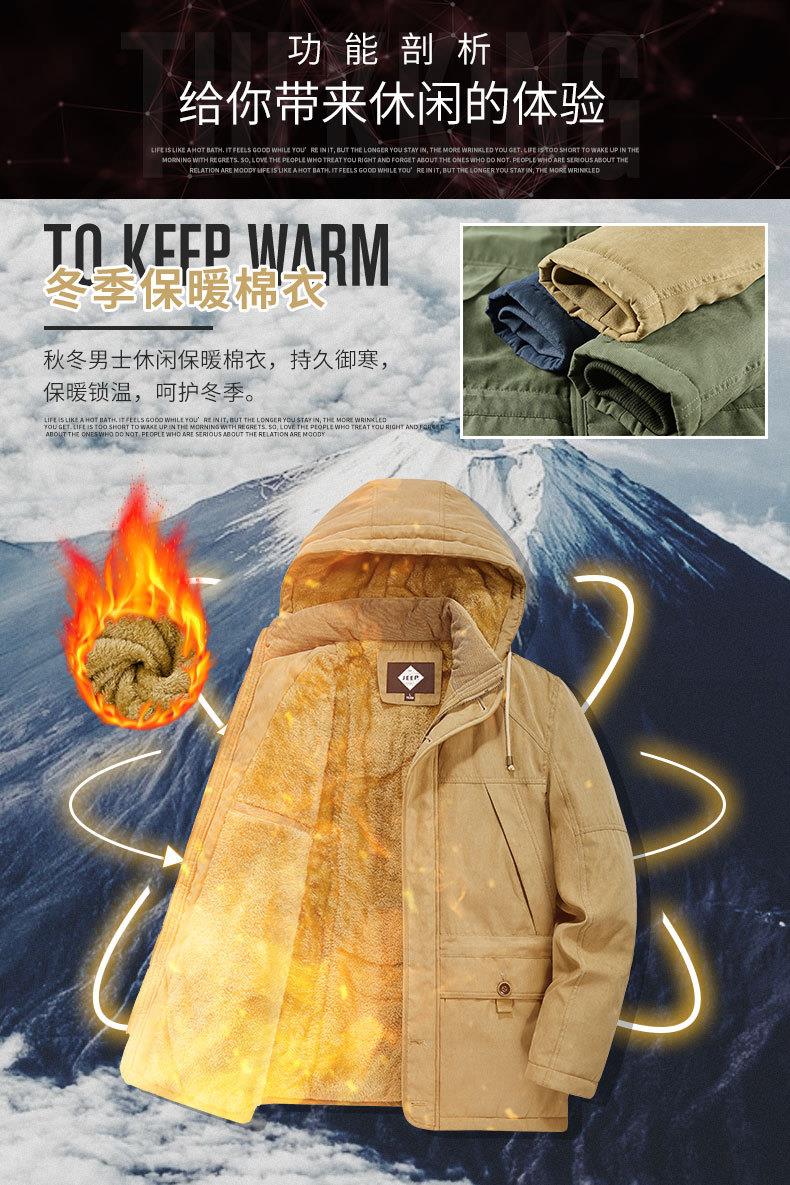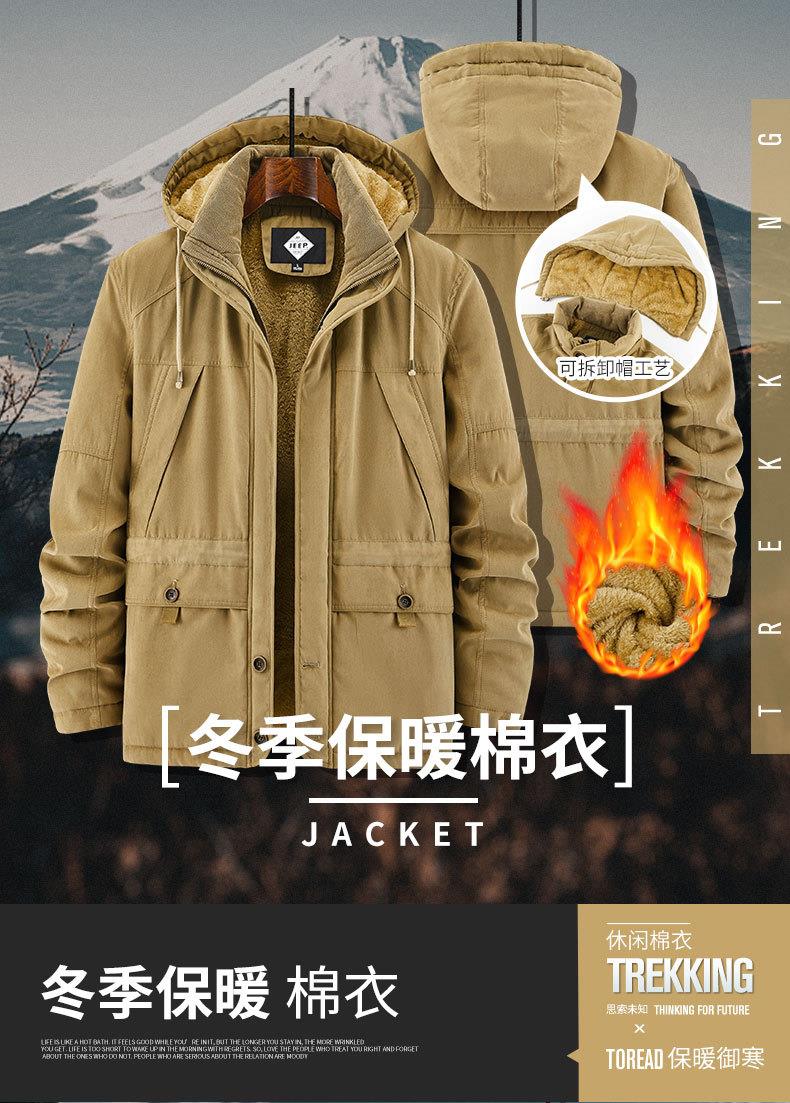 JEEP SPIRIT保暖棉衣男士外套可拆卸帽加绒加厚纯棉衣 JC7445