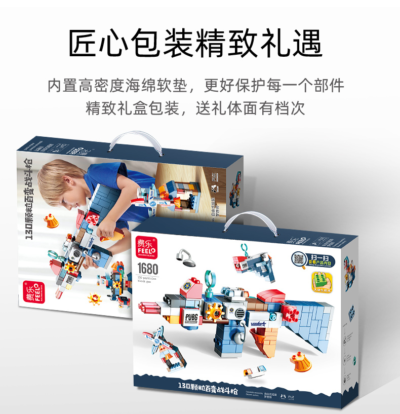 【创意拼搭 百变战斗枪】费乐儿童百变创意拼插模型积木枪玩具 儿童创意拼装拼插玩具