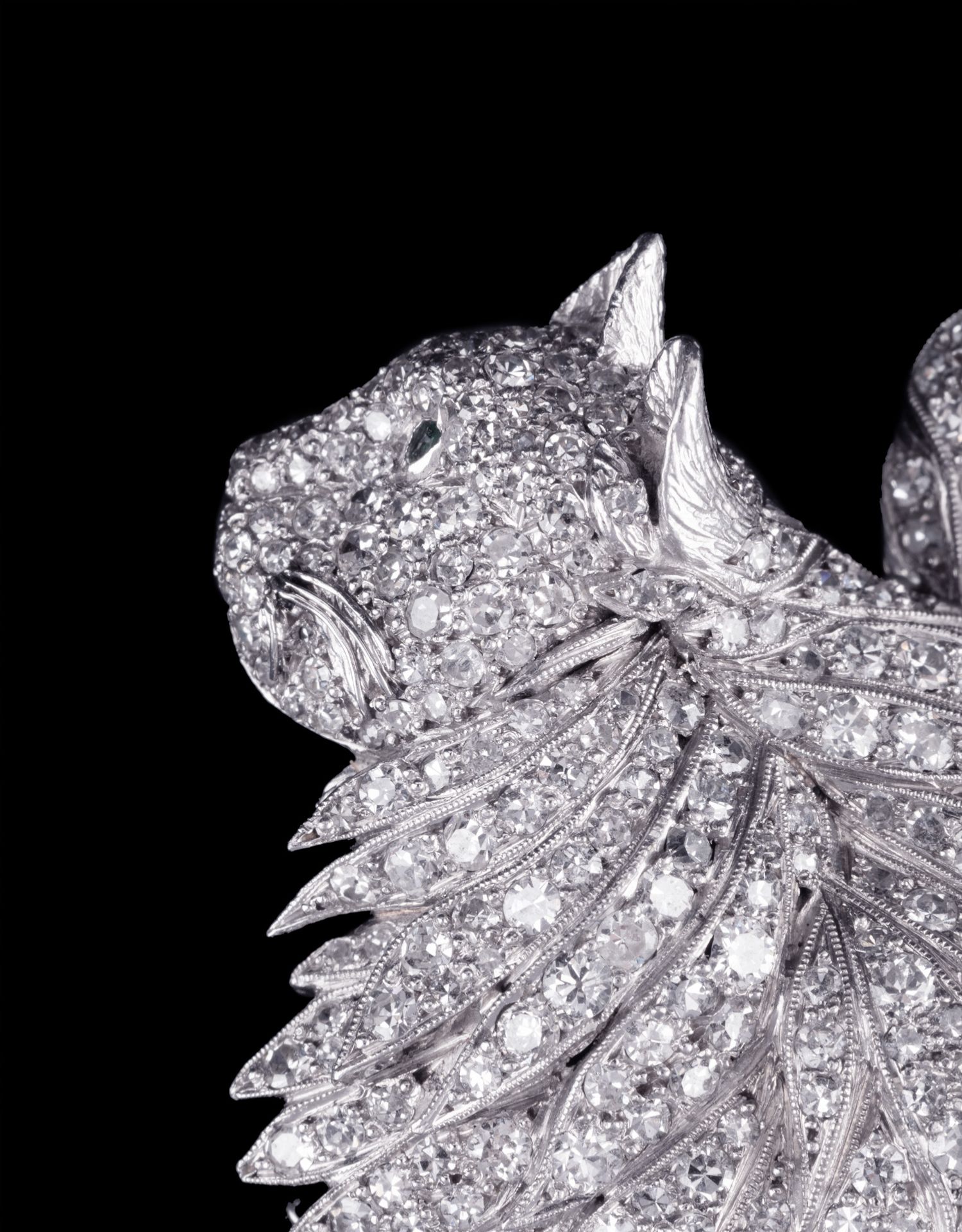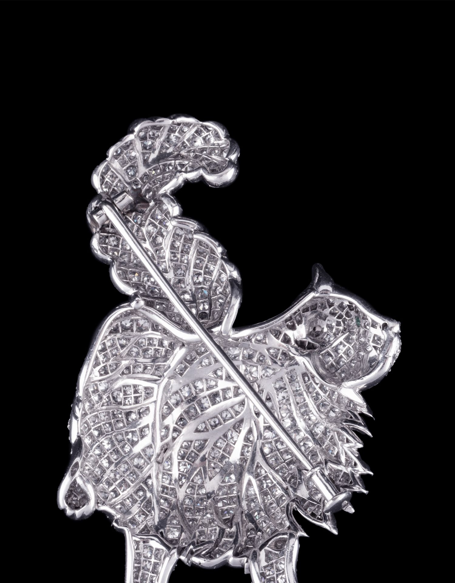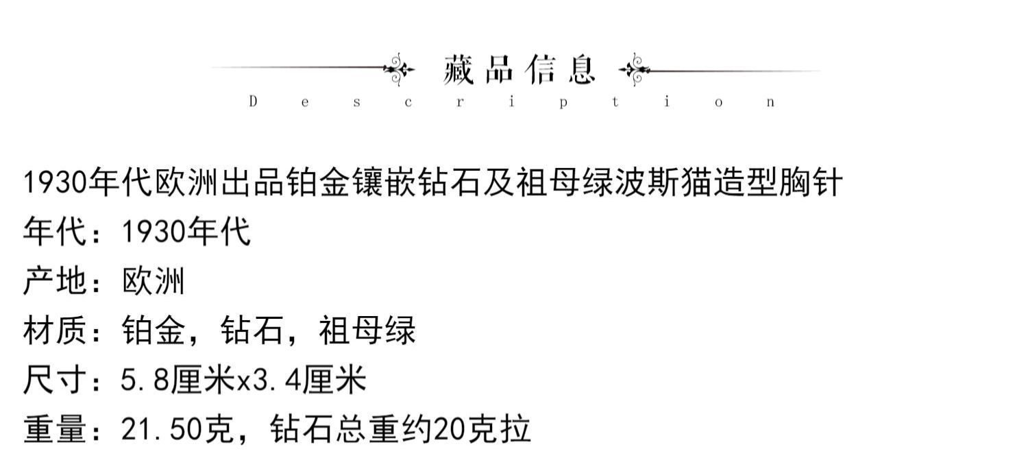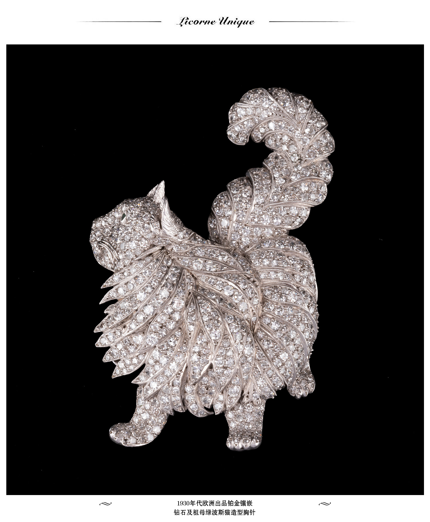独角鹿西洋古董珠宝首饰欧洲铂金镶嵌钻石祖母绿波斯猫造型胸针