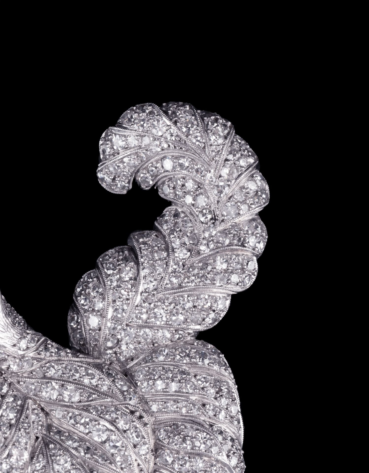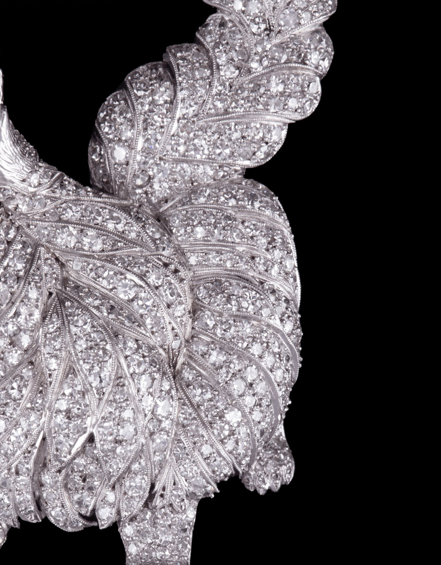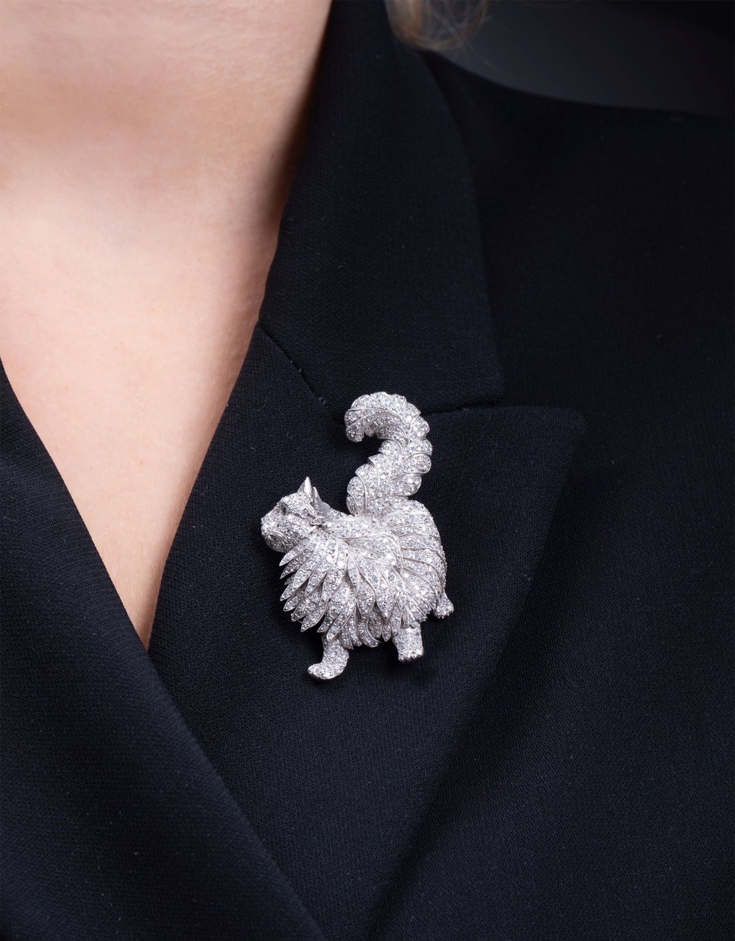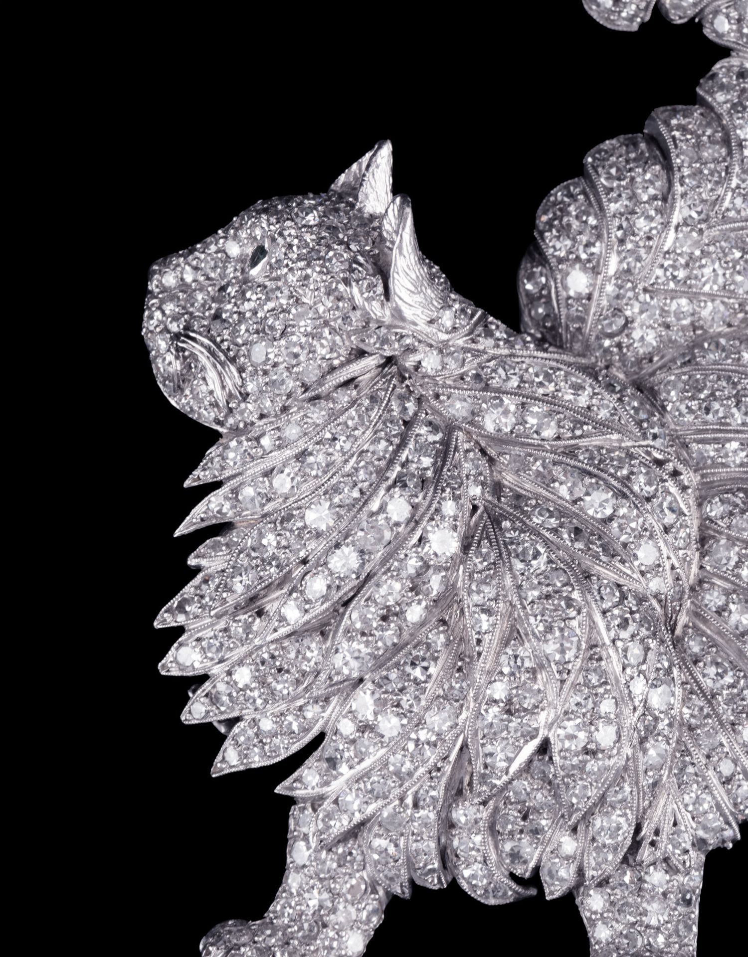 独角鹿西洋古董珠宝首饰欧洲铂金镶嵌钻石祖母绿波斯猫造型胸针